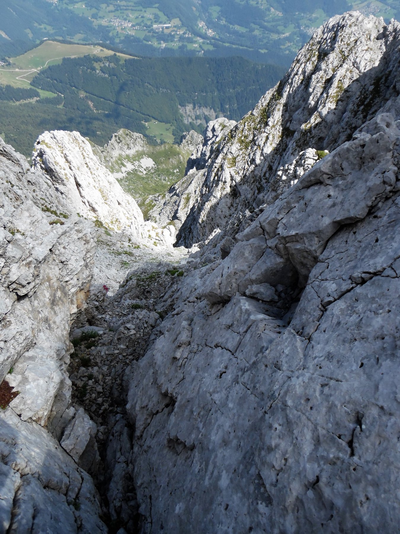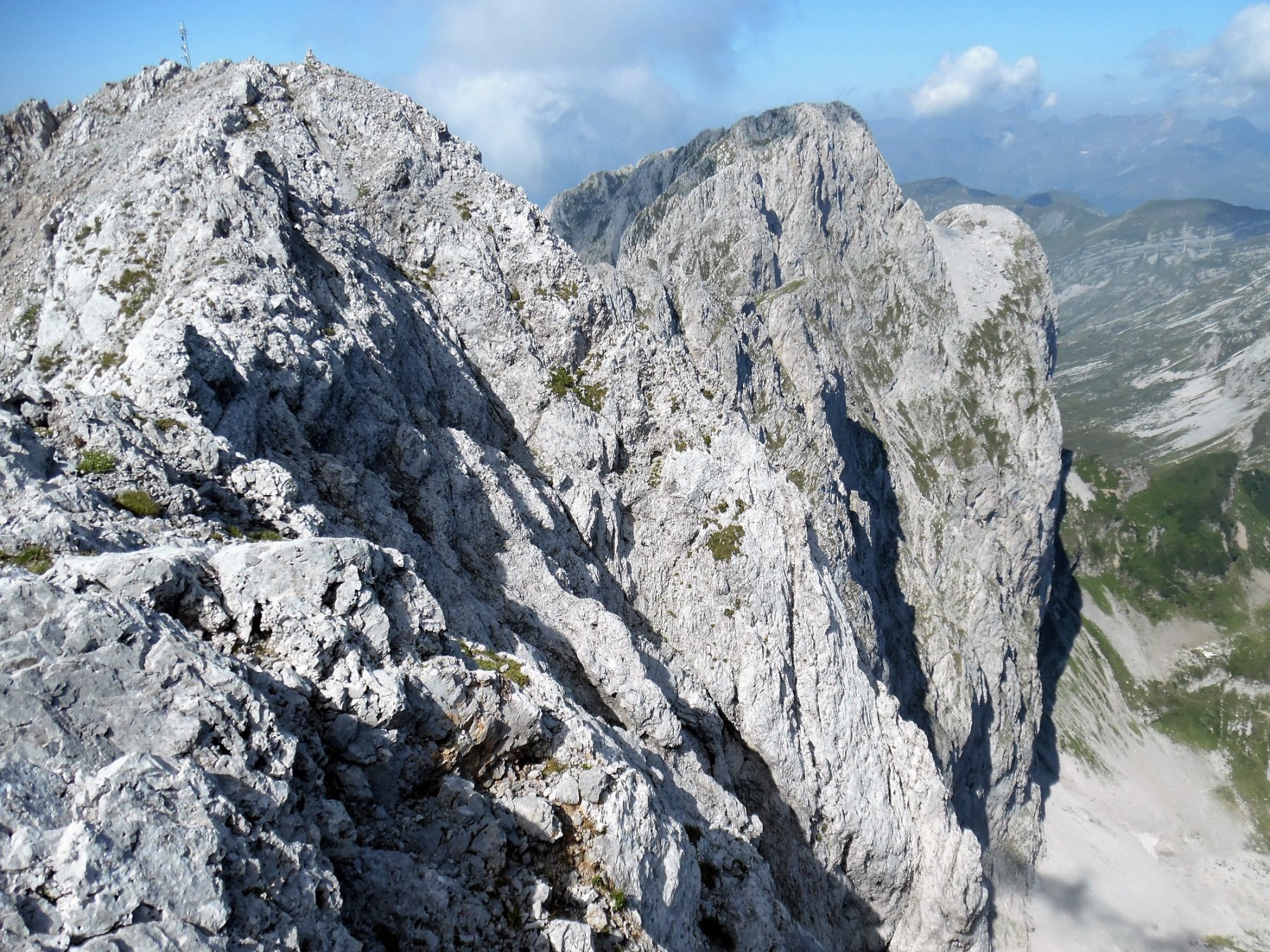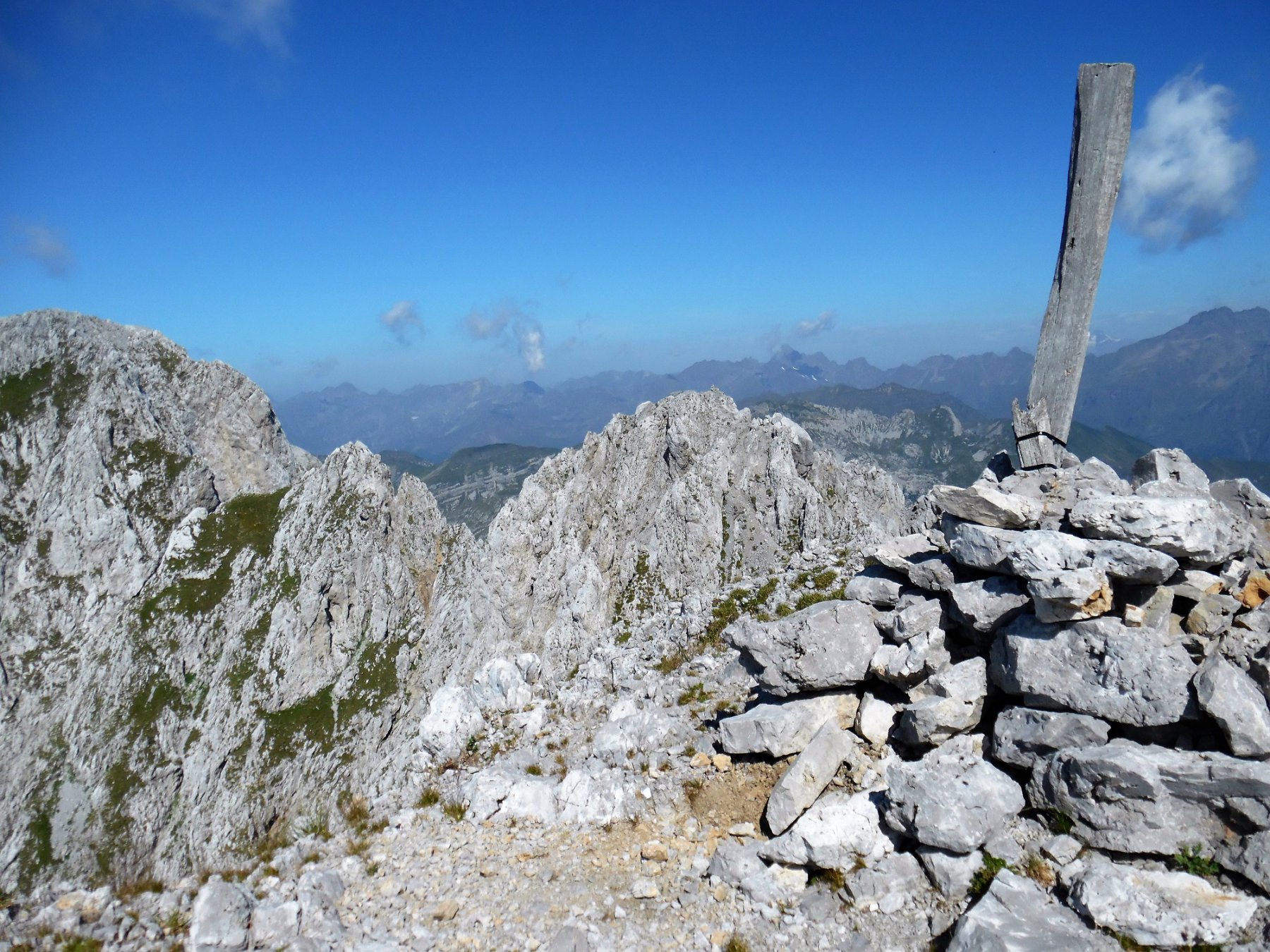 Poco prima di arrivare alla Cappella Savina, deviazione a destra per la Bocchetta di Visolo (tratti attrezzati con catene). Dalla Bocchetta, salire a sinistra per la Presolana Orientale (tratti di facile arrampicata). Dalla cima orientale comincia un po’ di saliscendi quasi tutto per cresta tranne qualche caso in cui si devia sul versante sud o nord. Anche qui, tratti di facile arrampicata. Roccia buona, nonostante il solito ghiaietto orobico. In vetta, una bella croce e (nebbie permettendo) vista meravigliosa.