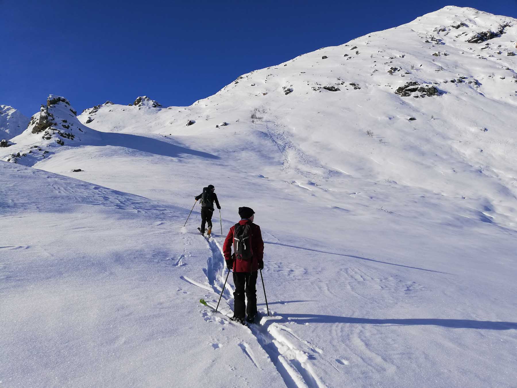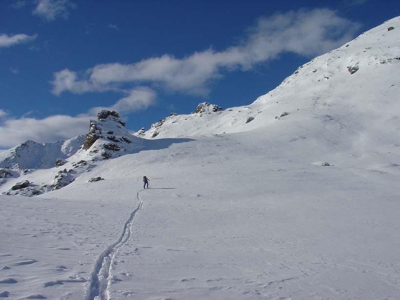 Discesa sostenuta; il canale nord-est è molto bello ma ripido.