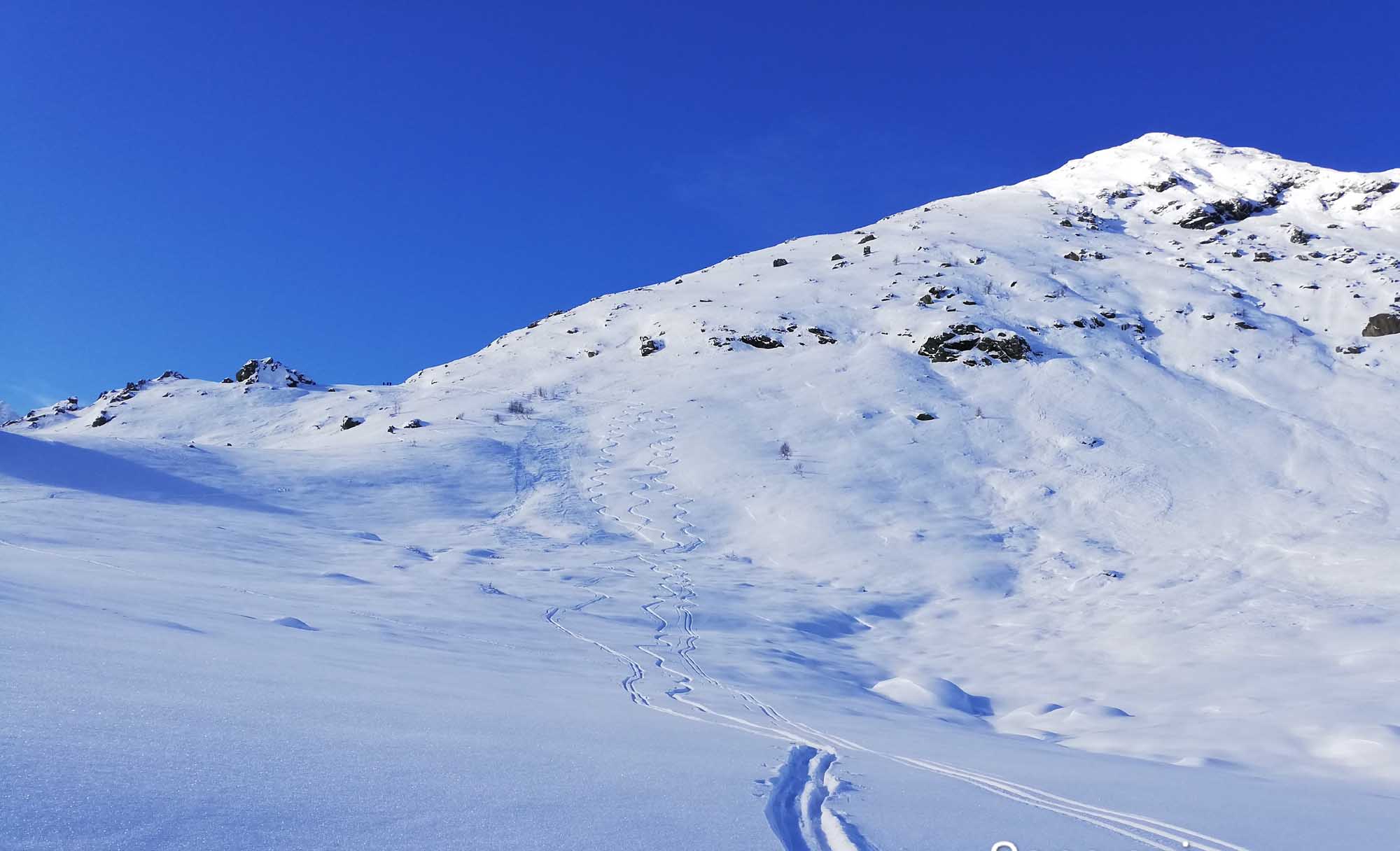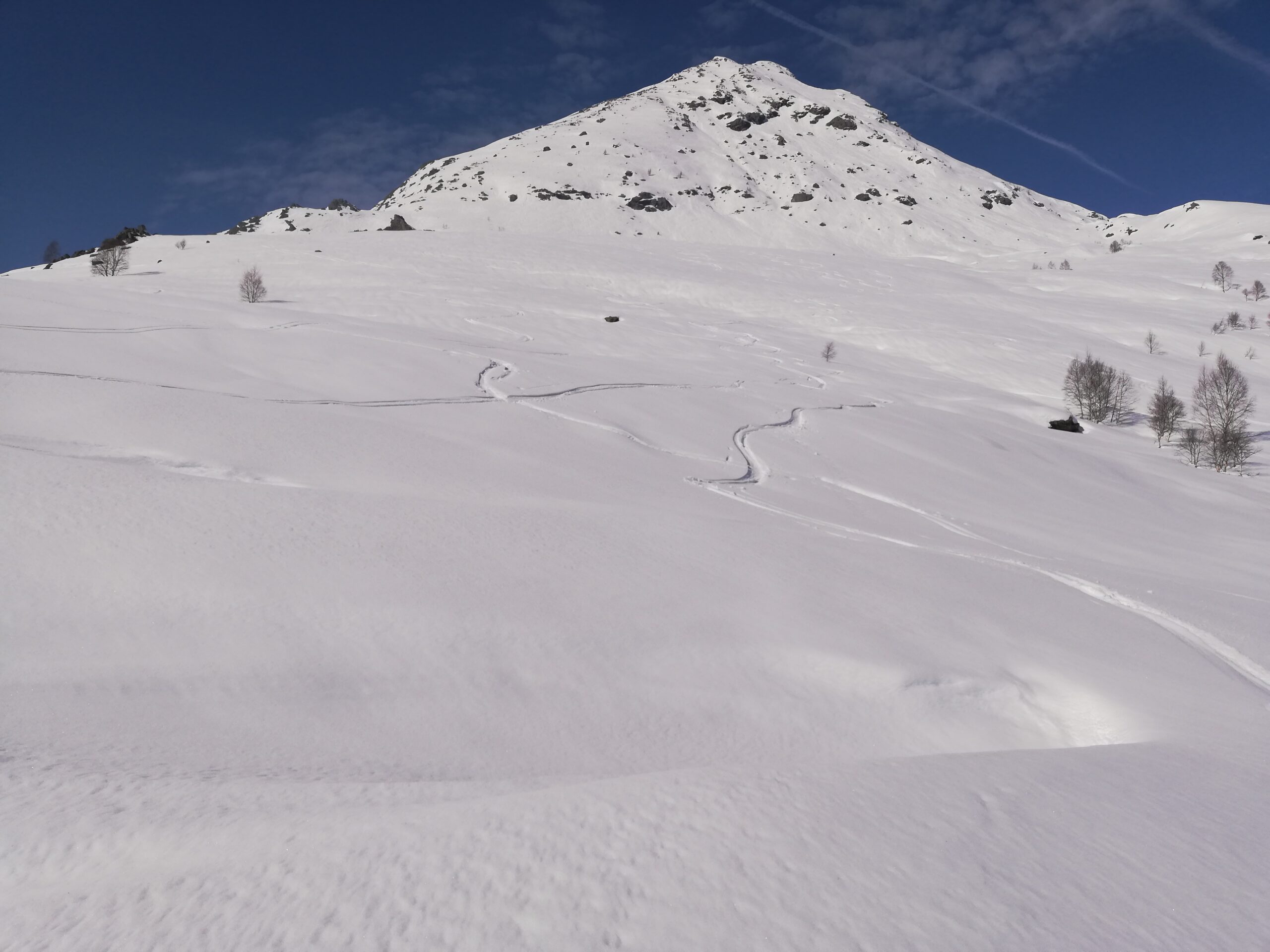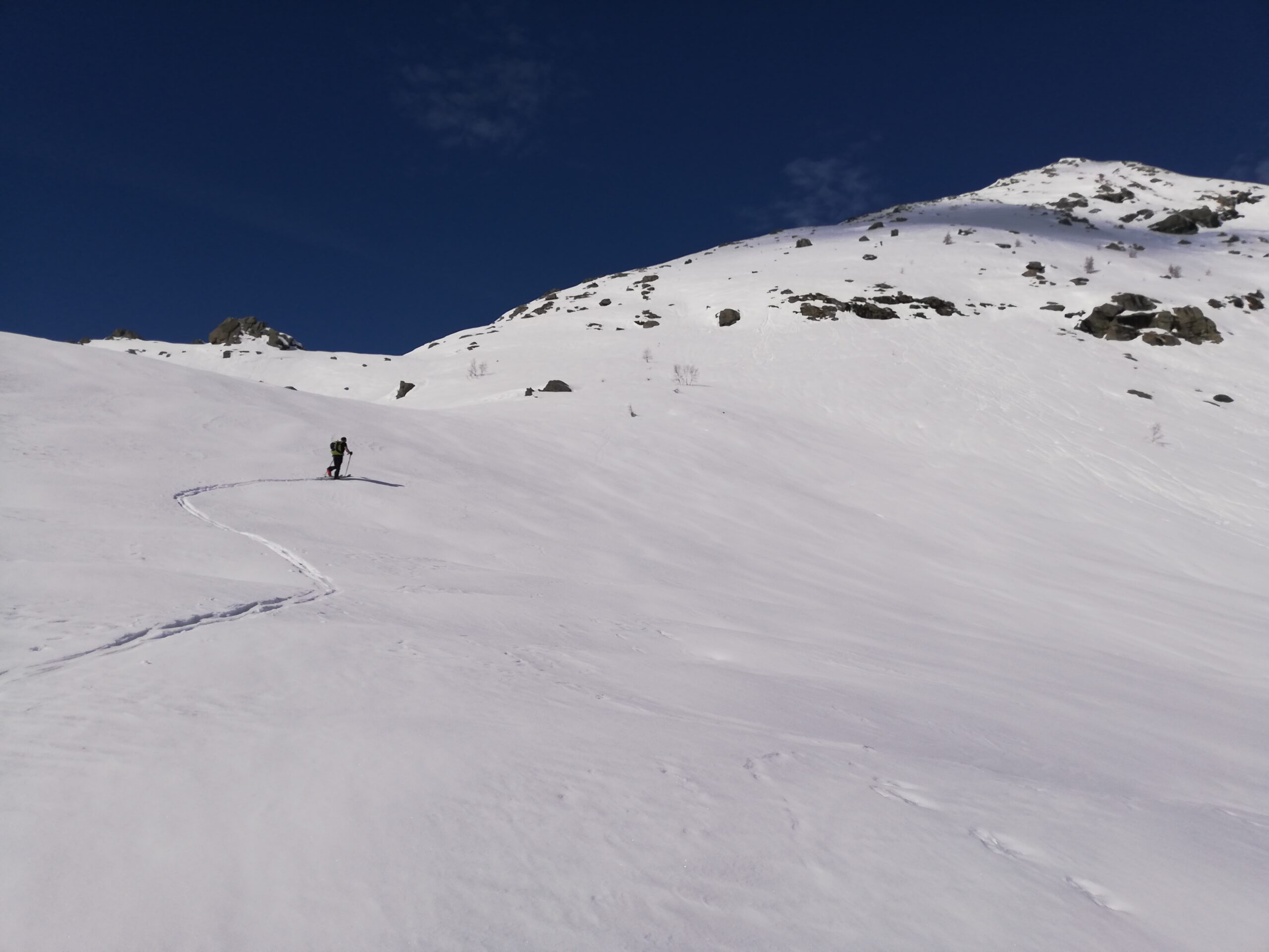 Se in condizioni è pure interessante (ripido) la discesa dal versante sud-est verso il rio del Civrari.