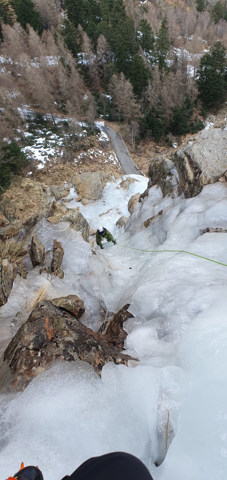 - Alla fine della doppia si scende con facilità dal canale alla base della cascata.