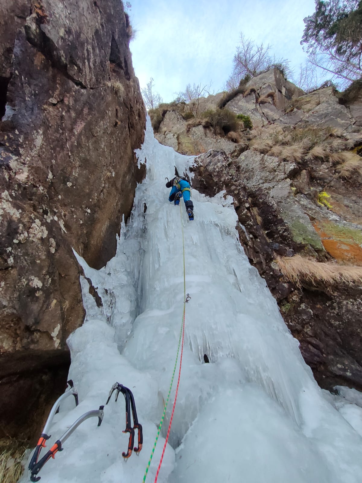 Cascata non consigliabile con più cordate per scariche essendo abbastanza incassata.