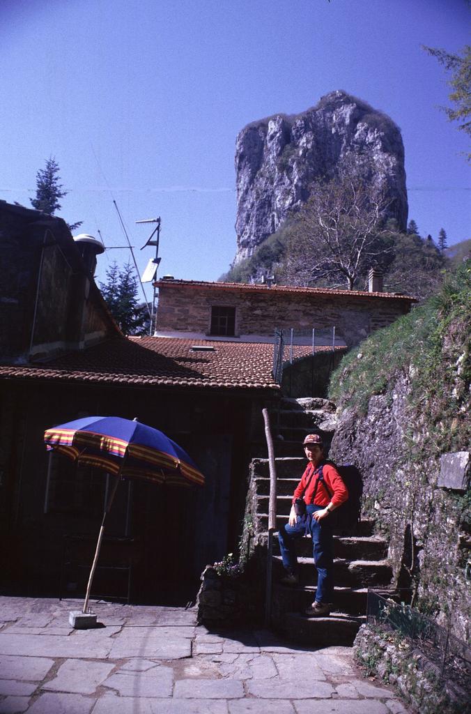 Si sale a mezza costa lungo il fitto bosco di castagni, superando una fonte e raggiungendo un altro bivio. Tralasciato il sentiero di destra che nel giro di pochi minuti scende al Rifugio Forte dei Marmi, si sale a sinistra lungo il sentiero “Aristide Bruni”, superando un tratto esposto, ma facilitato dalla presenza del cavo metallico e arrivando sotto la impressionante e strapiombante parete del Monte Nona.