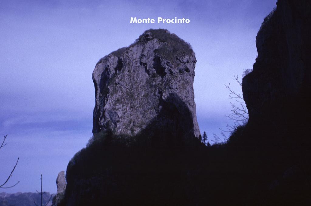 Raggiunto il bosco, si oltrepassa una piccola grotta-ricovero e poi il sentierino prima volgendo a sinistra raggiunge la sommità del Procinto, girando brevemente a destra, in pochi minuti si raggiunge la croce di vetta (dove è inserito anche il quaderno per le firme). (ore 2,00 / 2,30 dal parcheggio alla cima). In discesa si segue lo stesso itinerario percorso in salita.