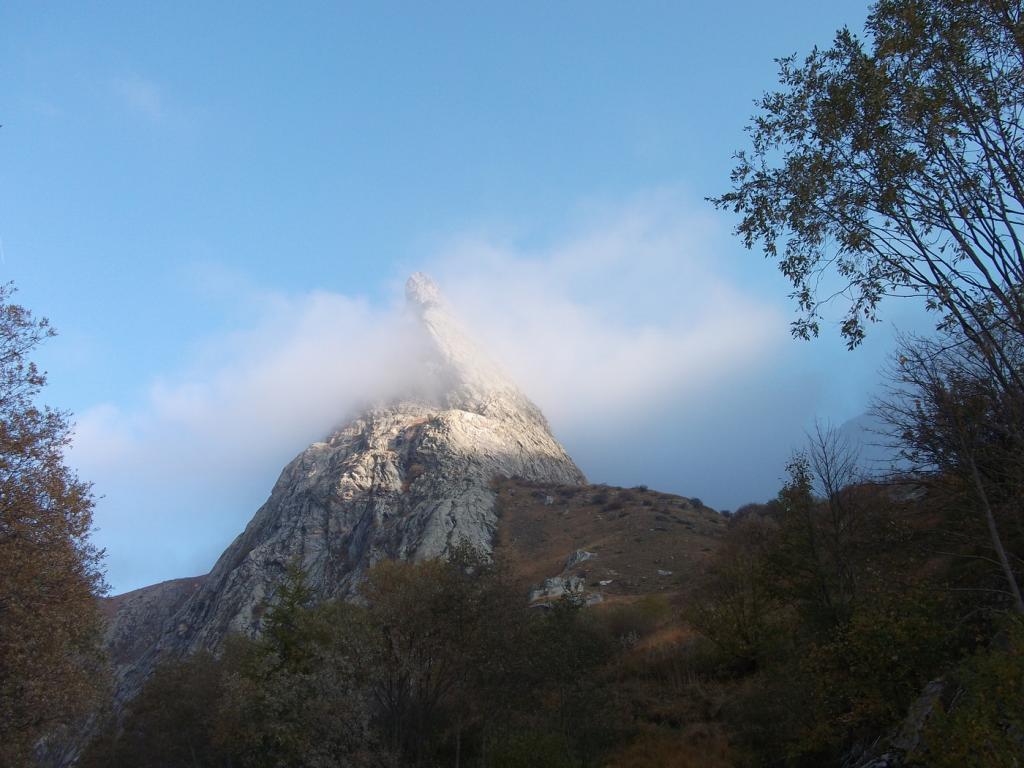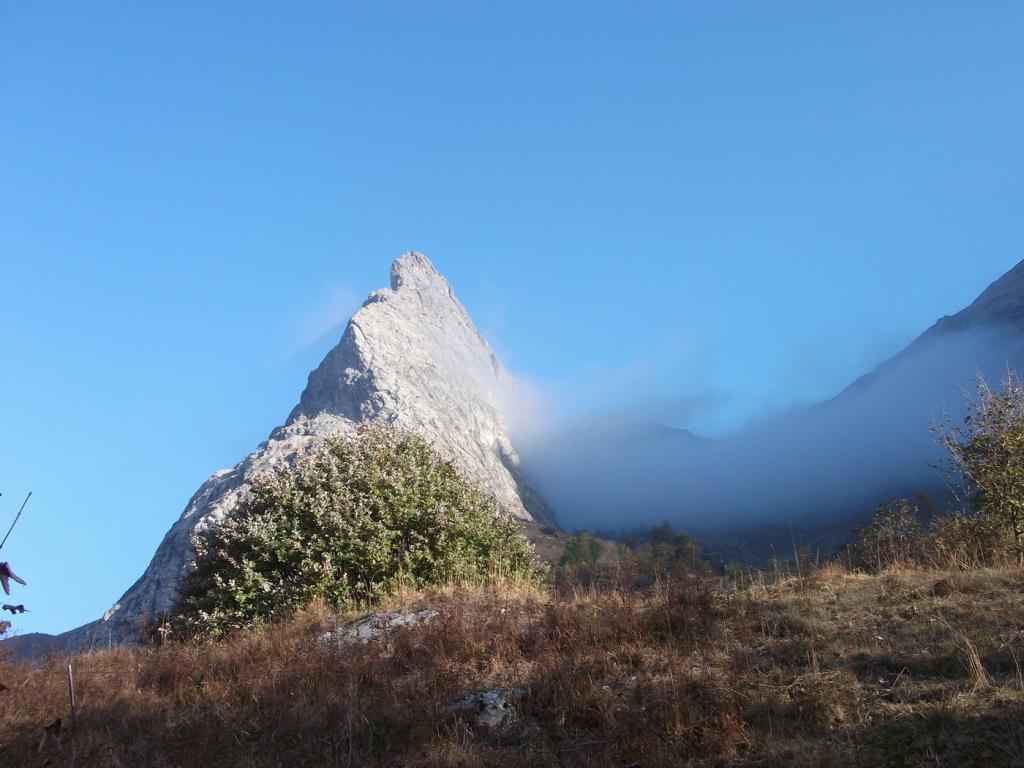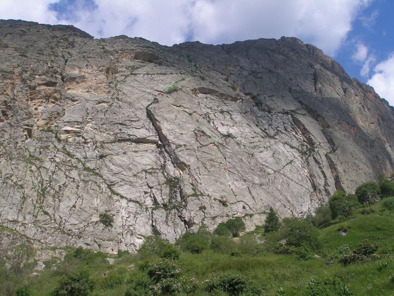 L1 Prima facile placca poi salire in un breve ma evidente diedro-canale fino a un terrazzino, superare l’alberello e raggiungere la sosta poco sopra. 25 m III+, nessun chiodo, sosta su 2 fix.