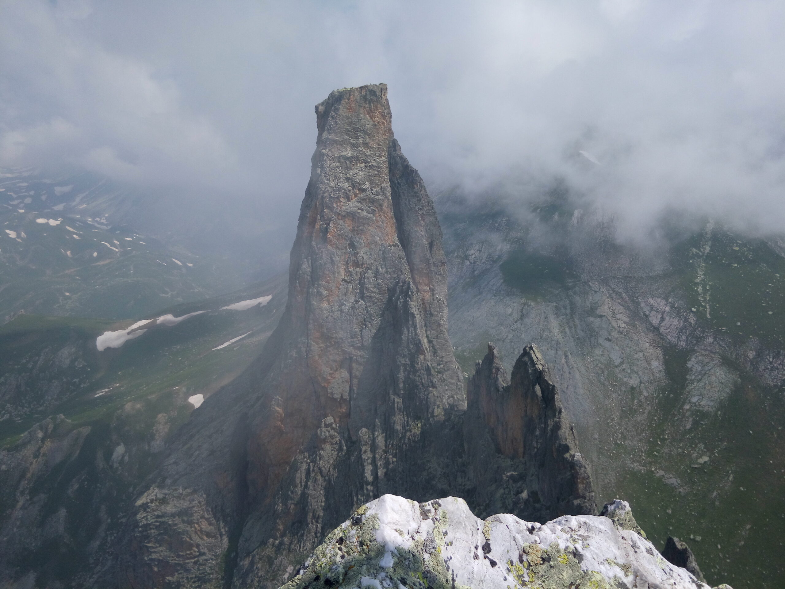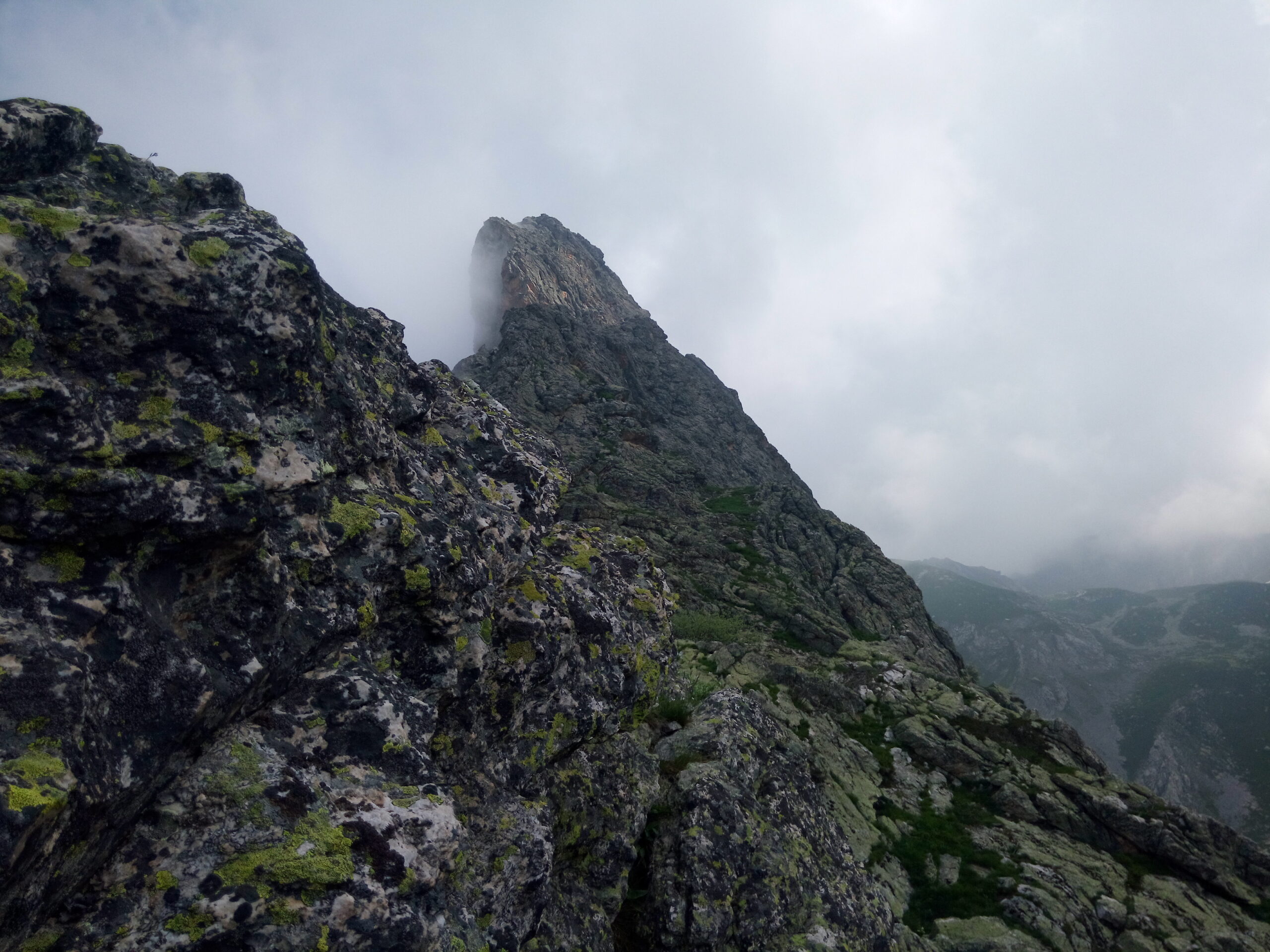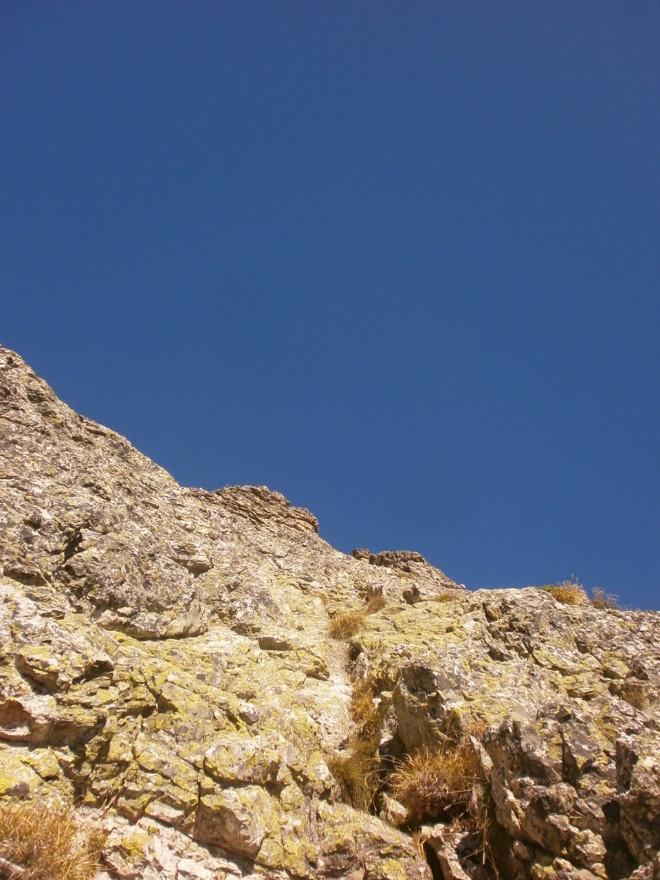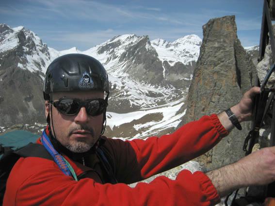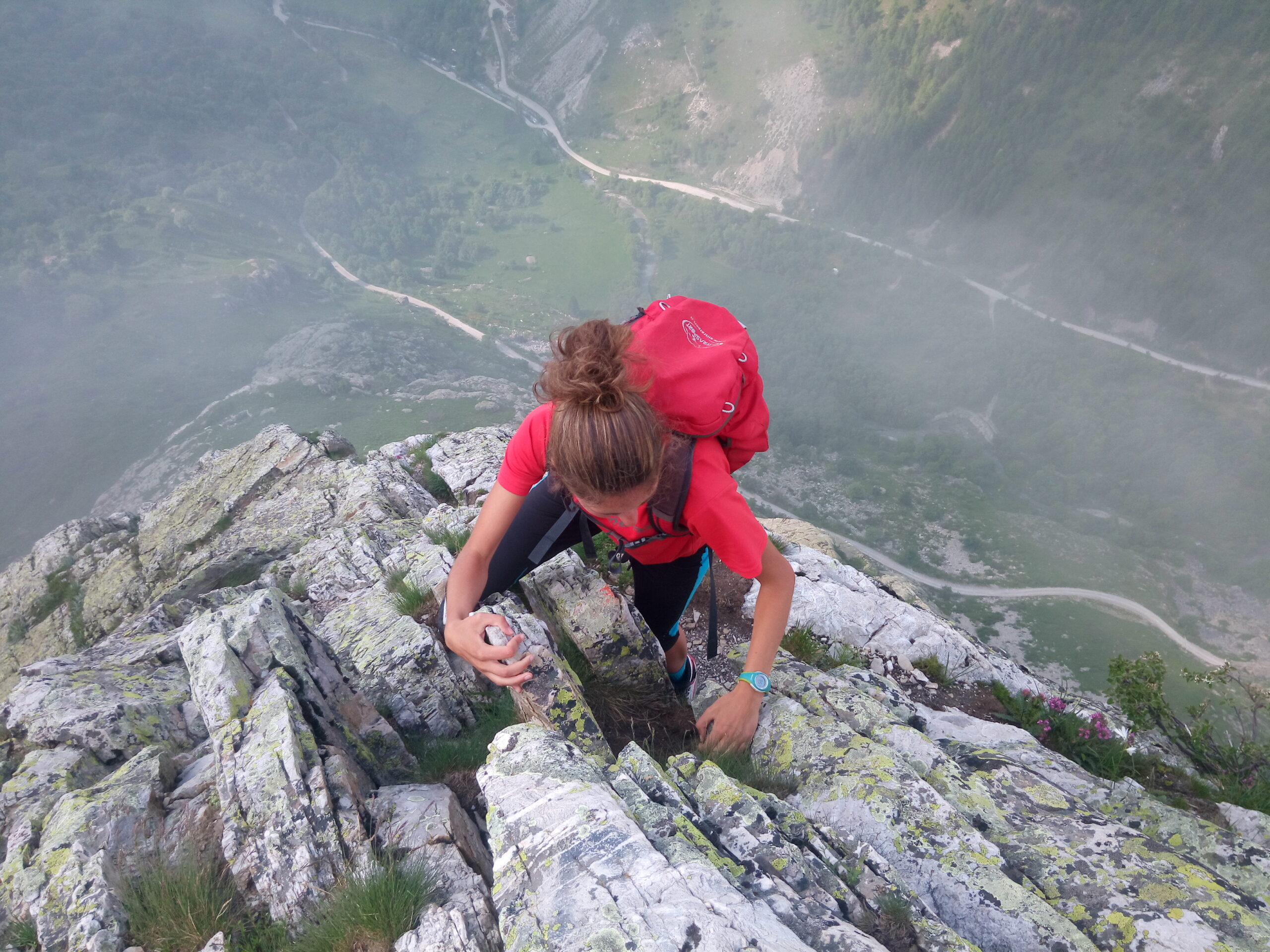 Salendo per più facili rocce si esce sull’affilata crestina finale. Pochi passi per l’esposto filo conducono infine alla grande croce della cima.