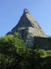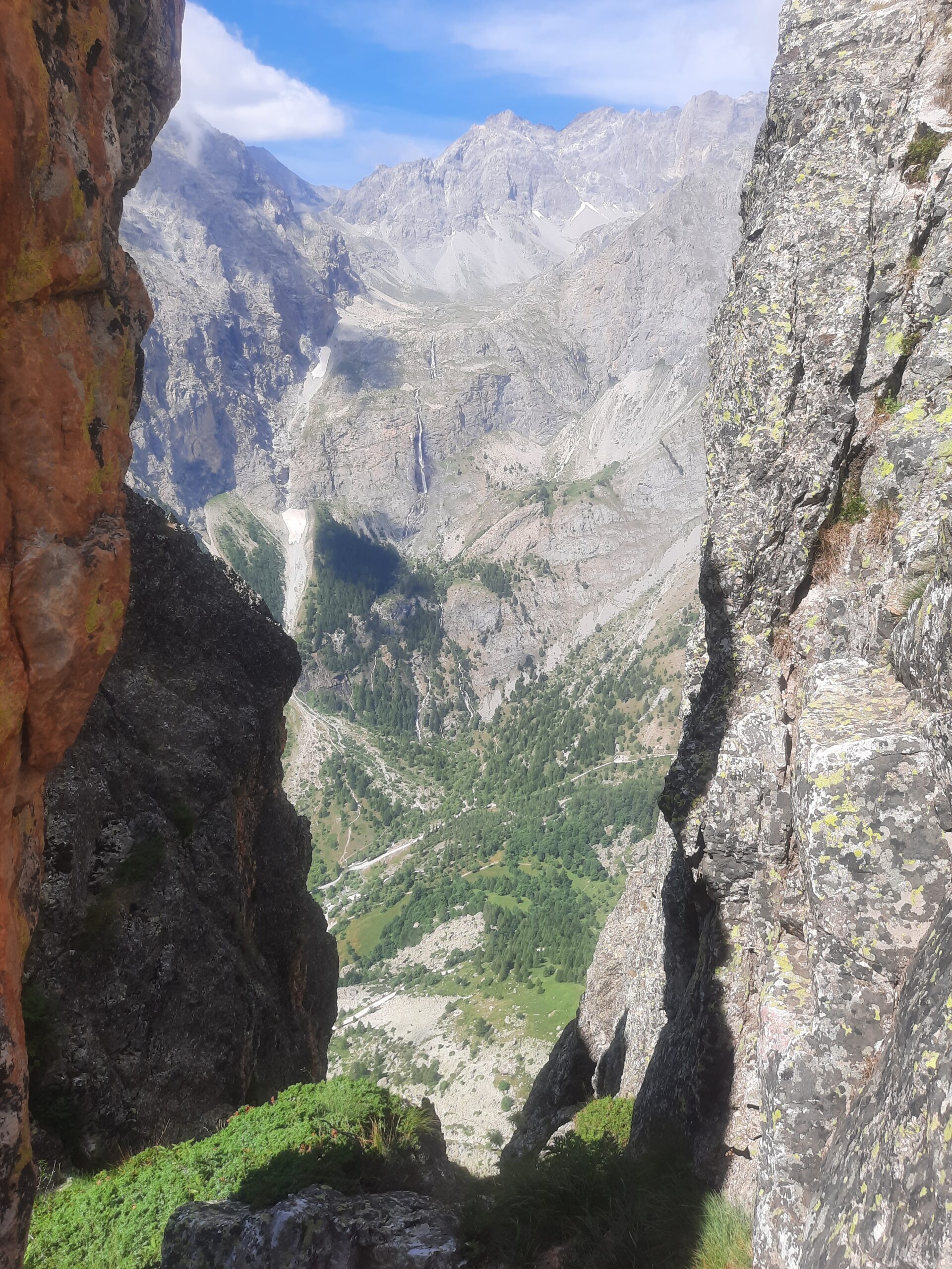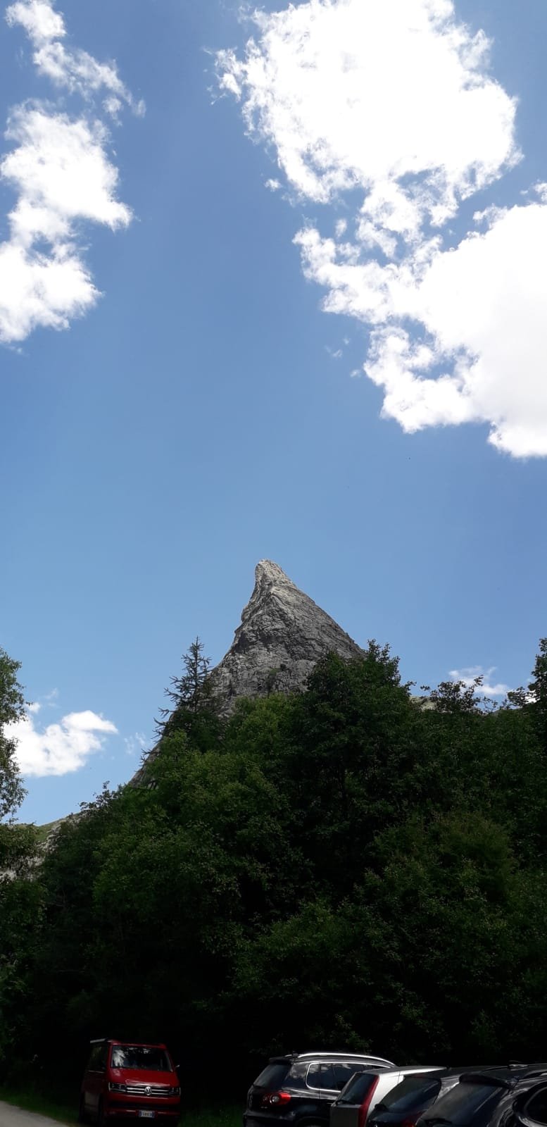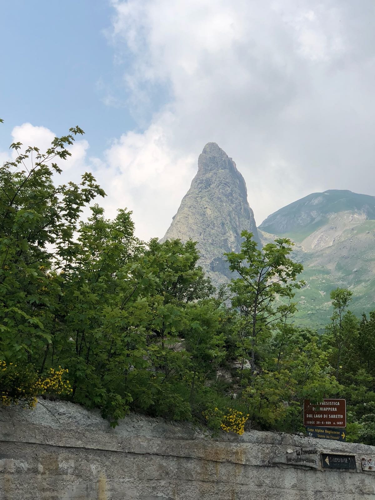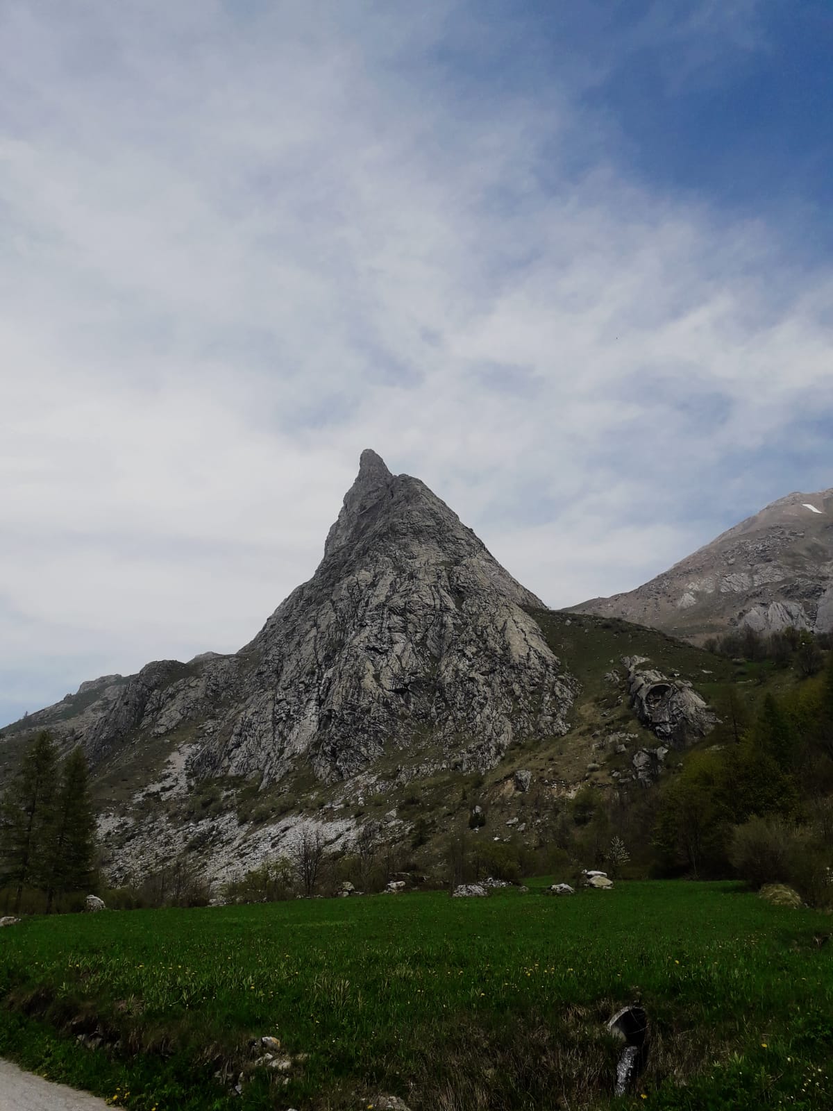 Lasciato a sinistra Campo Base, si risale su rotabile il vallone del Maurin per due tornanti fino ad un piccolo spiazzo (cartelli per il colle Rui e Greguri).