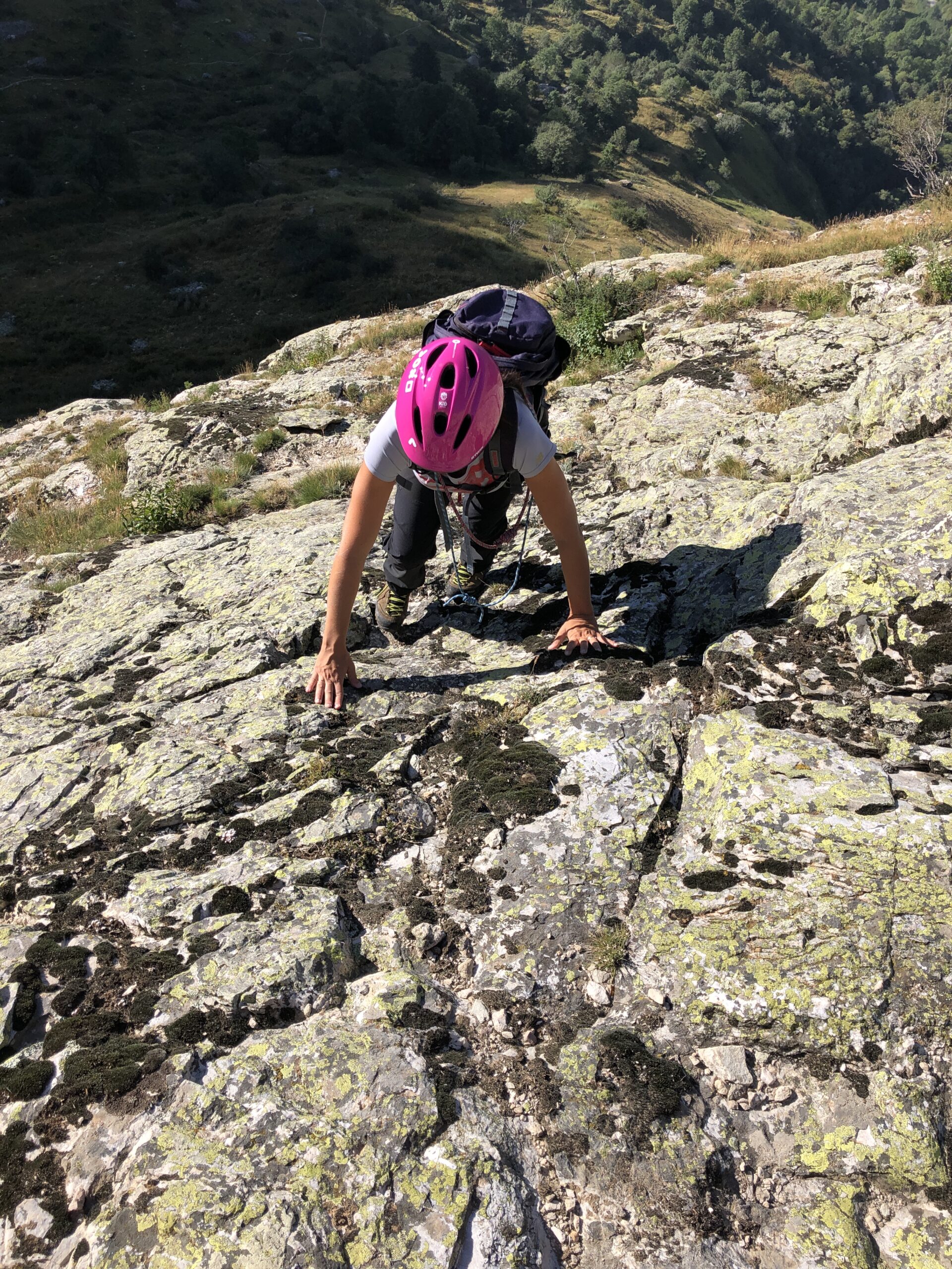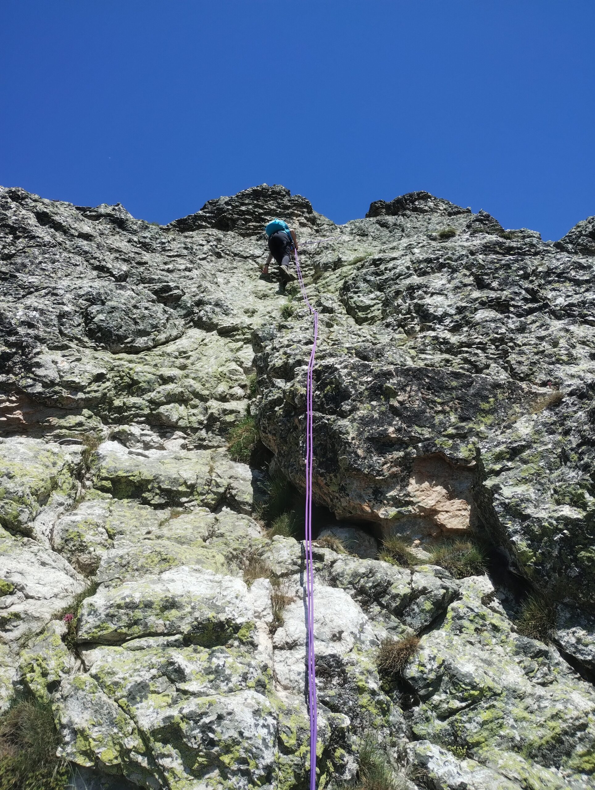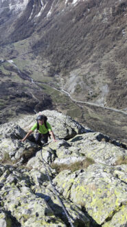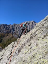 La via non è di per se difficile, ma va tenuta presente l'esposizione della via in alcuni tratti, nonchè il tipo di roccia che diventa molto infida se bagnata. Quindi meglio avere dietro corda, imbrago e qualche moschettone.