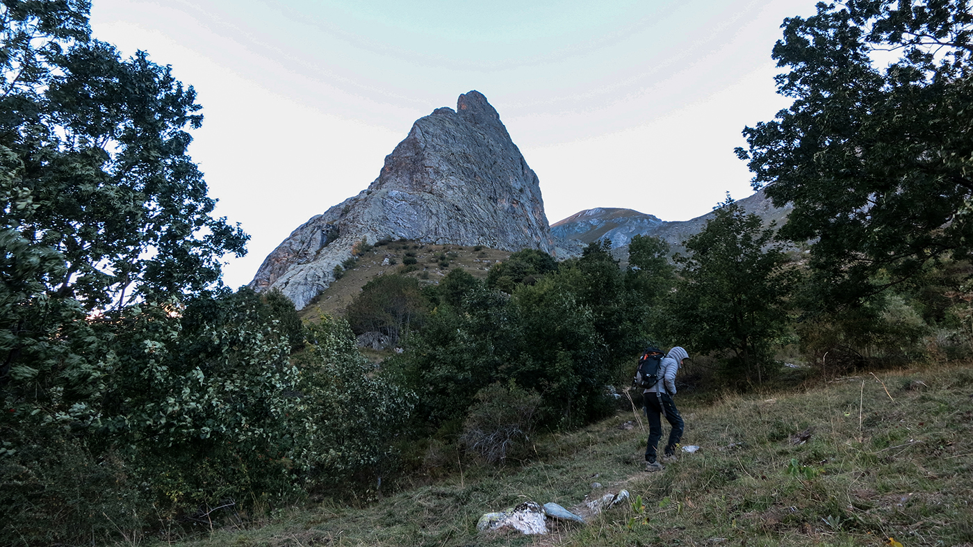 Si imbocca la mulattiera che in breve porta agli ampi pendii prativi del vallone Greguri, si gira al primo bivio a sinistra in direzione del piede della cresta Sud.