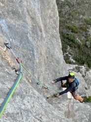- L6 salire con vari traversi verso dx, riportandosi a sx sul finale. 14 rinvii, 6b, 40m.