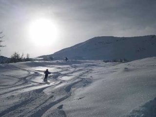 Alla partenza poca neve, appena sufficiente, zona mediana sufficiente, l’ultima parte nuovamente molte pietre sotto alla neve.