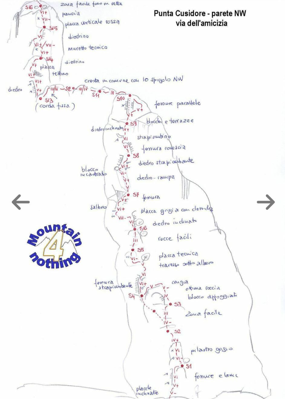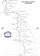 Una via impegnativa per l'equipaggiamento della via in cui le soste sono in gran parte da fare o quanto meno da rinforzare e la chiodatura non certo plaisir.