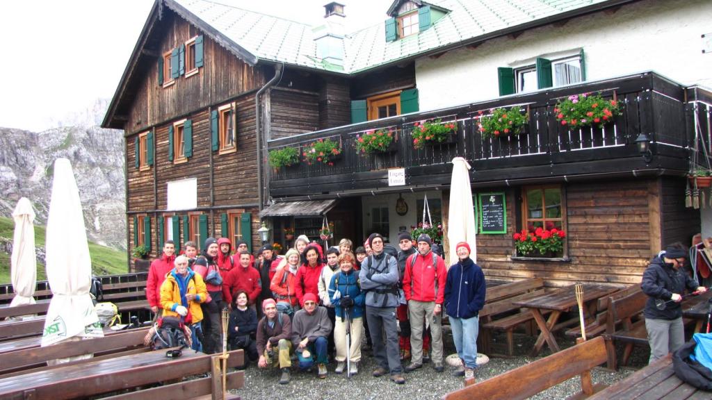 Una tre giorni sulle Odle, e il nostro primo obiettivo era la salita del Sass da Putia dal Rifugio Genova. Partiti da Genova venerdì 22 al mattino, e raggiunto il parcheggio di Malga Zannes nel primo pomeriggio, ci siamo avviati e saliti comodamente al Rifugio Genova in meno di 2 ore di cammino…muovendoci in un contesto ambientale incantevole e con un meteo discreto (anche se con parecchie nuvole nei dintorni). Fortunatamente il Rifugio Genova non è pieno, e la sistemazione è buona, il rifugio davvero ottimo e molto confortevole. Al rifugio incontriamo anche l’altro gruppo del CAI Ligure, che avevano in programma una traversata di 3 giorni nelle Odle. Al mattino di sabato 23 ci svegliamo con un cielo nuvoloso che non sembra promettere niente di buono (durante la notte è piovuto parecchio..), comunque ci sono le premesse per tentare e decidiamo di partire. il sentiero è tutto inzuppato d’acqua, e nel traverso pianeggiante che porta alla Forcella da Putia abbiamo calpestato parecchio fango. Man mano che saliamo verso il Putia il cielo diventa sempre più nuvoloso purtroppo e il panorama si riduce sempre di più. Dalla Forcella da Putia risaliamo il ripido vallone erboso e detritico fino alla forcella che divide i due Sass da Putia, dove ci imbraghiamo e ci prepariamo a salire la ferrata. La ferrata è abbastanza facile e, tranne pochi passaggi, la roccia è asciutta e non presenta particolari problemi. Una ferrata breve, ma dal percorso piacevole e divertente. Al termine della ferrata, l’ultimo tratto per arrivare in cima è innevato, abbiamo trovato una decina di cm. di neve fresca caduta la notte precedente, ma non ha ostacolato l’arrivo in vetta di tutto il gruppo. Purtroppo in vetta è calata la nebbia e addio panorama..! Ma anche se fatta con una giornata di tempo incerto la gita ha ugualmente soddisfatto tutti i partecipanti…sembrava di essere in pieno autunno e non certo a fine luglio per le condizioni ambientali trovate ! Il tempo per le foto di rito in cima e poi ci siamo avviati in discesa, superando la ferrata senza problemi e rientrando in tempo al Rifugio Genova per la “pausa pranzo”. La discesa verso la Malga Zannes è avvenuta sotto la pioggia…ma lo sapevamo che il meteo preannunciava un deciso peggioramento pomeridiano ! Peccato essere incappati in una giornata nuvolosa e grigia…ma ogni tanto ci può stare, e poi tutti siamo arrivati in cima, oggi bisogna sapersi accontentare !