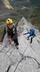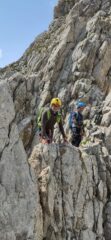 salita in cresta sempre un pò esposta, tanti chiodi vecchi e alcuni più recenti, la parte dove fare più attenzione è sempre la discesa nel totale sfasciume, comunque ben segnalata da tanti ometti.