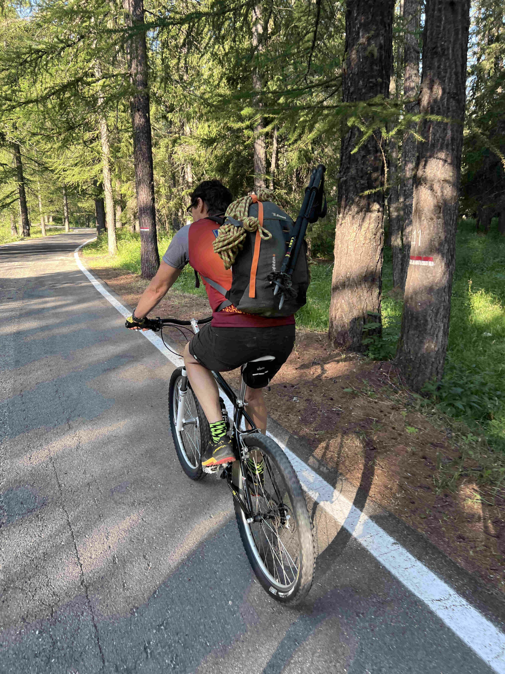 Che gran giornata! Oggi abbiamo abbinato una gita di triathlon: bicicletta, trekking e arrampicata.
