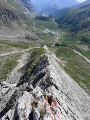 Dal colletto si scende seguendo i vari ometti e facendo attenzione a non smuovere pietre. Poi segue un tratto su pietraia per raggiungere il sentiero che riporta al rifugio ed alle nostre bici.
