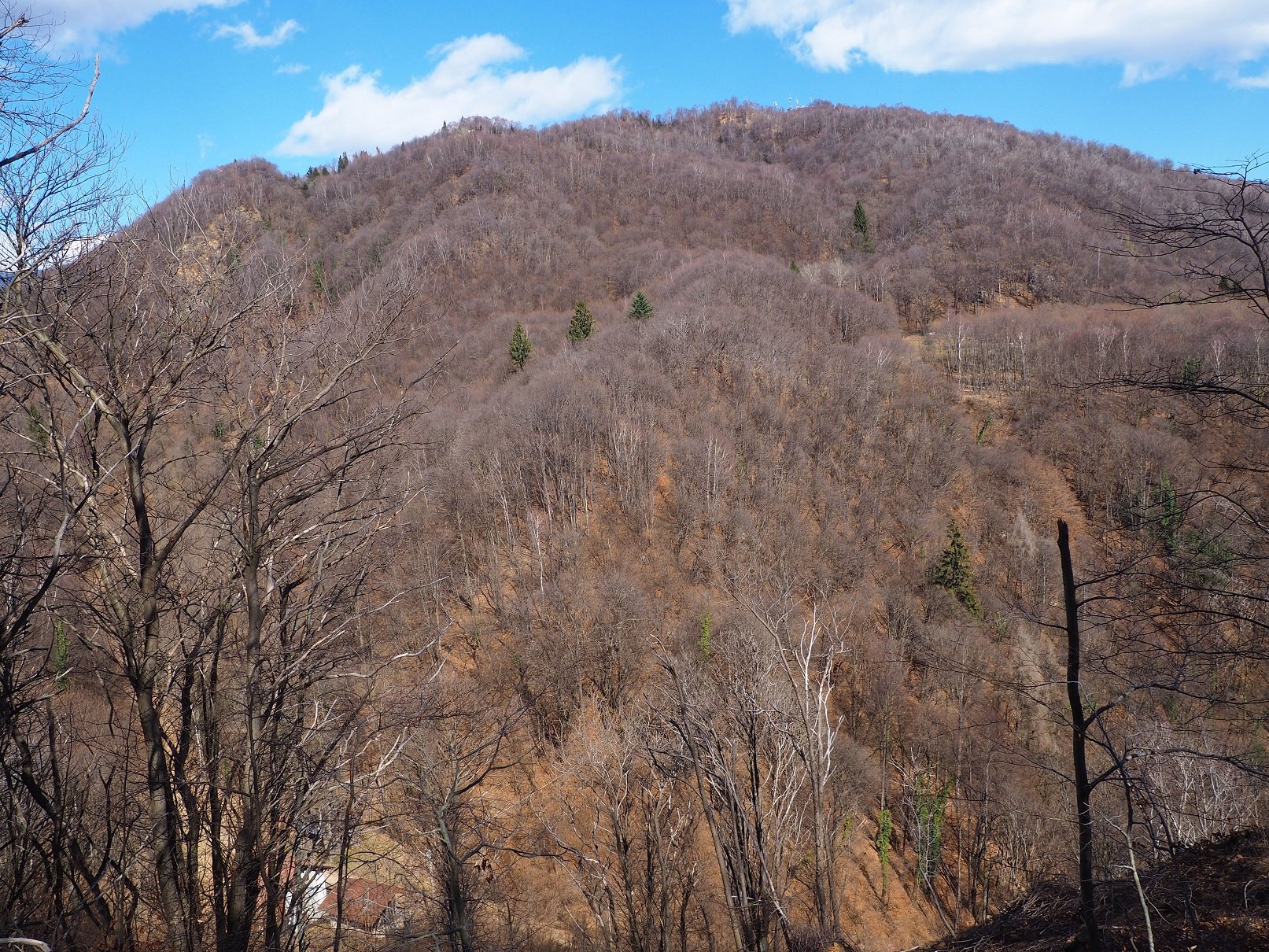 Si lascia a sx il 636 che utilizzeremo per il ritorno e si inizia a salire nel bosco incontrando l’Alpe Castagnei. Incrociata una sterrata si va a sx per poi salire a dx e proseguire lungamente a sx su pendenza moderata fino a quando i segnavia del 637 non ci invitano a risalire un costone nei pressi di un traliccio (a sx ci sono i segnavia del 633 che percorreremo in discesa).