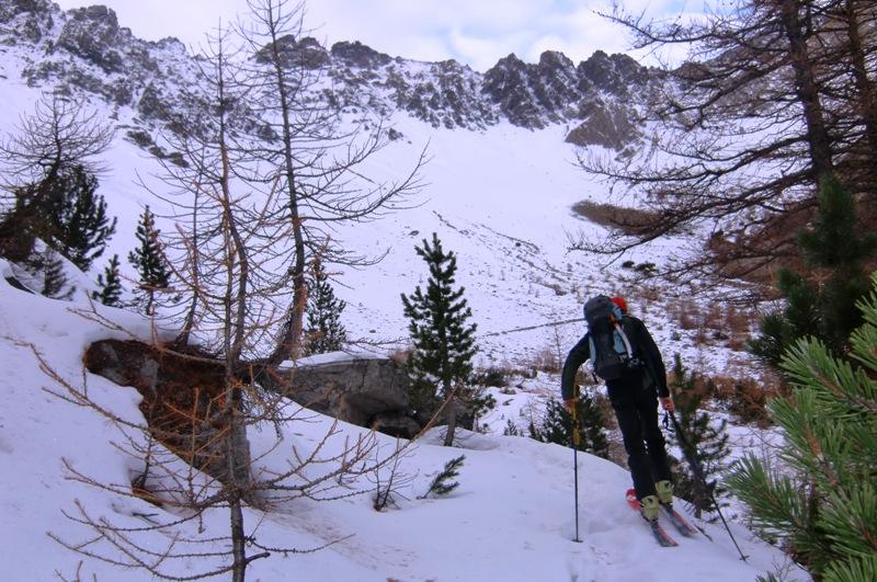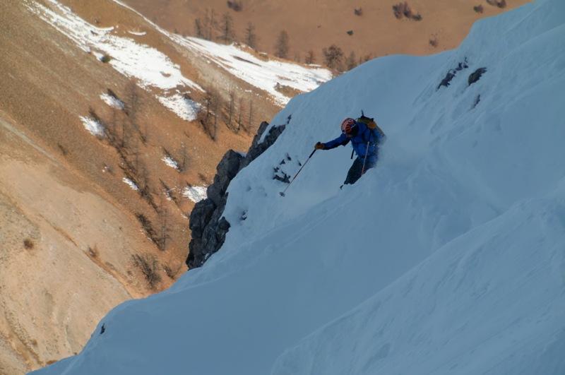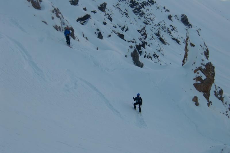Nella conca firn, nel canale neve ancora farinosa con crosta di superfice che passava da morbida a biscottata.