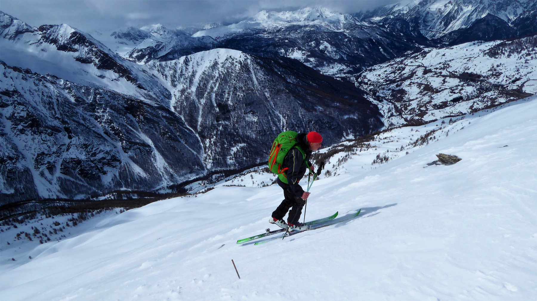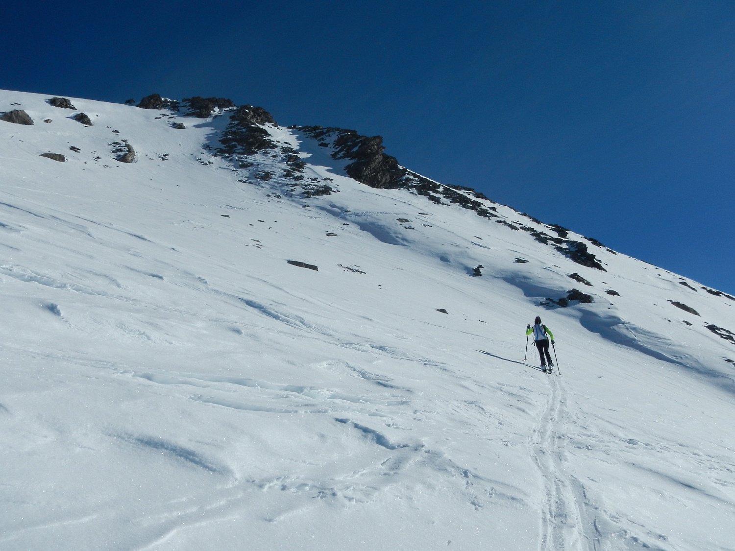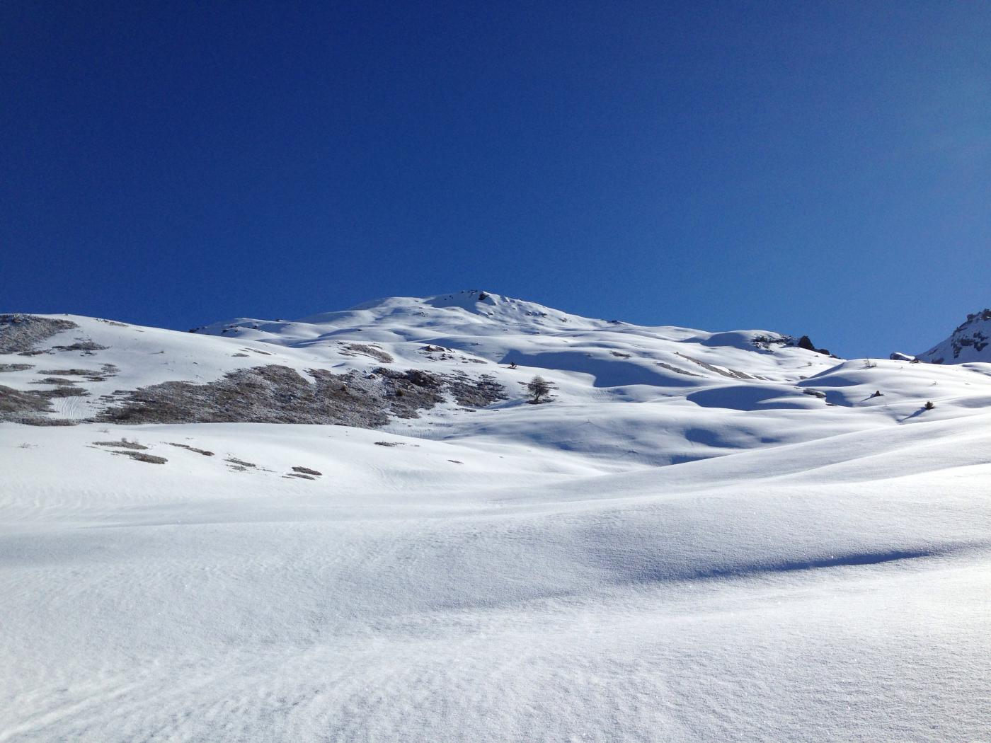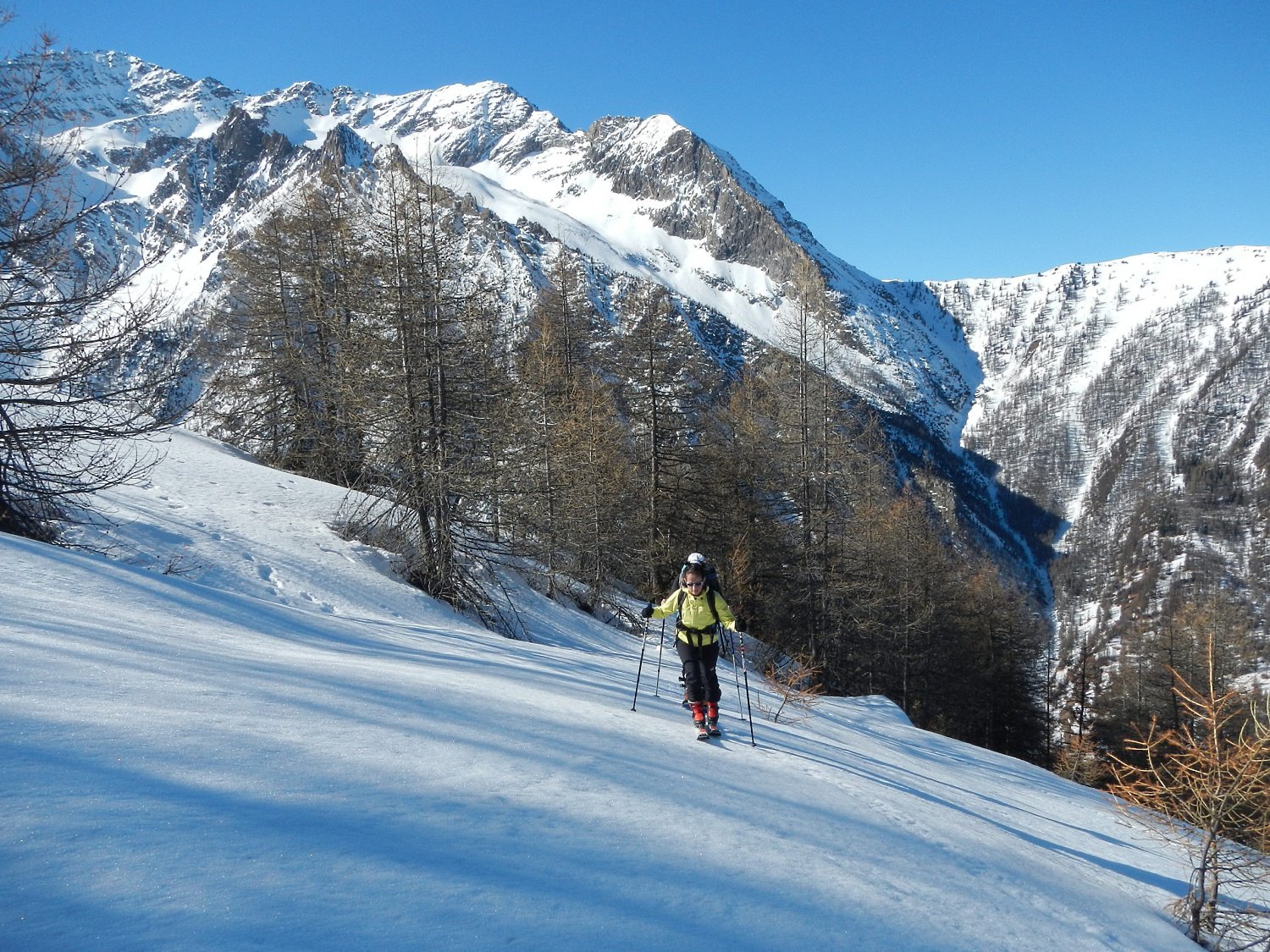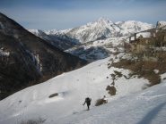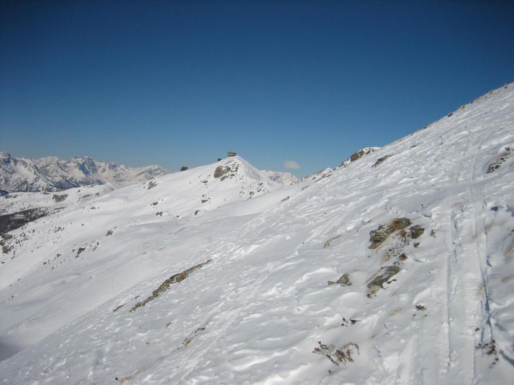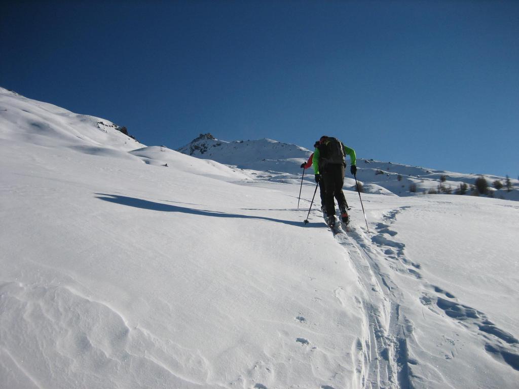 Dal Pont Terrible, imbocco della Valle Argentera (o dal tornante della strada vecchia di Sestriere poco sopra) salire i pendii a fianco degli abitatidi Bessé Bas e Bessé Haut, scegliendo in base alle condizioni se stare sui pendii aperti (sx salendo) o a dx del canale nel bosco. Di qui si giunge all’evidente vetta.