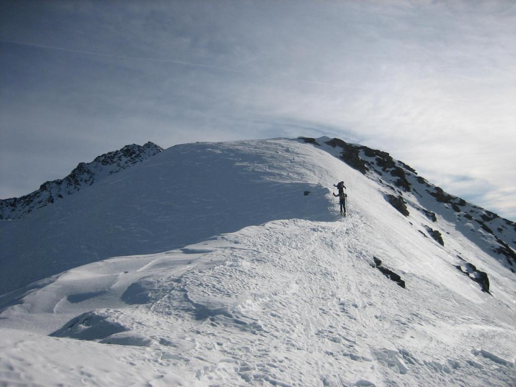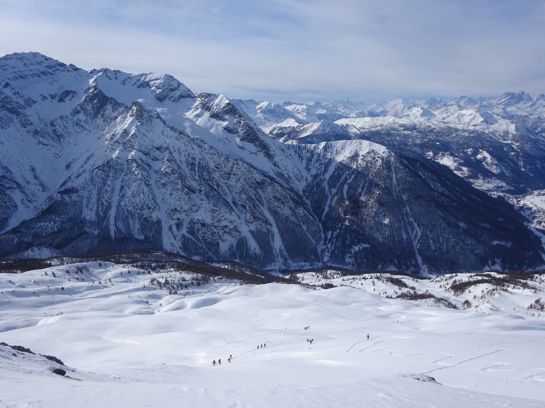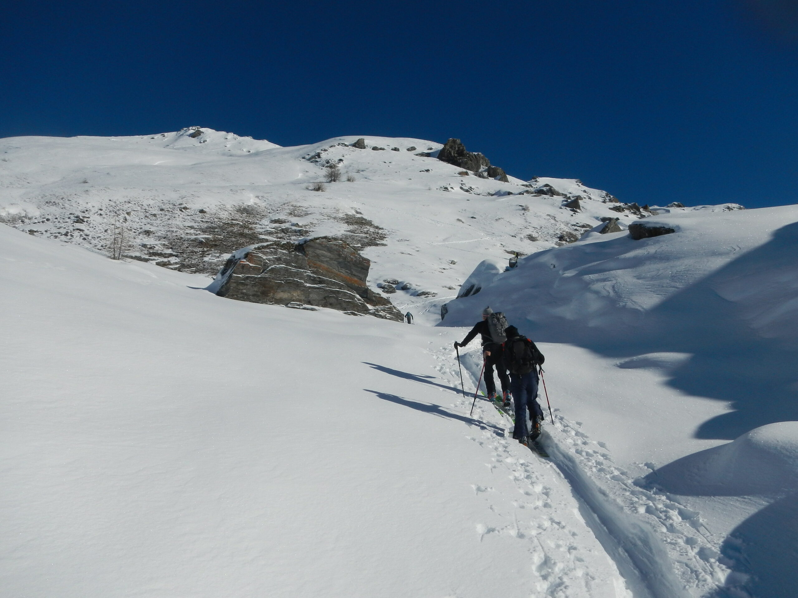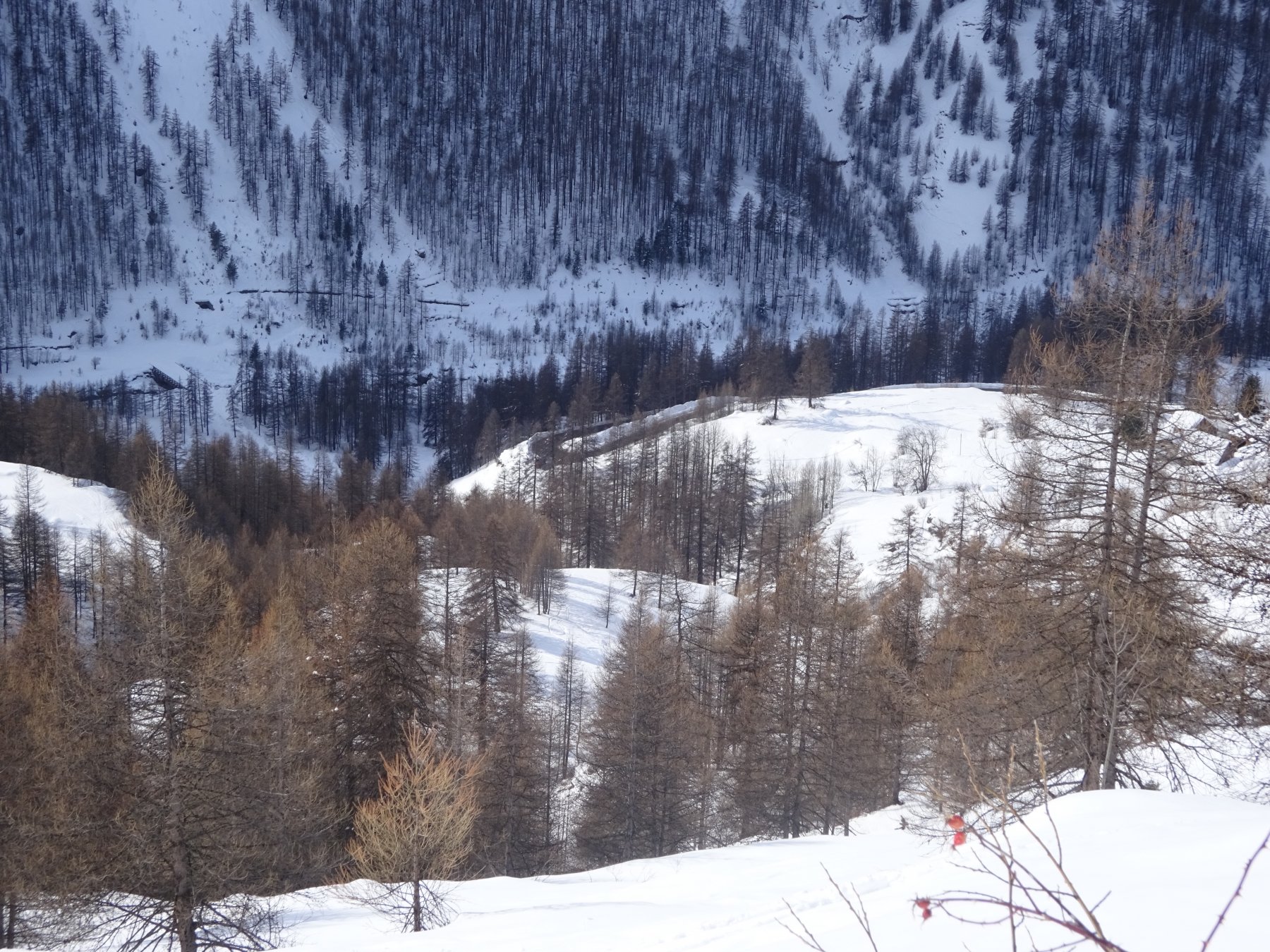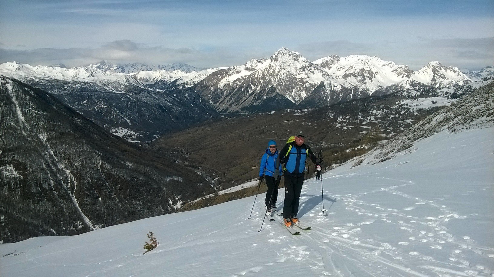 Dal Pont Terrible, imbocco della Valle Argentera (o dal tornante della strada vecchia di Sestriere poco sopra) salire i pendii a fianco degli abitatidi Bessé Bas e Bessé Haut, scegliendo in base alle condizioni se stare sui pendii aperti (sx salendo) o a dx del canale nel bosco. Di qui si giunge all’evidente vetta.