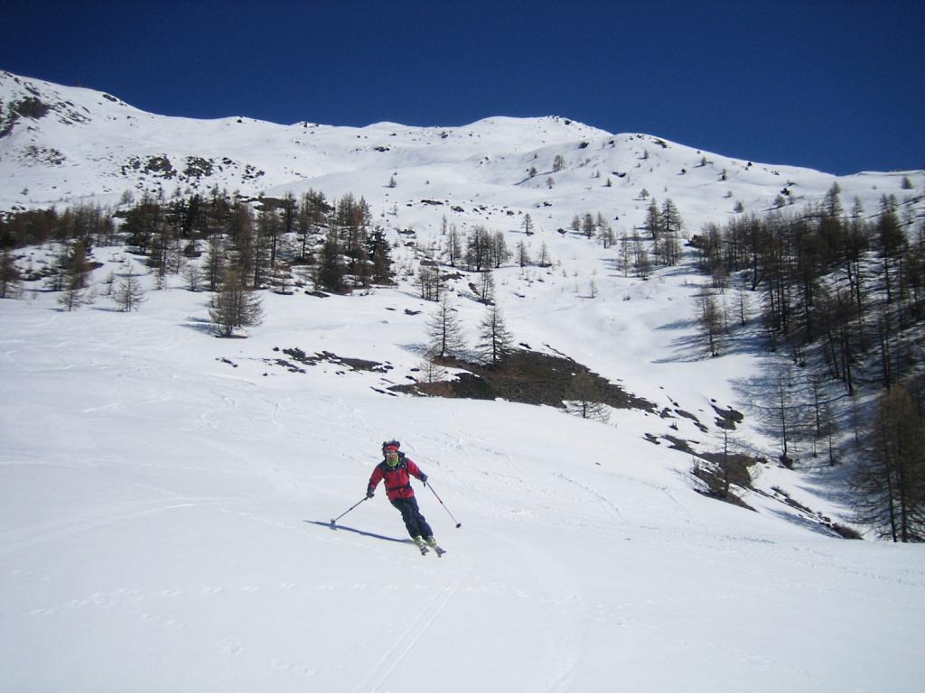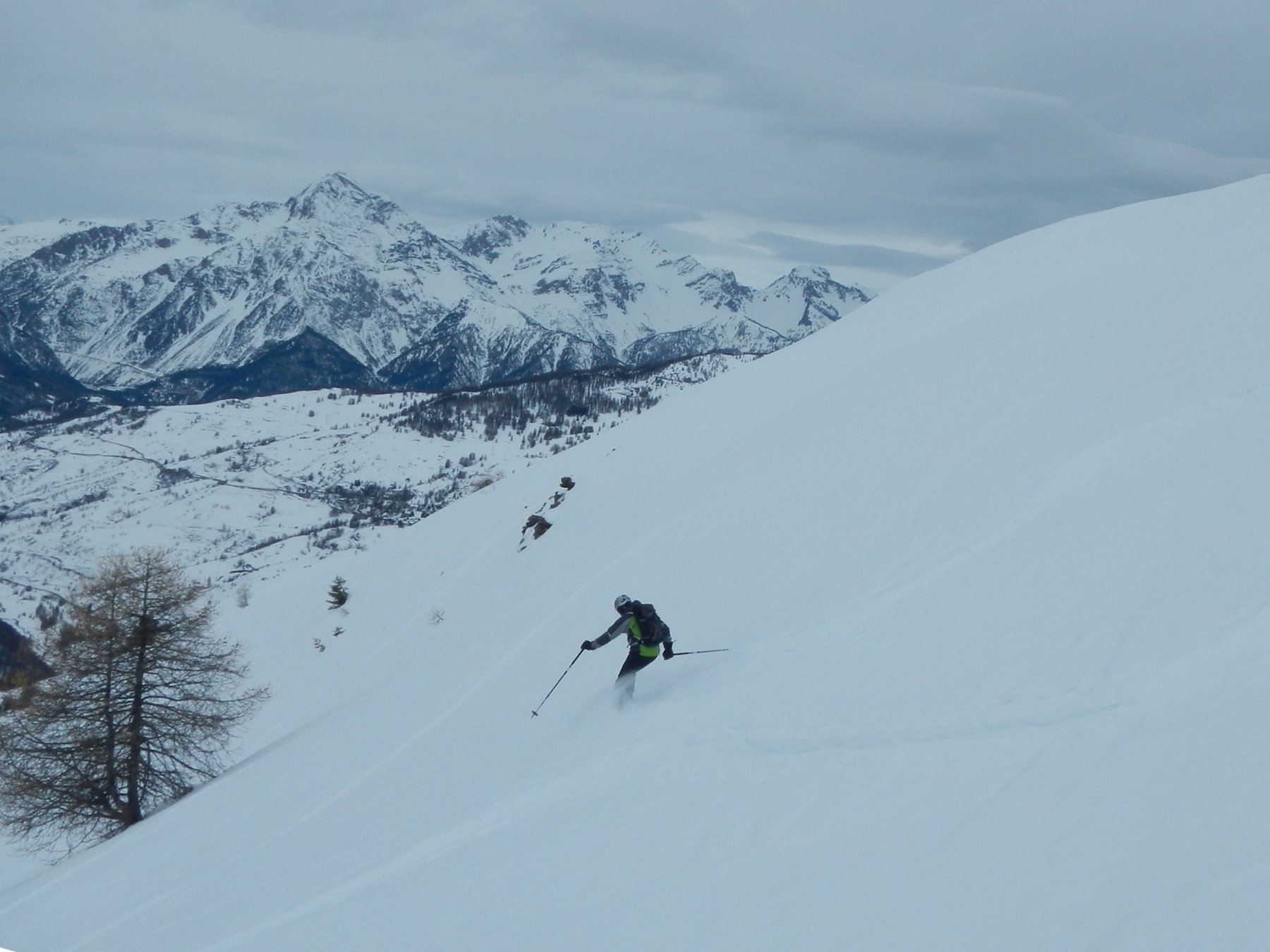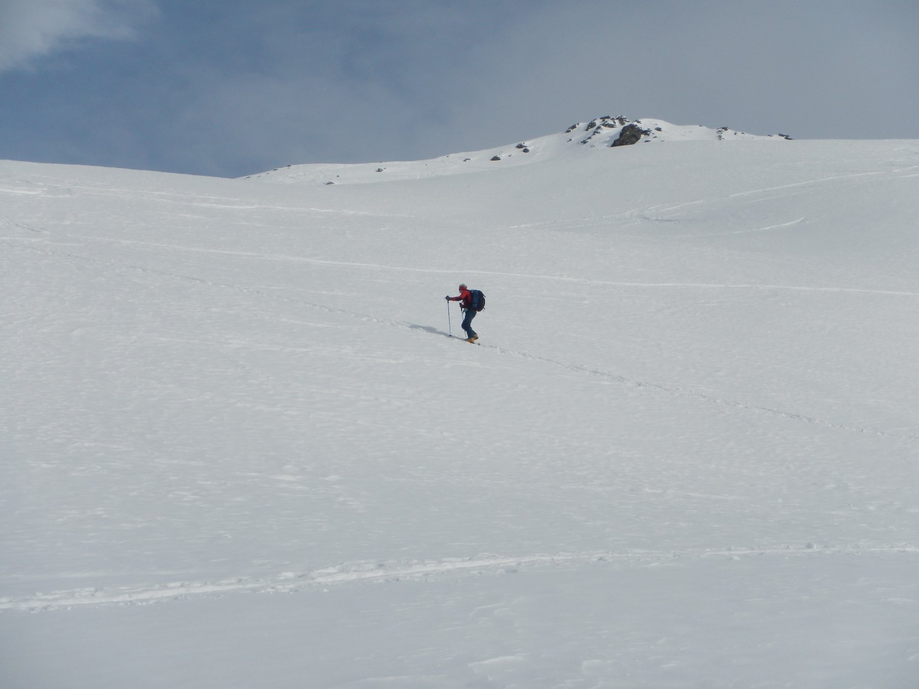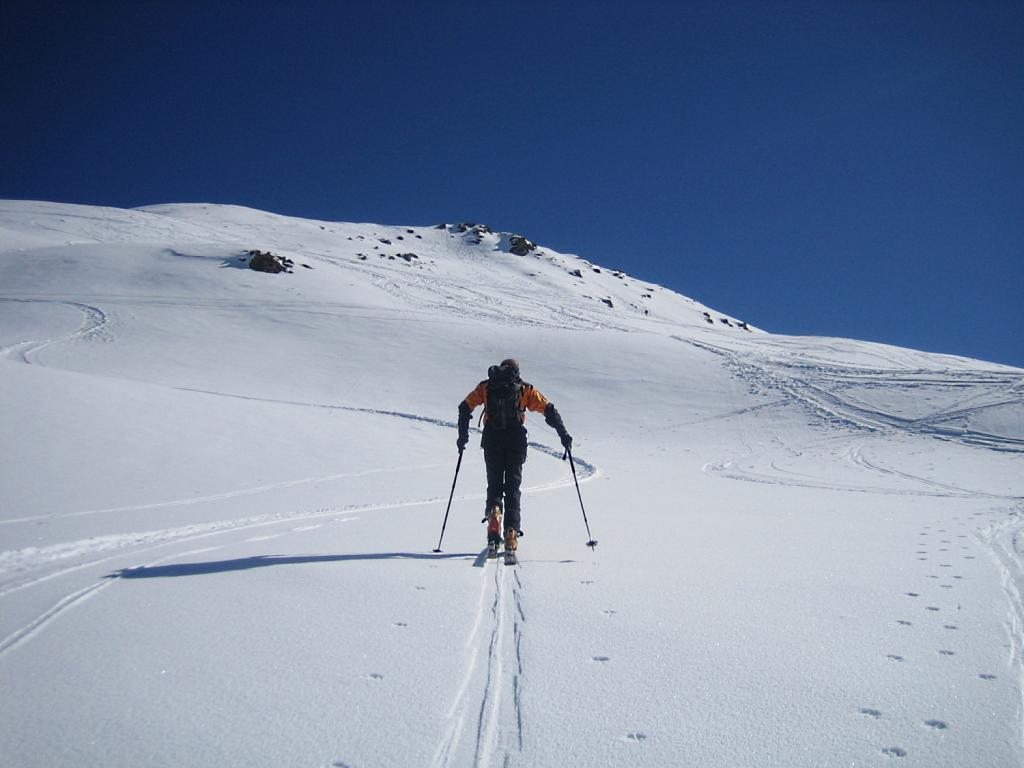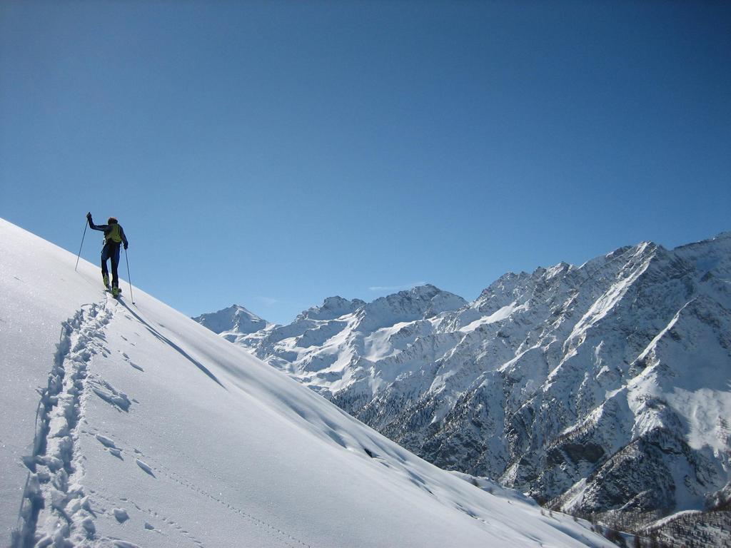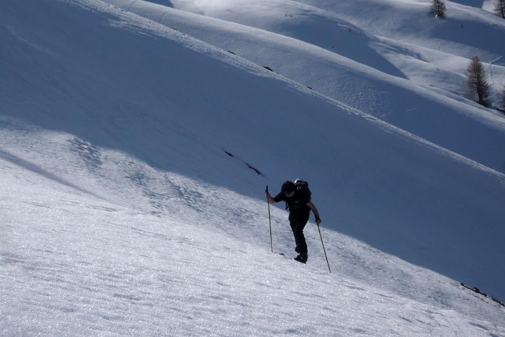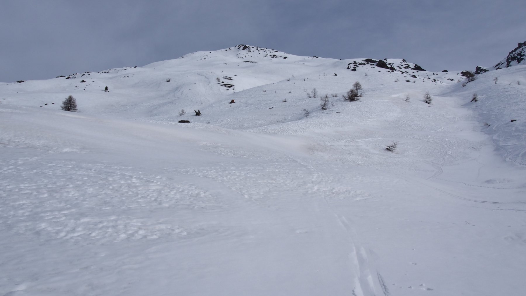 Dal Pont Terrible, imbocco della Valle Argentera (o dal tornante della strada vecchia di Sestriere poco sopra) salire i pendii a fianco degli abitatidi Bessé Bas e Bessé Haut, scegliendo in base alle condizioni se stare sui pendii aperti (sx salendo) o a dx del canale nel bosco. Di qui si giunge all’evidente vetta.