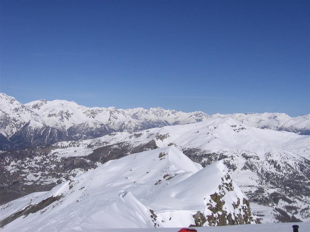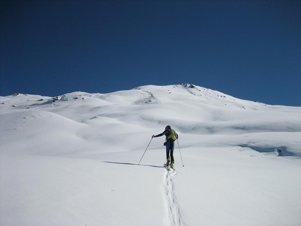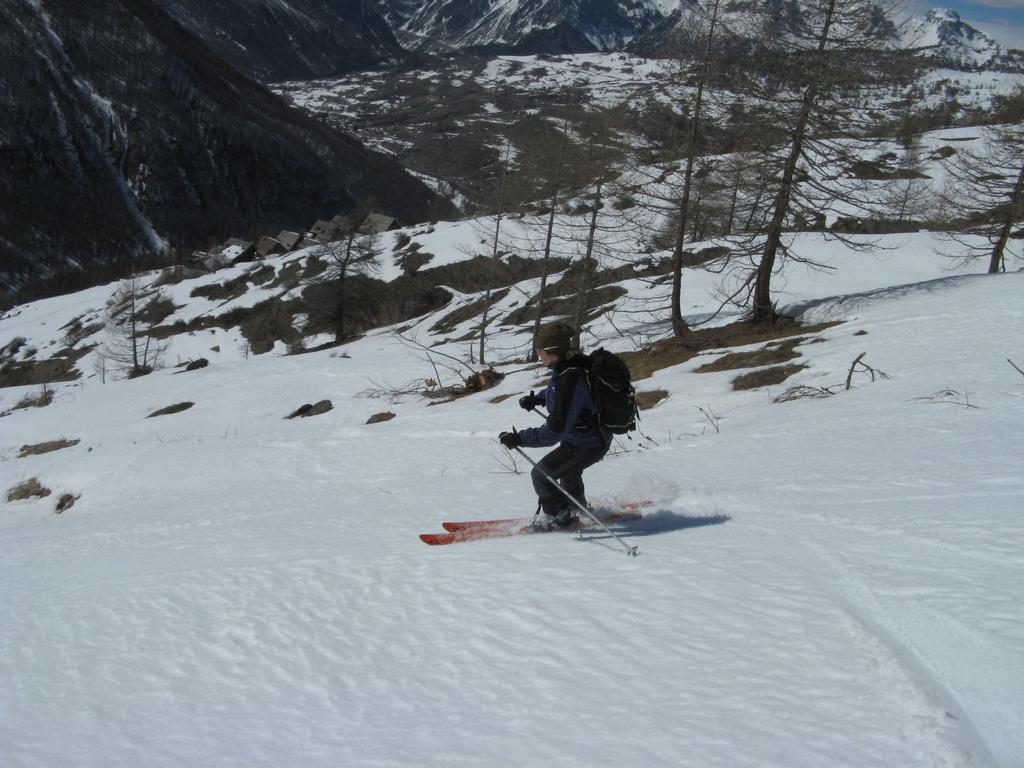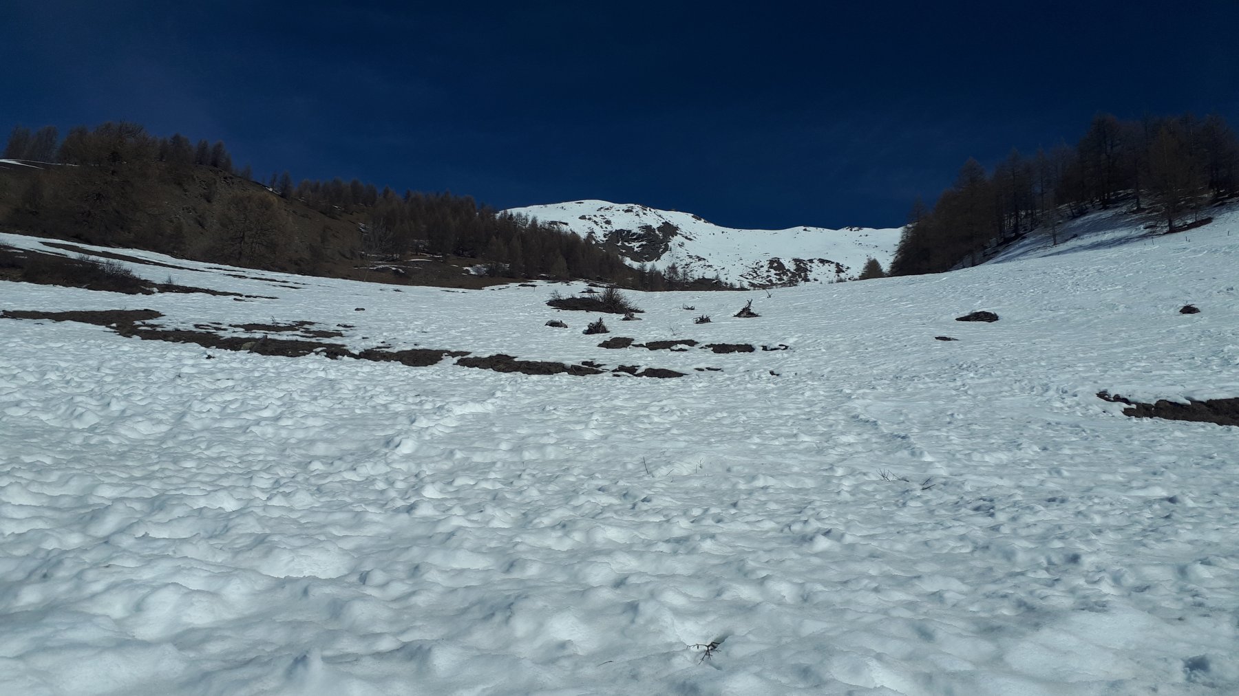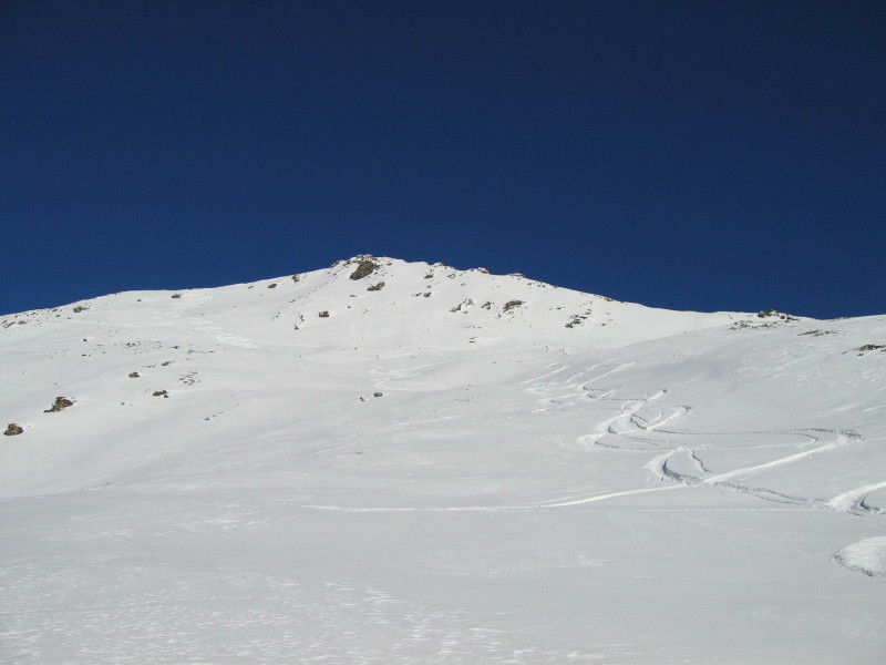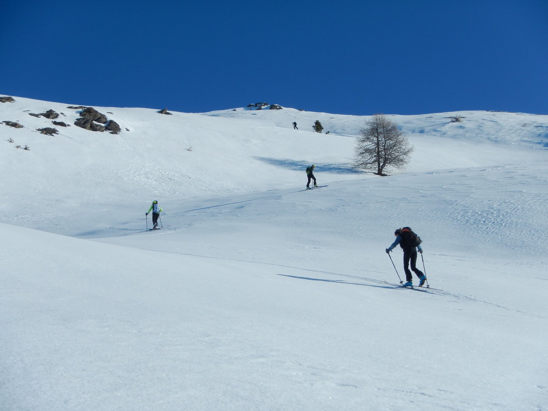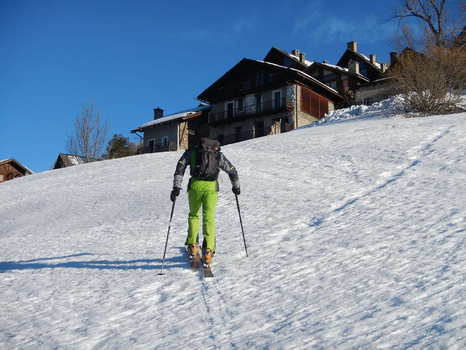 Dal Pont Terrible, imbocco della Valle Argentera (o dal tornante della strada vecchia di Sestriere poco sopra) salire i pendii a fianco degli abitatidi Bessé Bas e Bessé Haut, scegliendo in base alle condizioni se stare sui pendii aperti (sx salendo) o a dx del canale nel bosco. Di qui si giunge all’evidente vetta.
