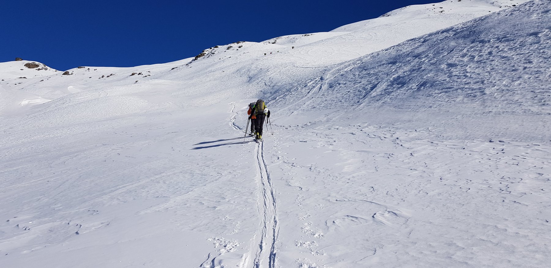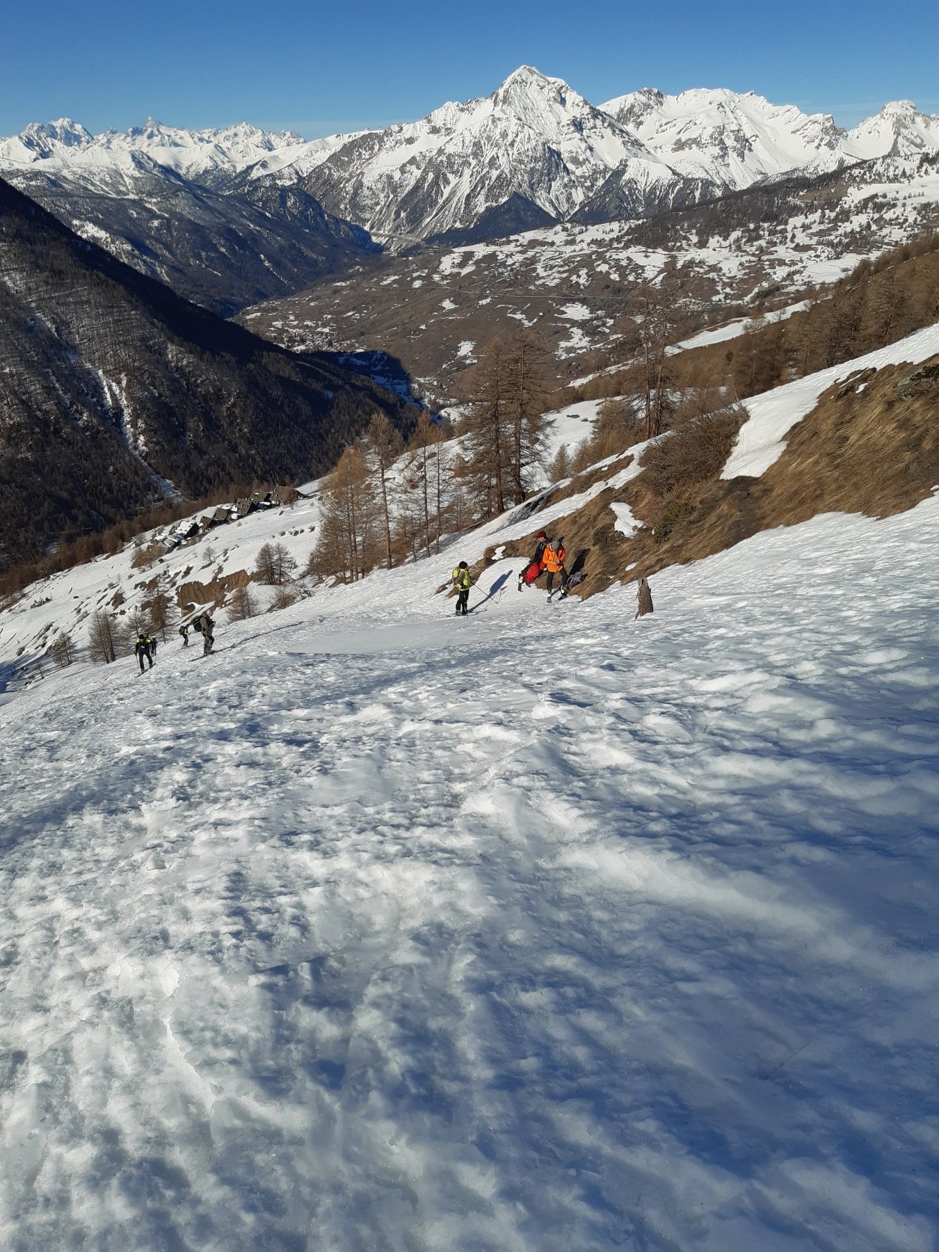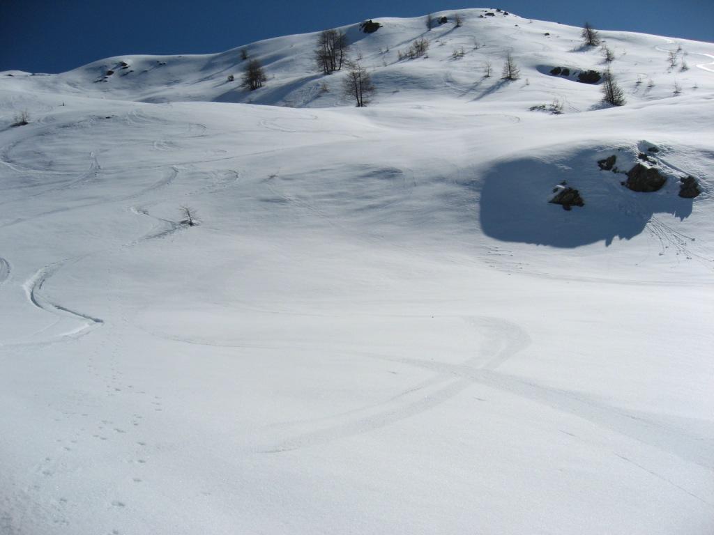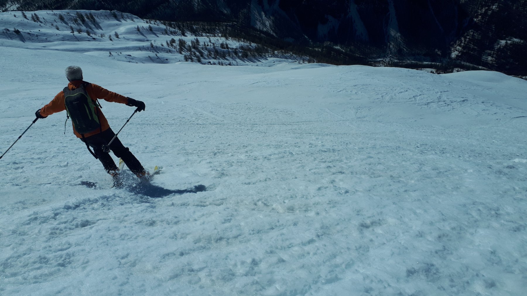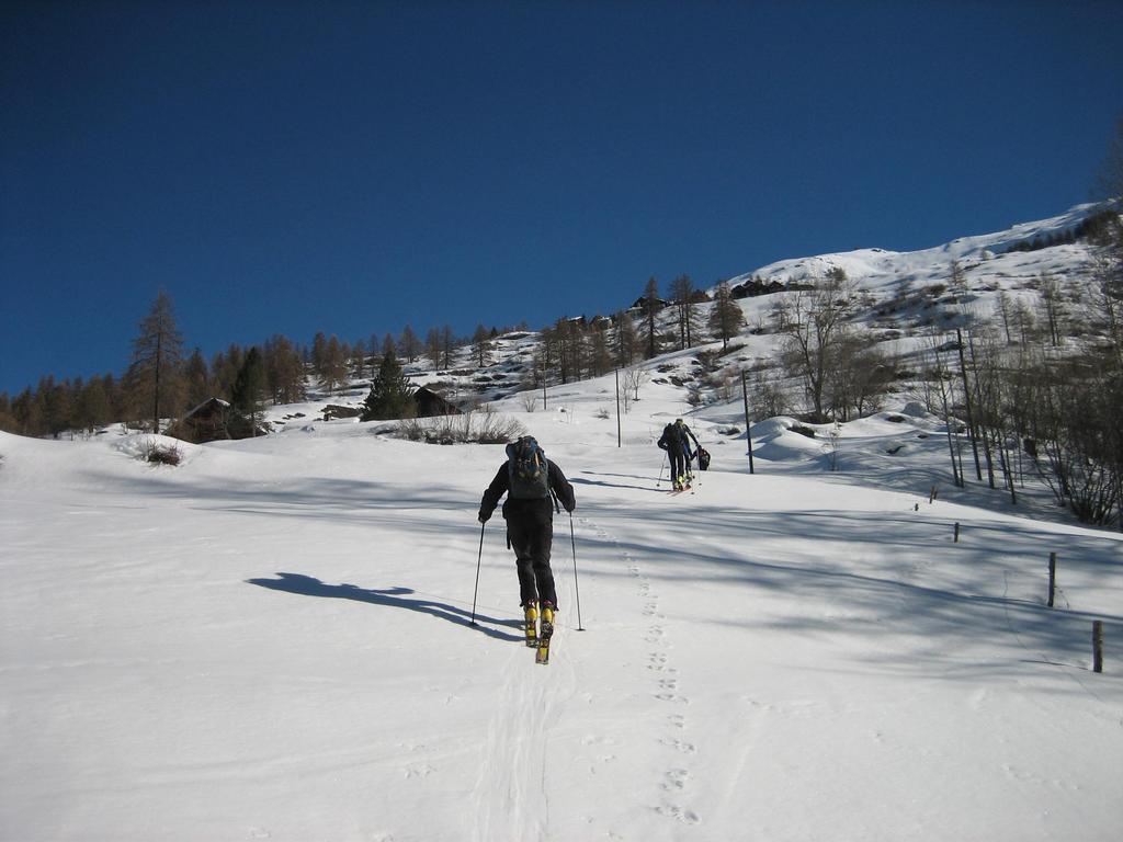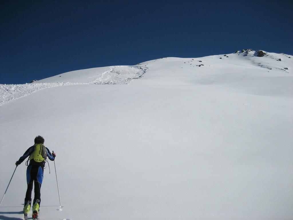 Dal Pont Terrible, imbocco della Valle Argentera (o dal tornante della strada vecchia di Sestriere poco sopra) salire i pendii a fianco degli abitatidi Bessé Bas e Bessé Haut, scegliendo in base alle condizioni se stare sui pendii aperti (sx salendo) o a dx del canale nel bosco. Di qui si giunge all’evidente vetta.