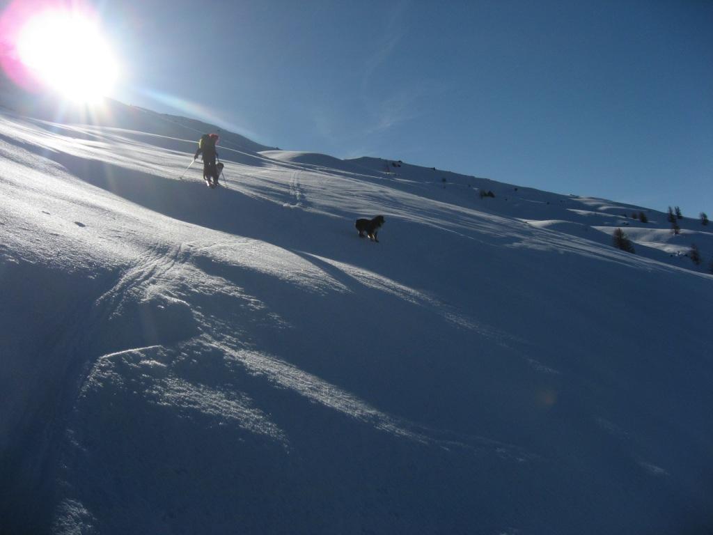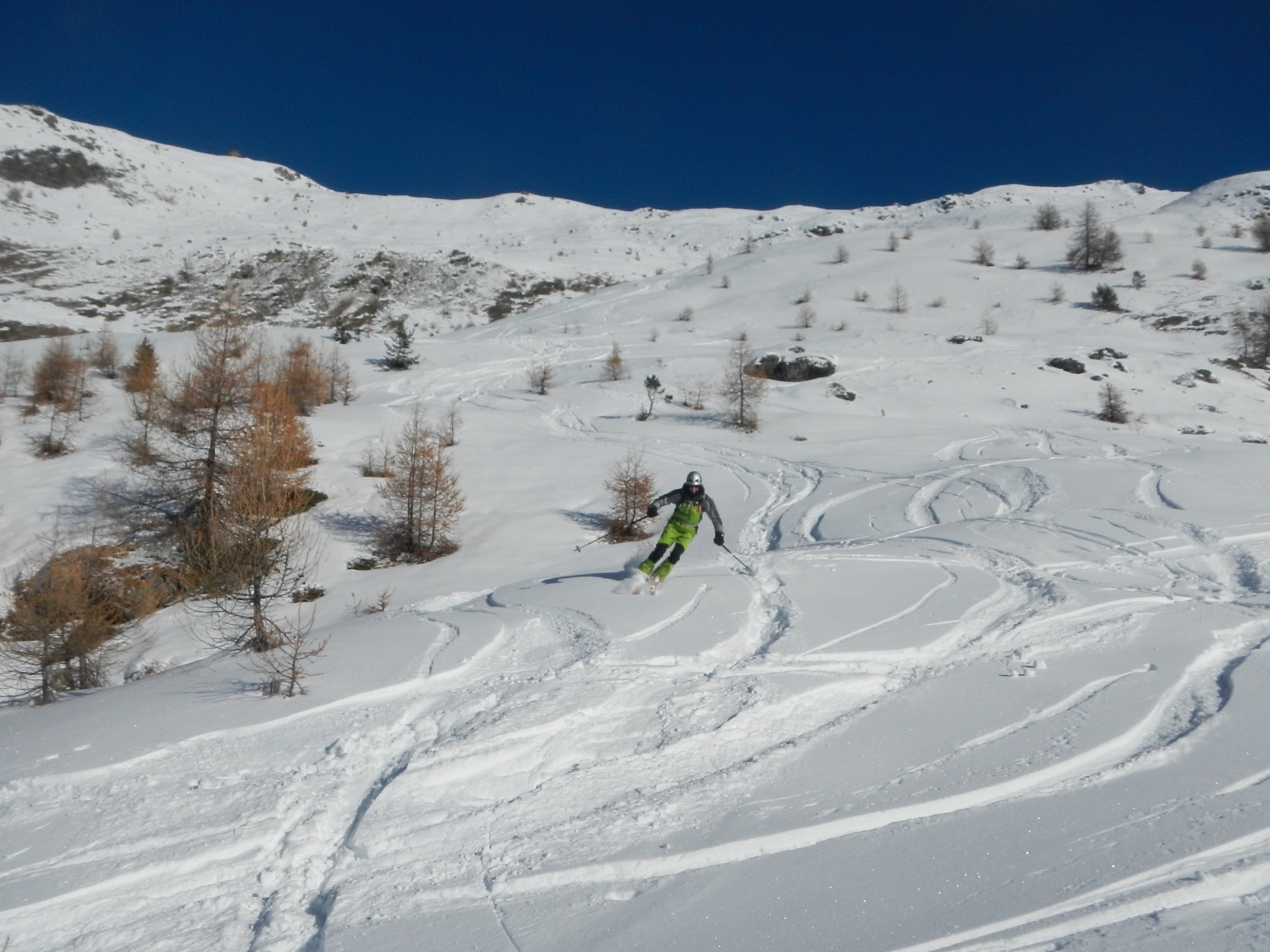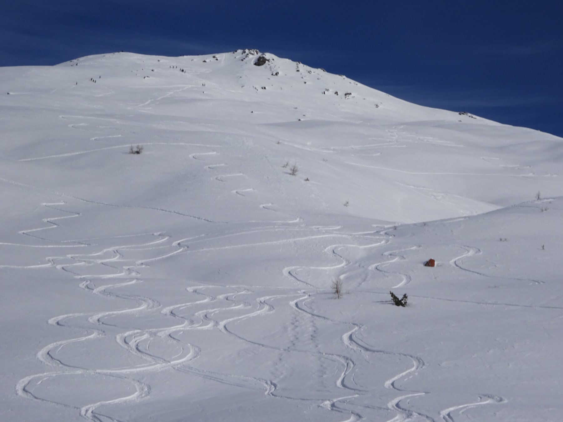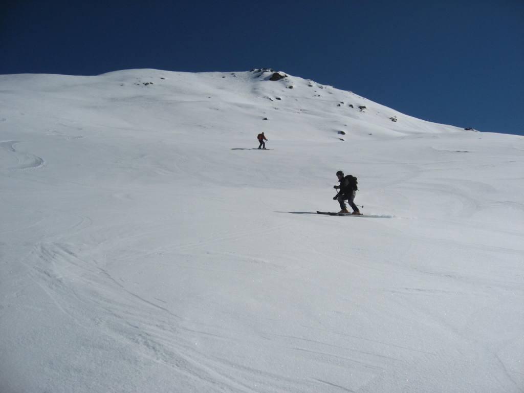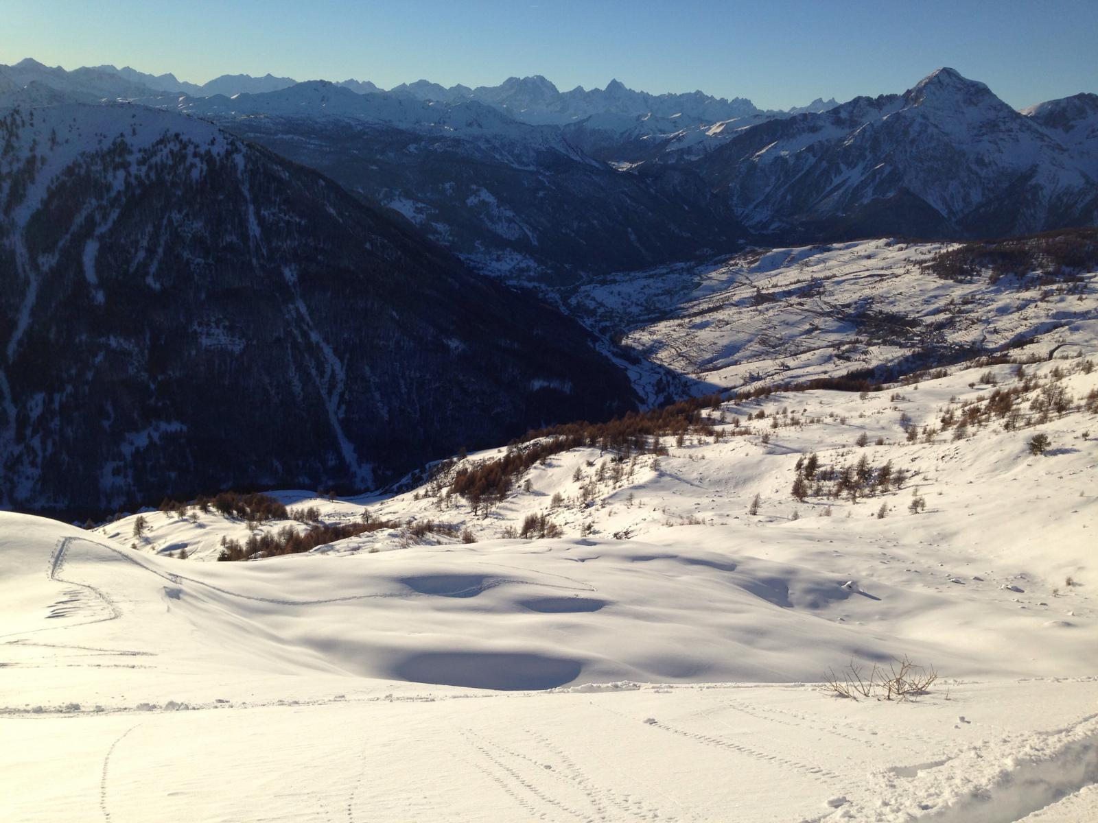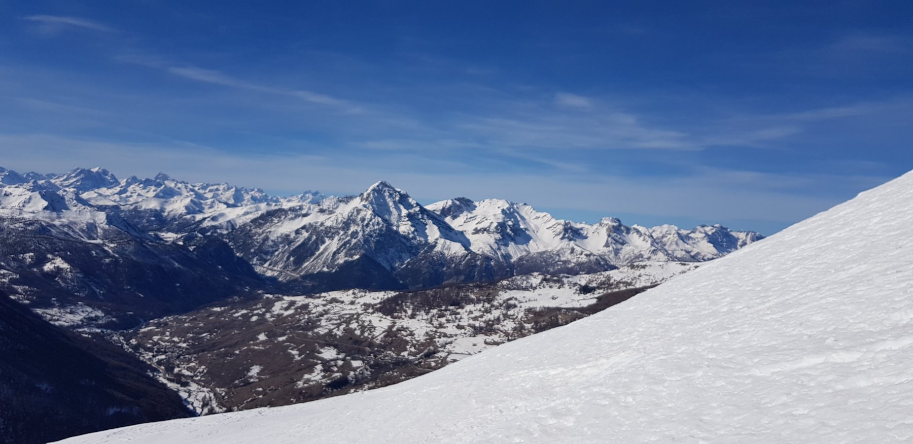 Dal Pont Terrible, imbocco della Valle Argentera (o dal tornante della strada vecchia di Sestriere poco sopra) salire i pendii a fianco degli abitatidi Bessé Bas e Bessé Haut, scegliendo in base alle condizioni se stare sui pendii aperti (sx salendo) o a dx del canale nel bosco. Di qui si giunge all’evidente vetta.