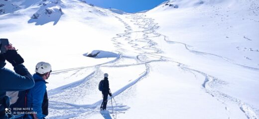 Partiti con calma alle 10,00 direzione stradina x intermedia seggiovia SG4 GARNEL da cui parte tracciato skialp per Monte Sises. traverso dopo Sises un po’ complicato tra pietre affioranti. in cima al Querellet alle 13,00 solo noi. Traversato (sempre tra pietre affioranti) fino al Passo S.Giacomo dove ci attende… il canalone intonso! mega sciata su powder fino in fondo l vallone del Chisonetto poi rientro su Sestriere con merenda finale.