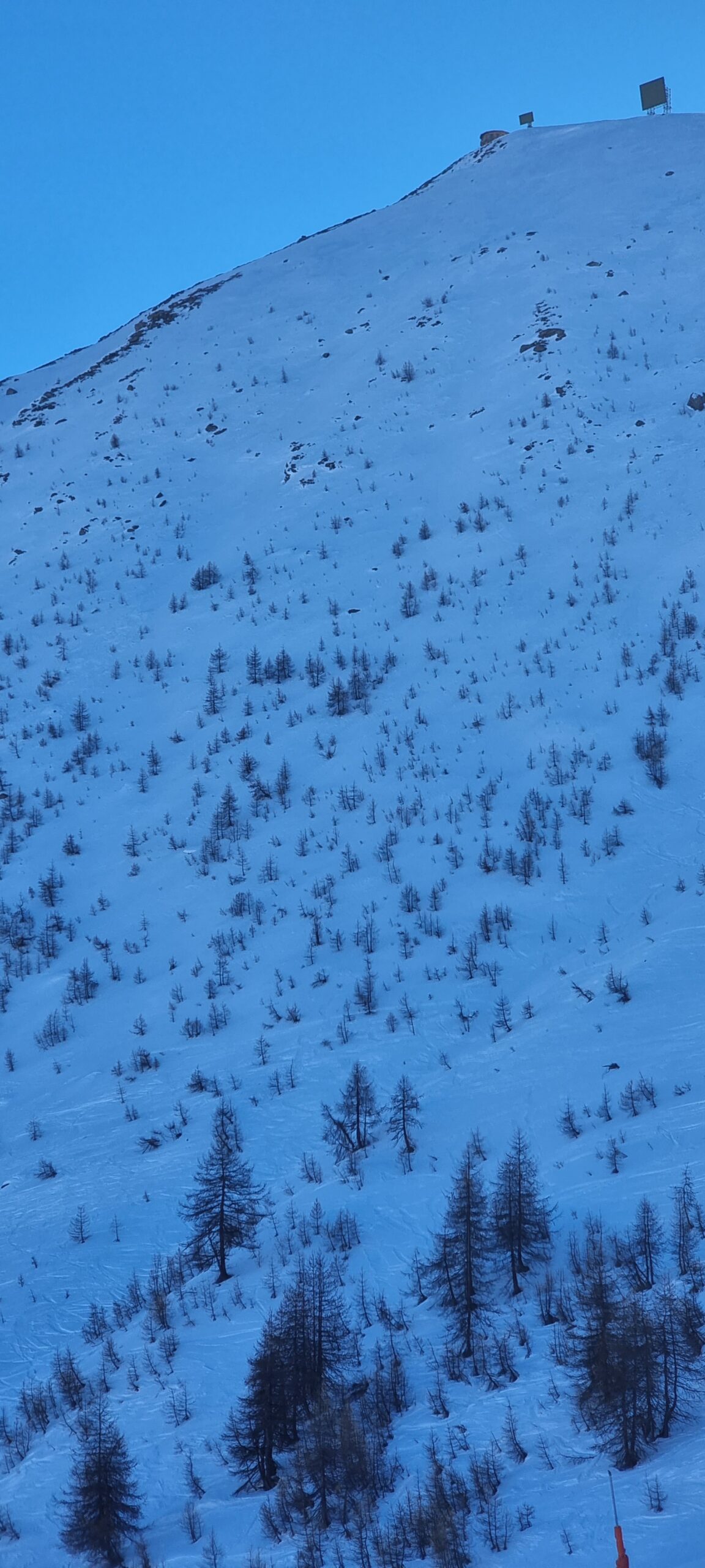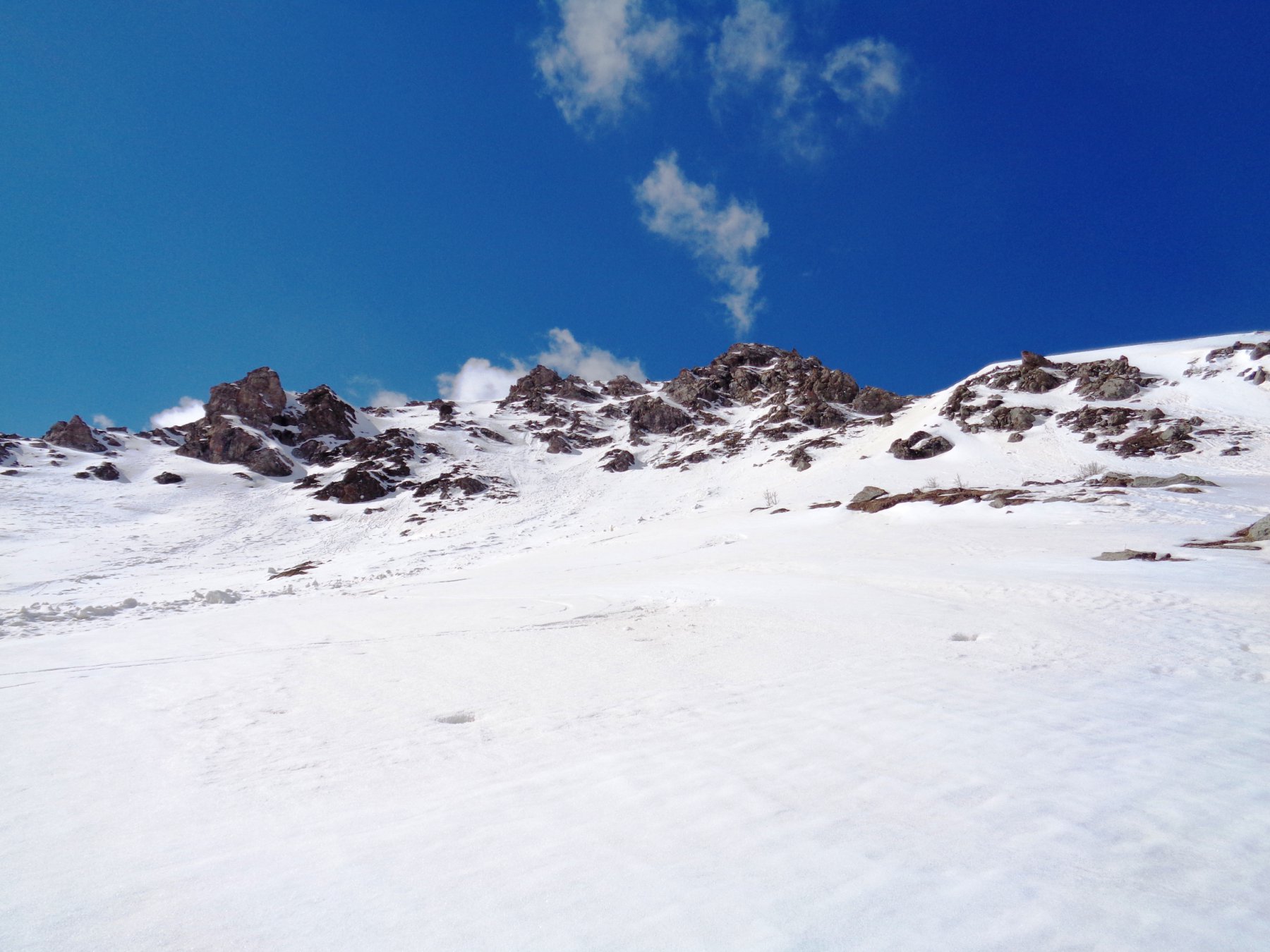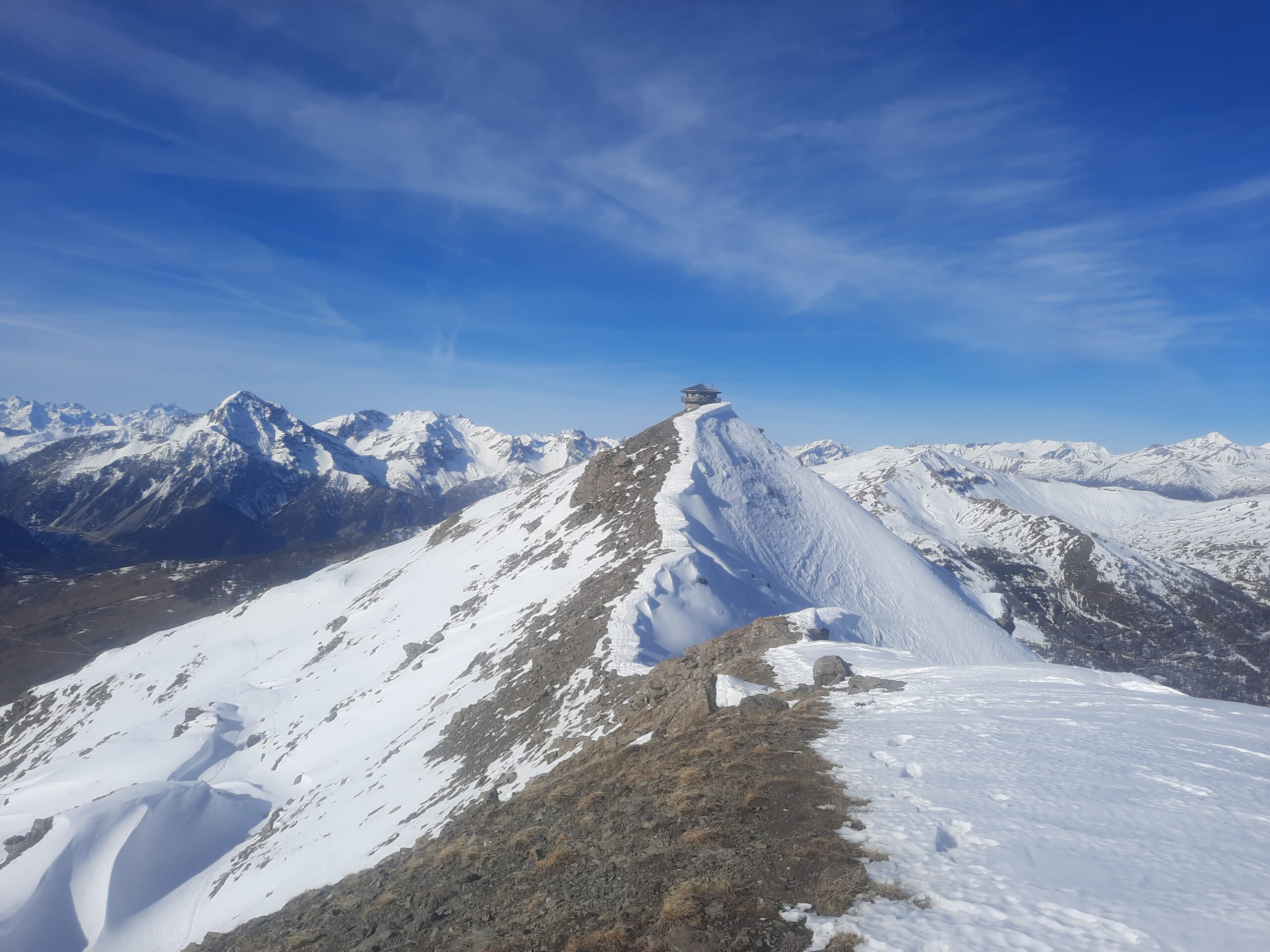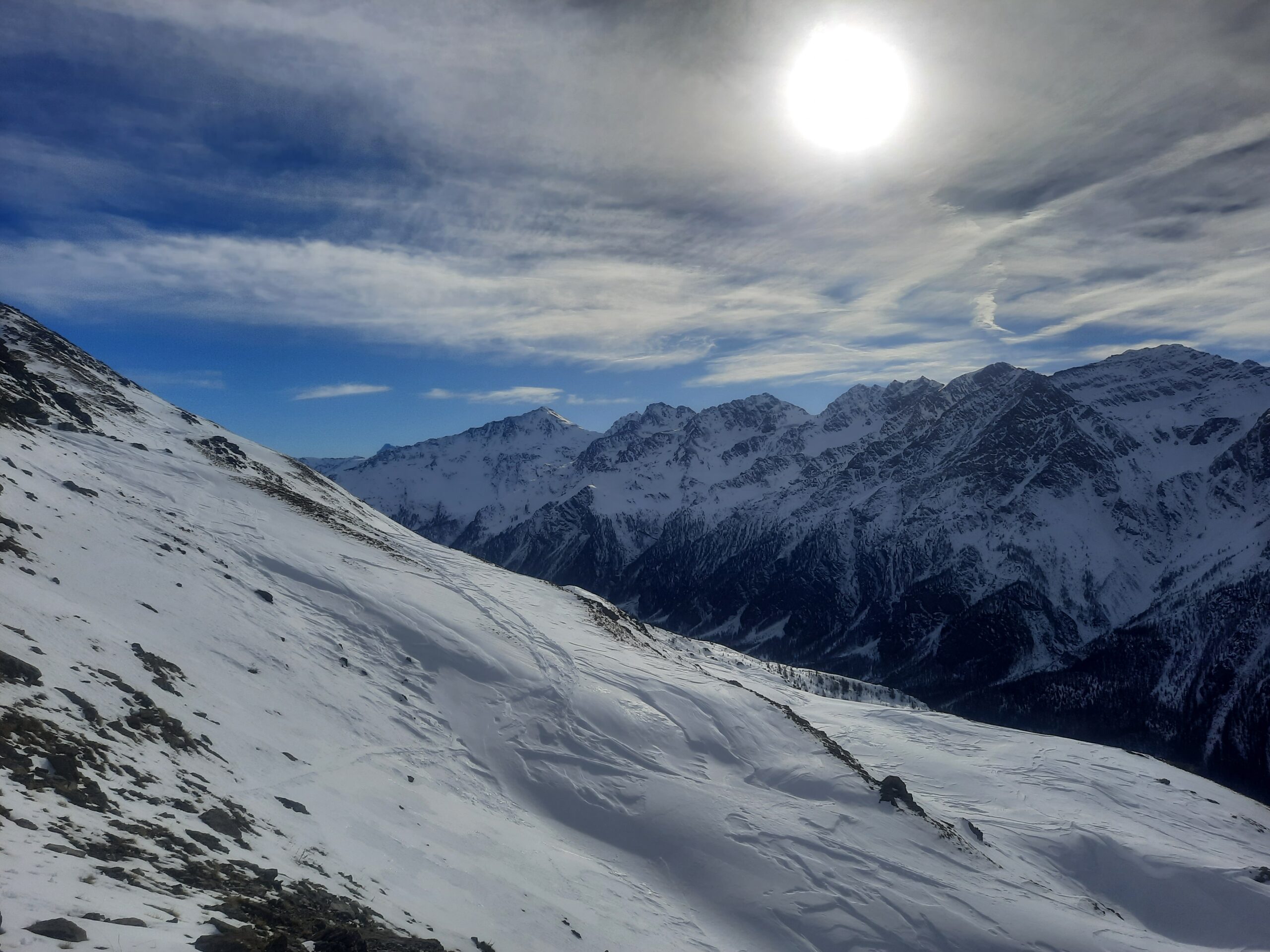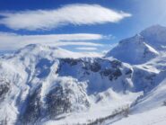 - Faina: parte direttamente dalla costruzione di vetta e scende in mezzo a balze e quinte rocciose in un ambiente bello ma mai troppo ripido (max 40°). Variante di sx consigliabile in caso di scarso innevamento. 4.1 E2