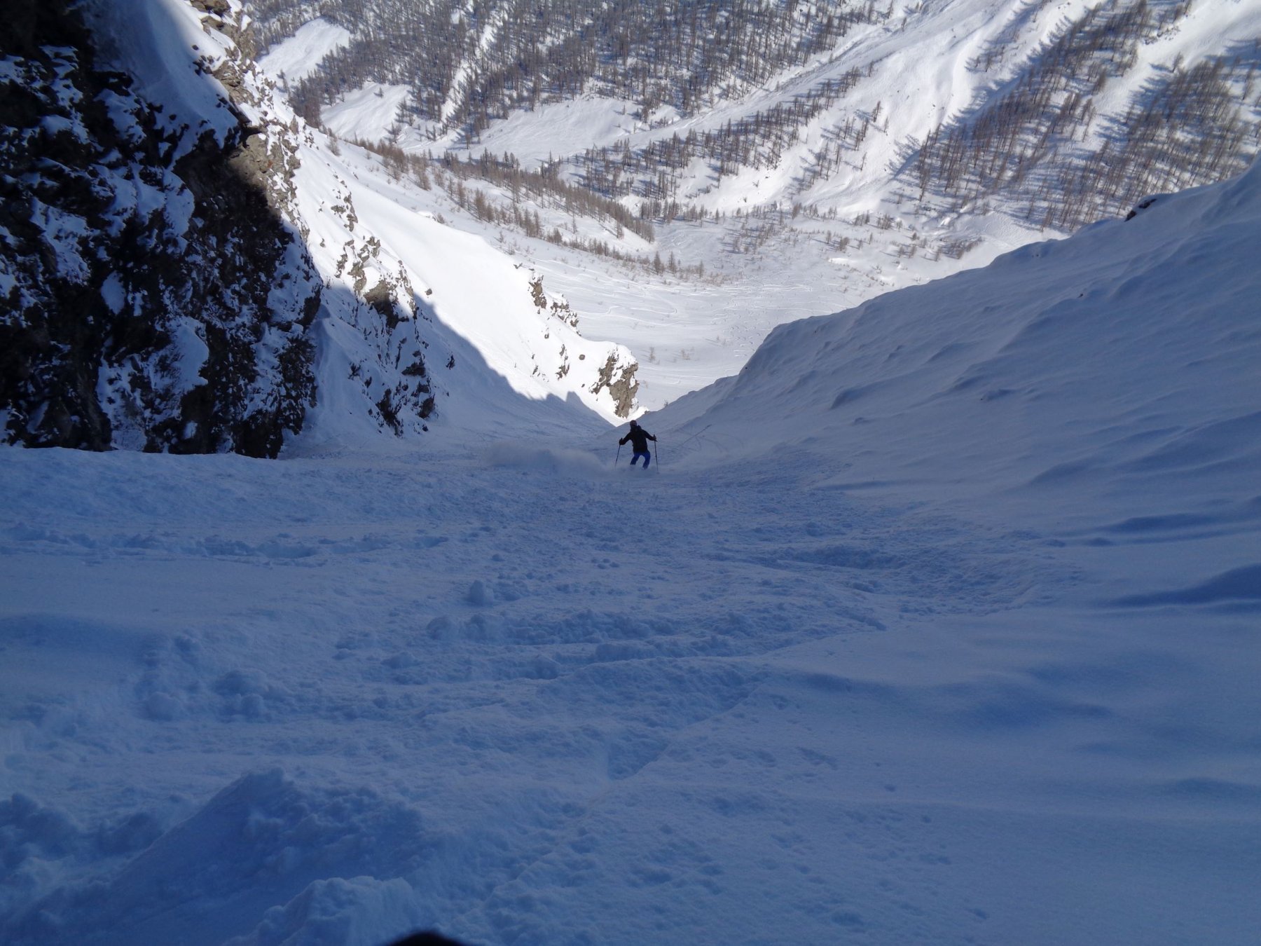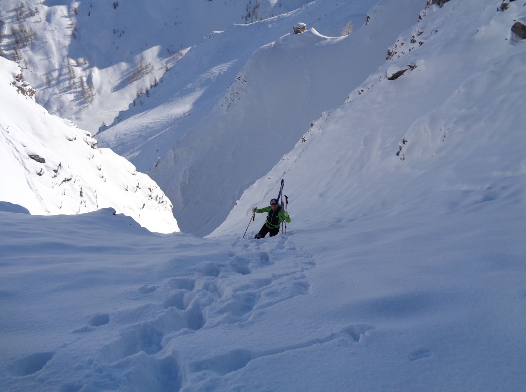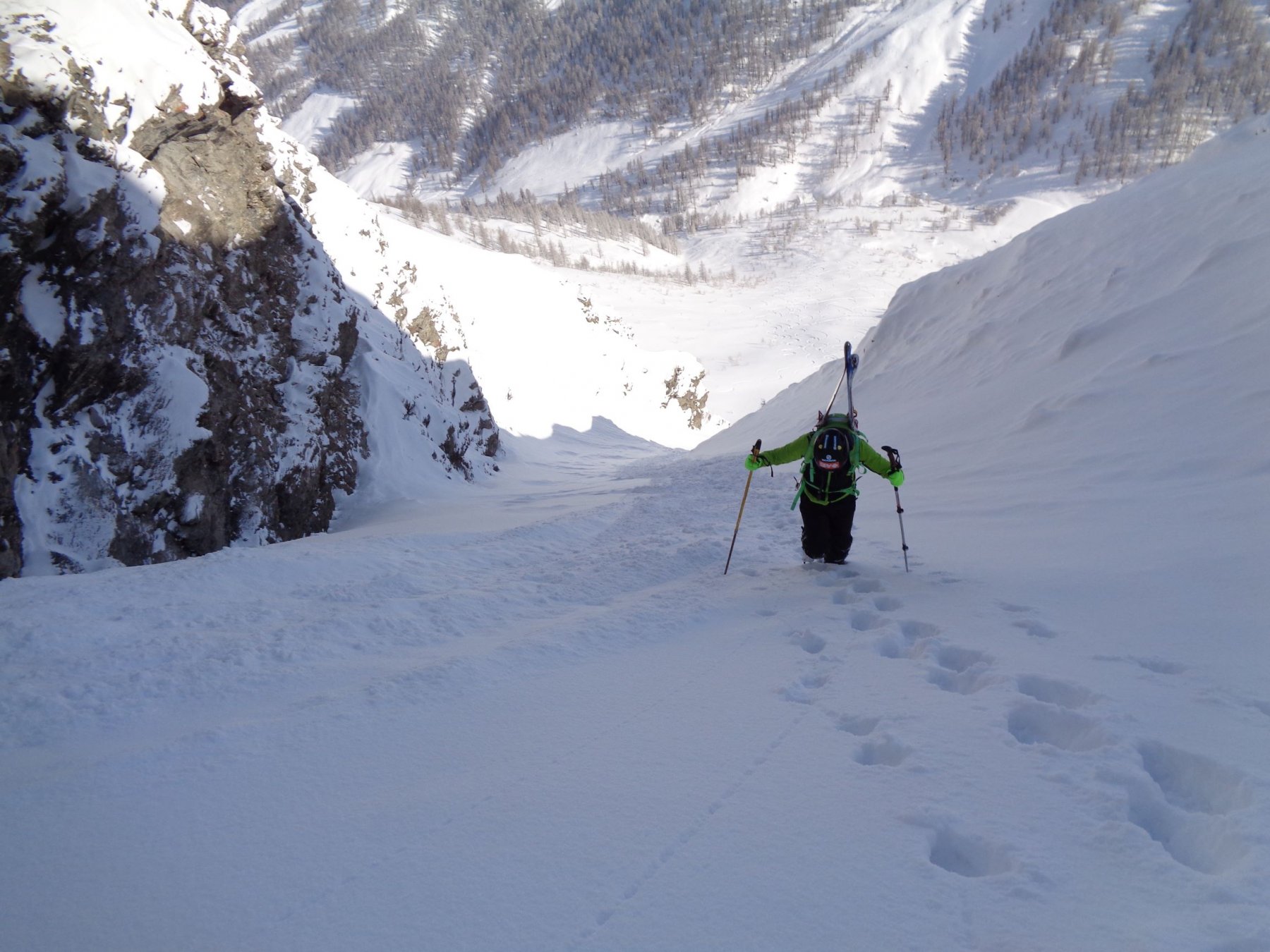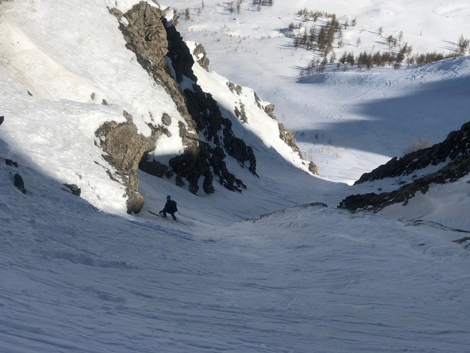- Canale a “C”: posta a metà tra il Sises e il Querellet, itinerario fra le balze ma sempre abbastanza evidente. Qualora l’entrata diretta dal colletto non fosse in condizioni (cornice e poca neve subito sotto) è possibile percorrere la prima parte dello “Z” e poi traversare alti. 4.1/4.2 E2