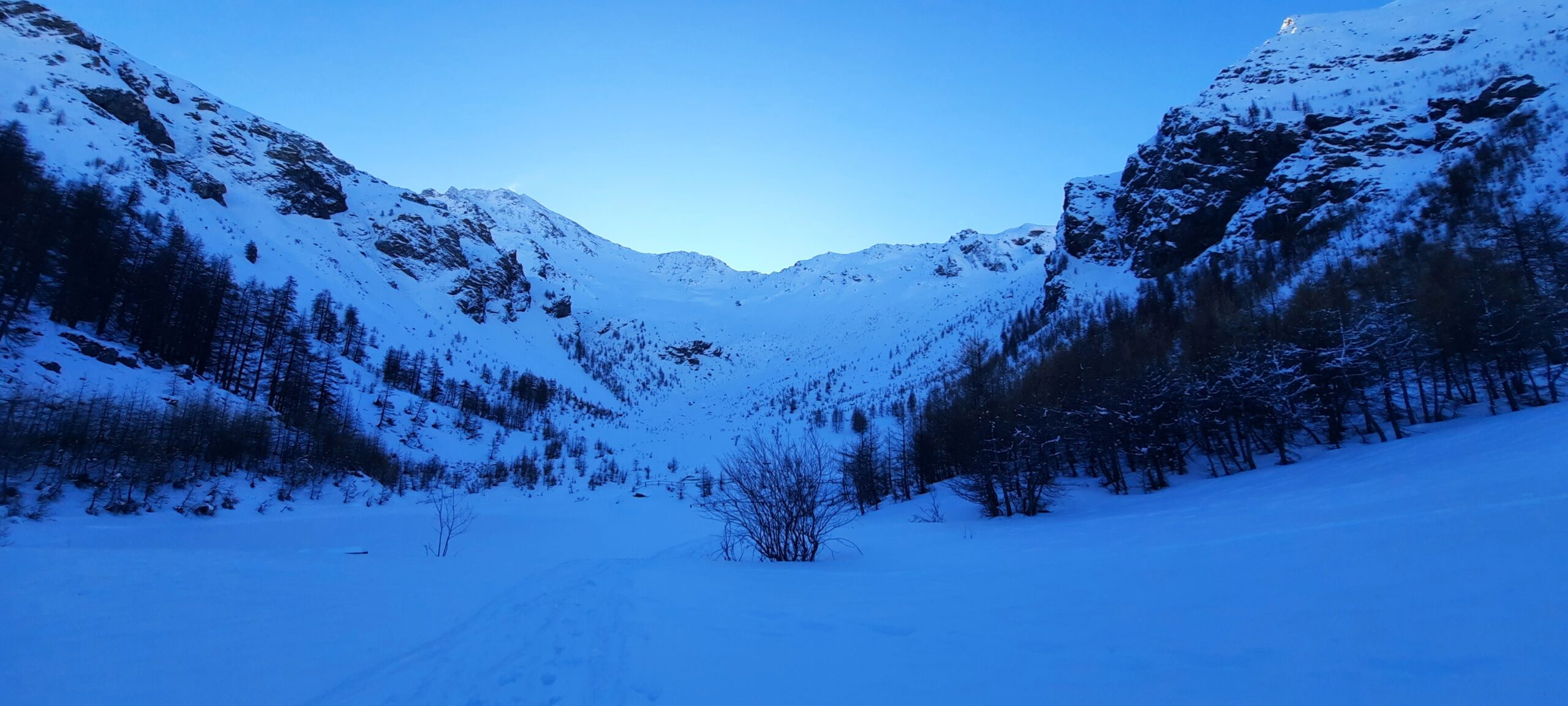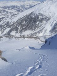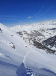 Da tutti gli itinerari si torna a Sestriere seguendo la stradina di fondovalle, volendo con un traverso alto a sx dal canale Faina si torna ancora nella NE del Sises.
