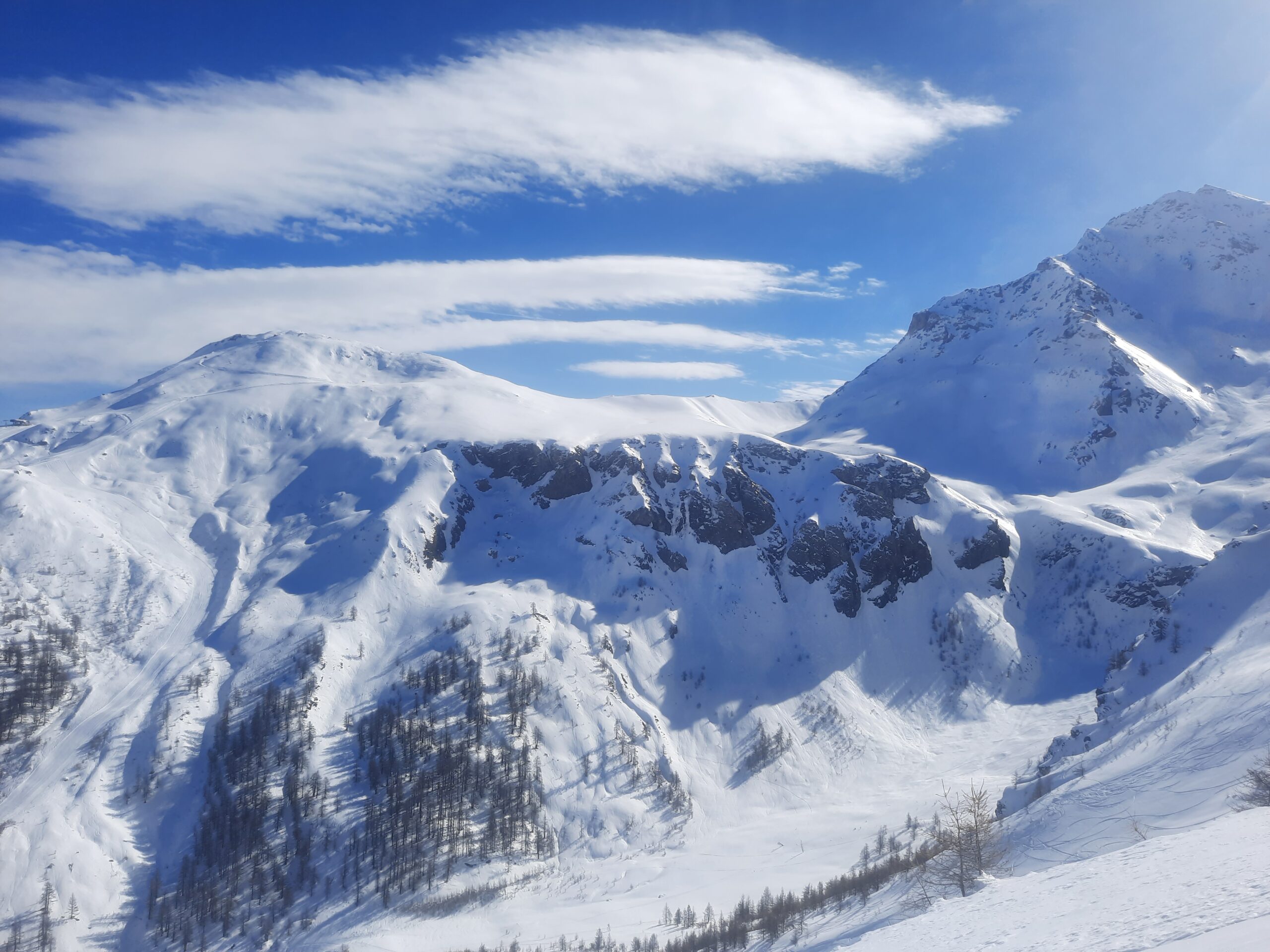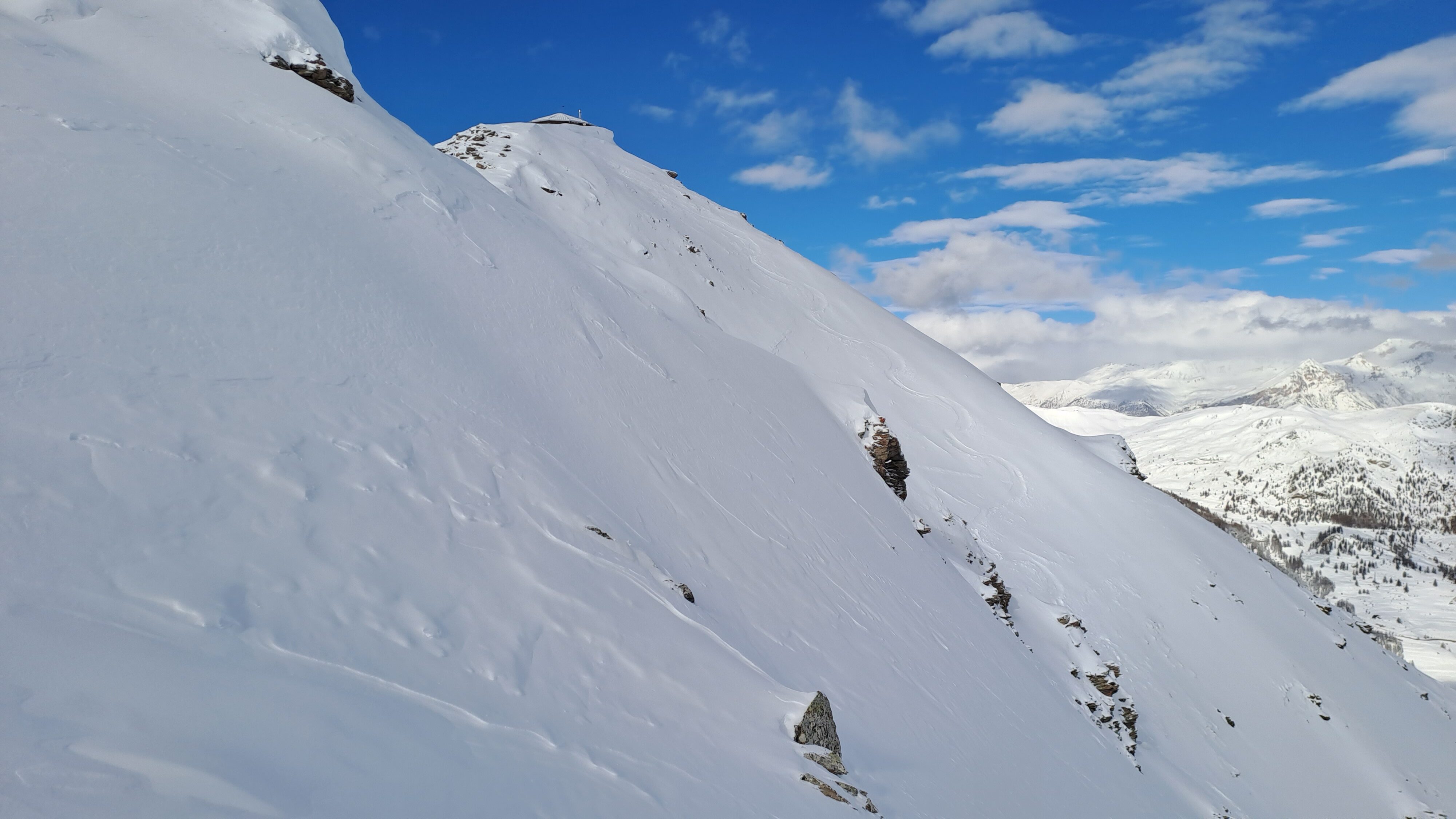 Dalla cima del Sises (raggiungibile lungo le piste di Sestriere) inizia una serie di sei canali che scendono nel vallone del Chisonetto, con generale esposizione a NE-E.