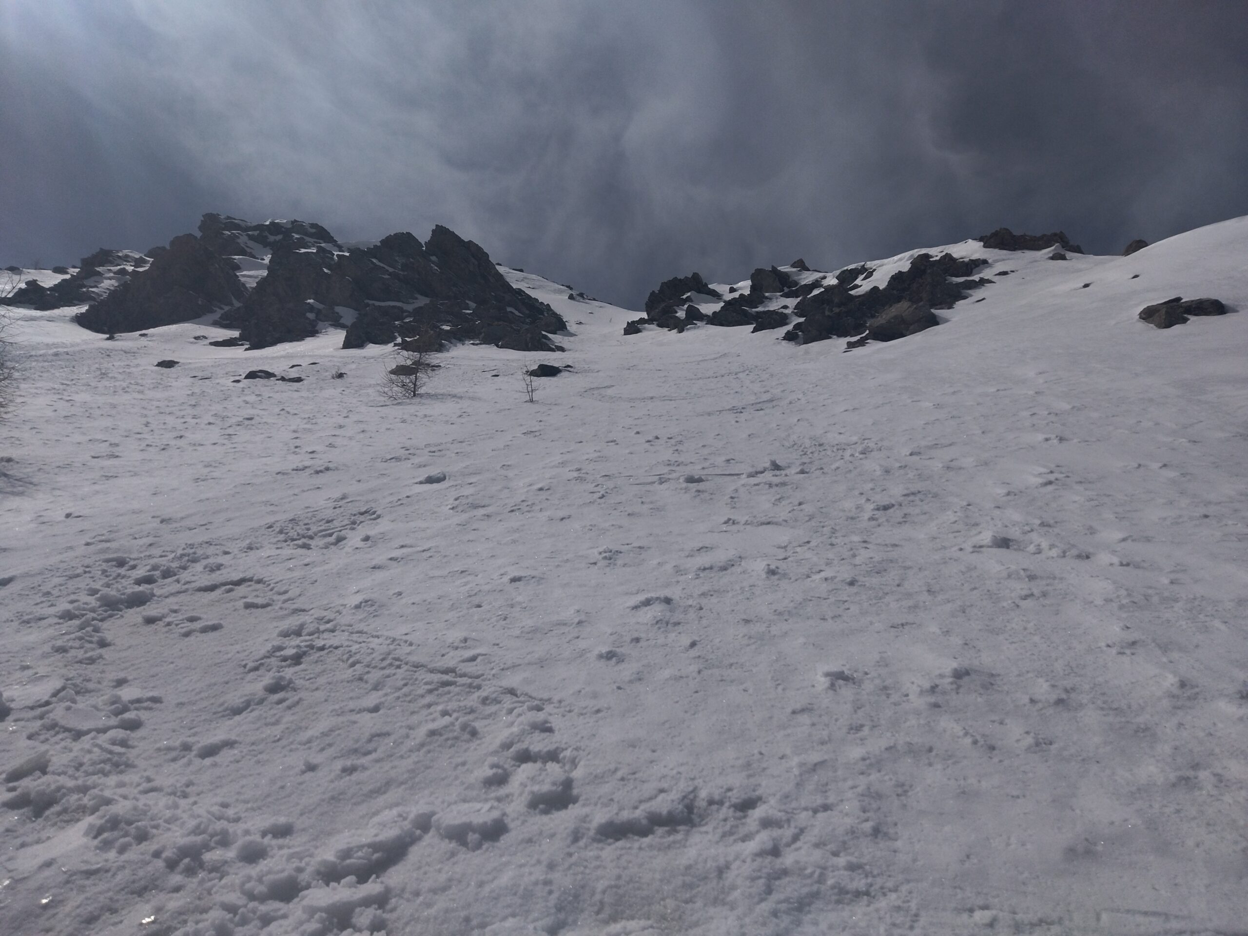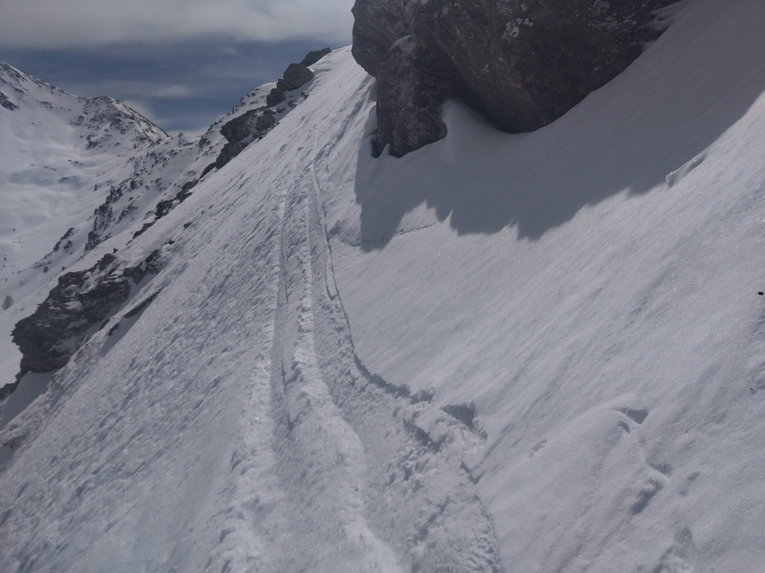 Salito al passo di San Giacomo dalla conca del chisonetto, sci a 50 metri dal parcheggio. Discesa alle 9,30 su cremina in alto e fondo duro ma liscio e con buon grip in basso. Risalito dal Galassia, fino alla strettoia in sci, poi in scarponi, sprofondando solo negli ultimi 50 metri. In cima vento patagonico e neve durissima verso Sestriere. Sceso dal Faina, con alcuni passaggi delicati per rocce affioranti. Tagliato a metà sulla NE del sises trovando un filo di cremina su fondo duro, perfetta.