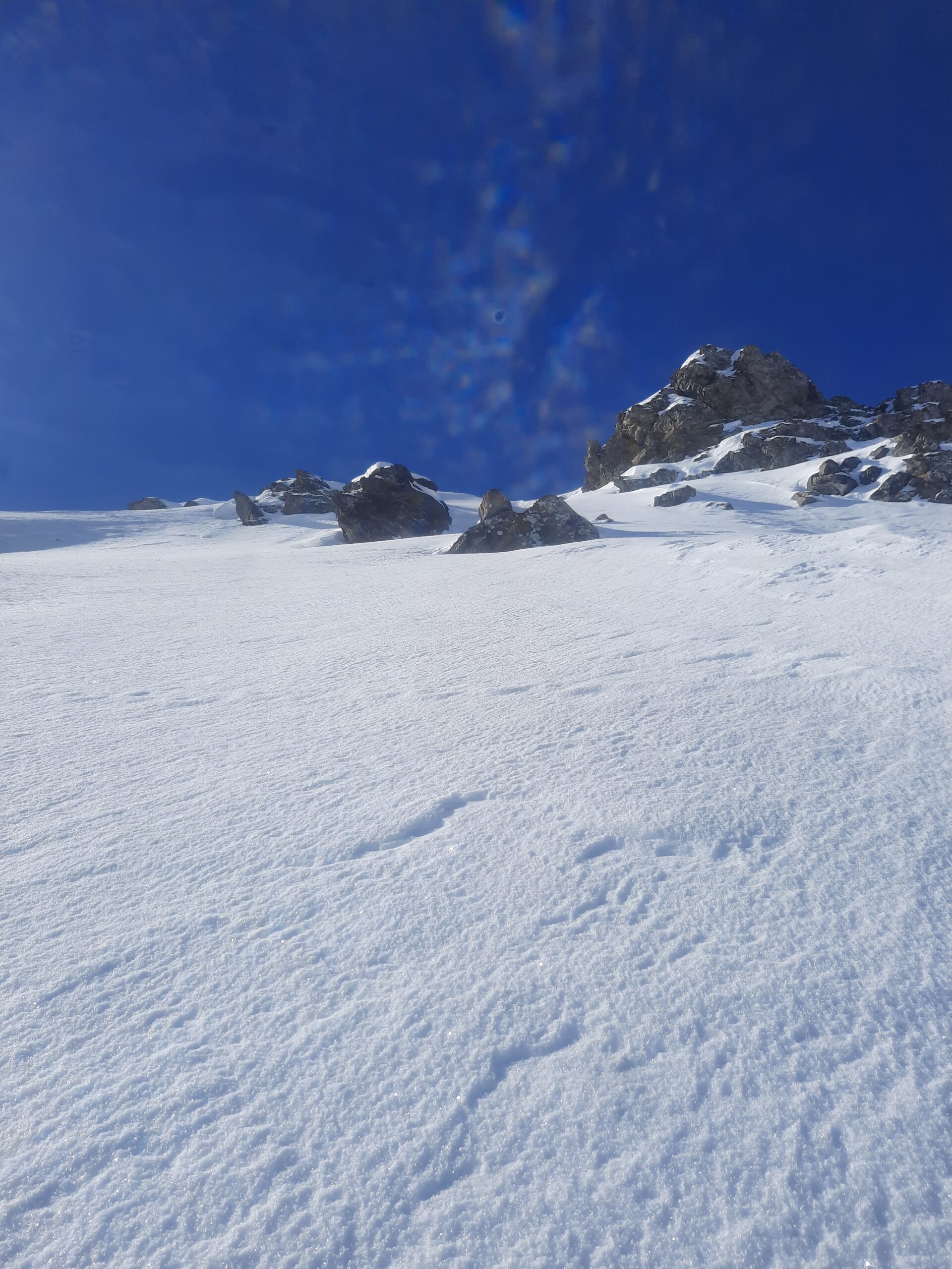 Tante tracce sul Querellet e poche fino al colletto della Rognosa; anche sul Gran Roc sono presenti delle tracce e anche qua niente valanghe.