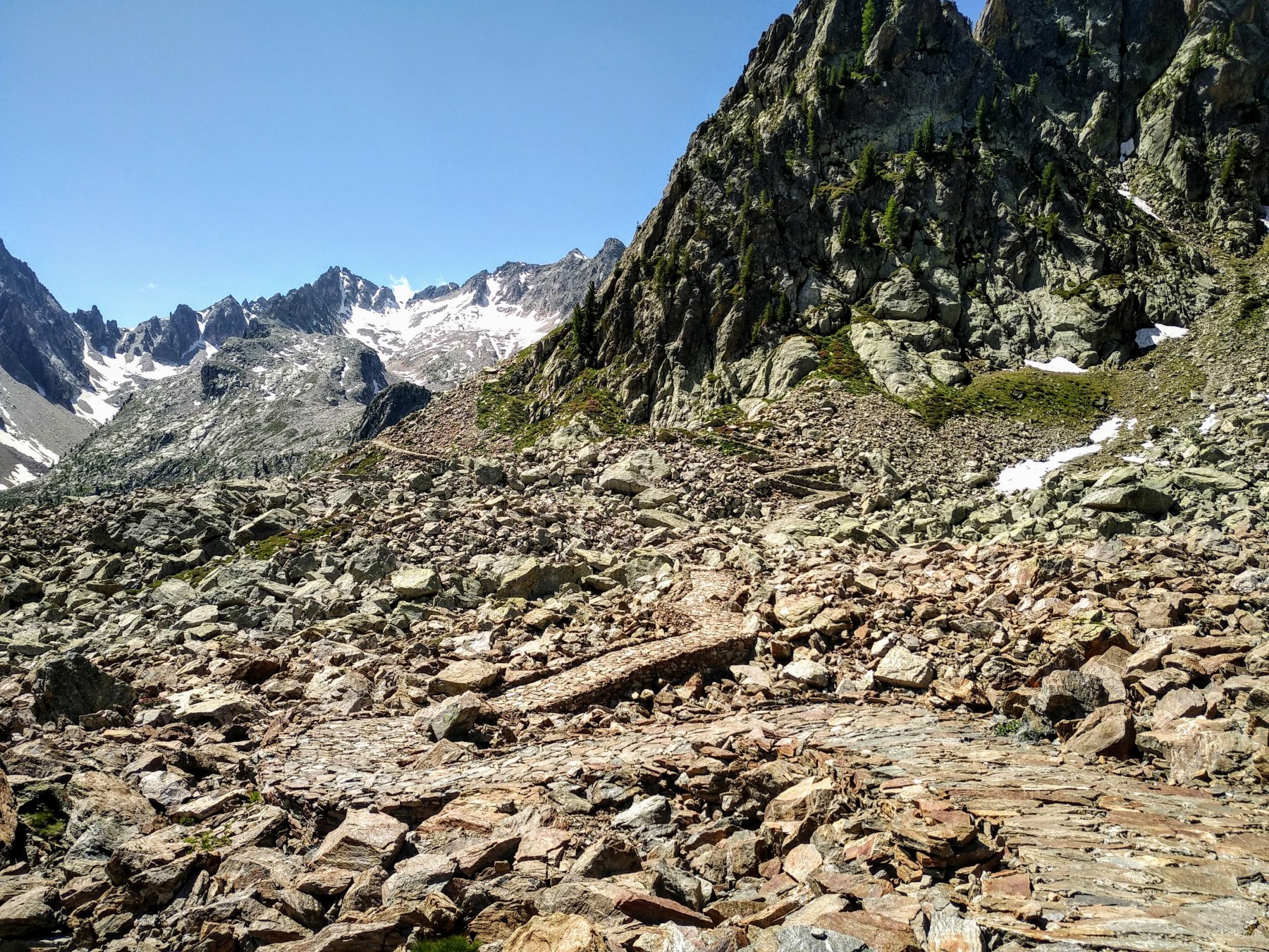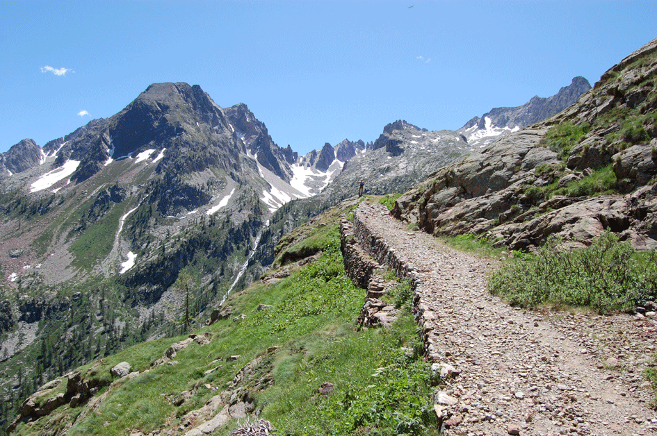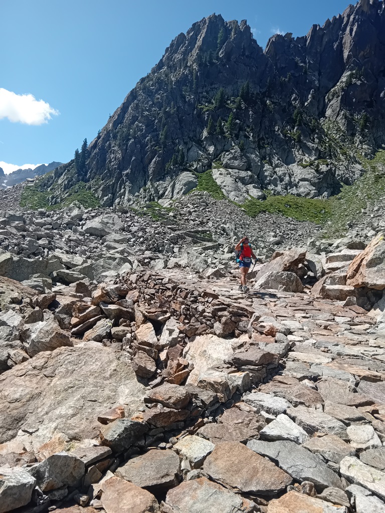 L'anello per il Lago di Valrossa allunga un po' il percorso rispetto alla salita/discesa diretta al rifugio, ma è davvero consigliabile per la bellezza degli ambienti e per vedere la spettacolare mulattiera lastricata nella zona del Lago Claus.