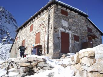 Giornata splendida e fredda. Innevamento continuo dal Valasco (5-10 cm). Al rifugio eravamo soli !