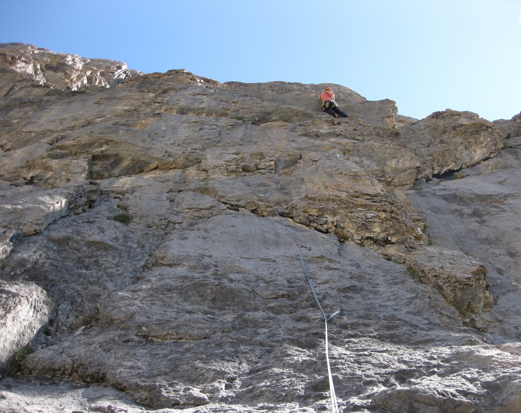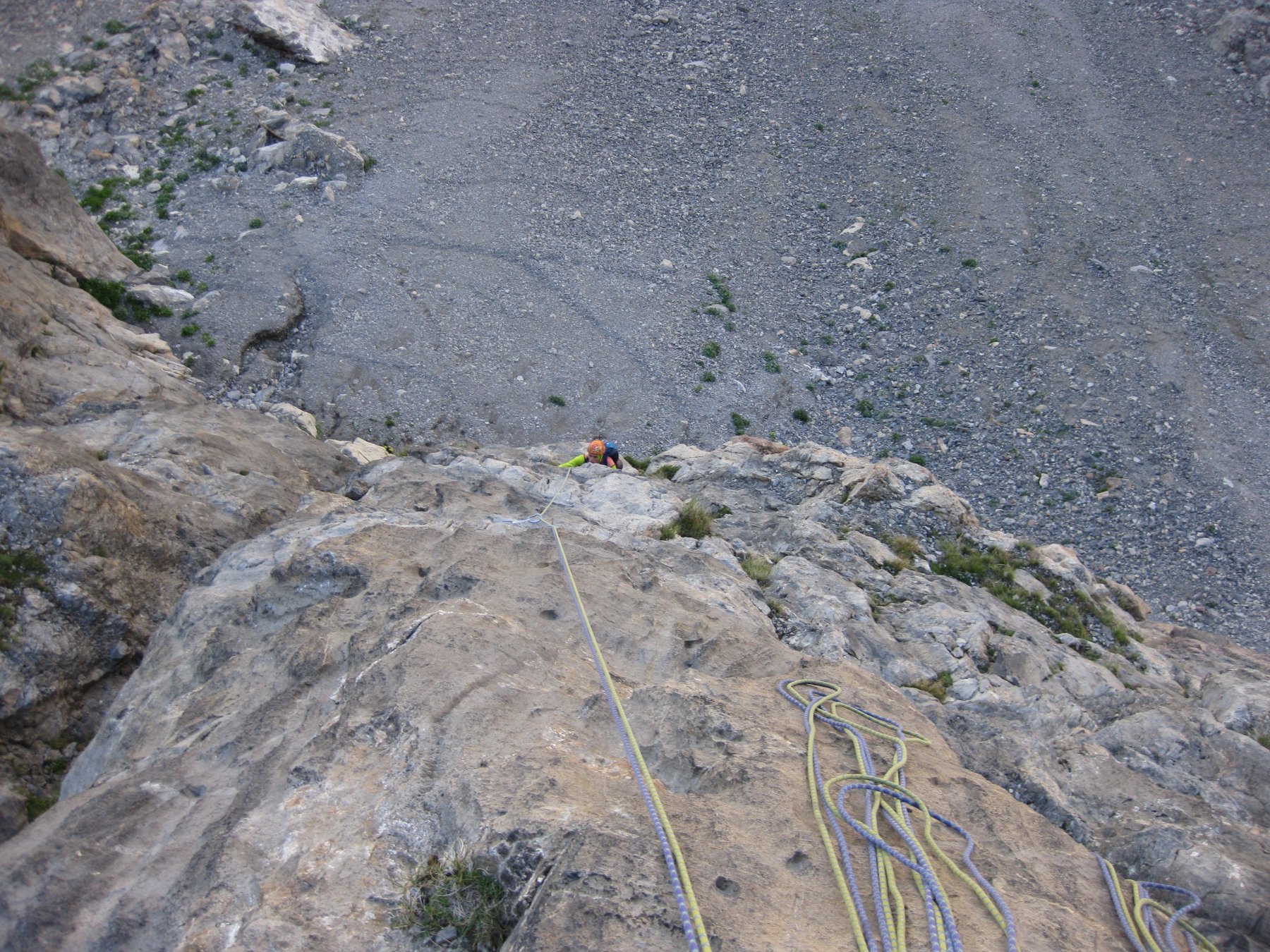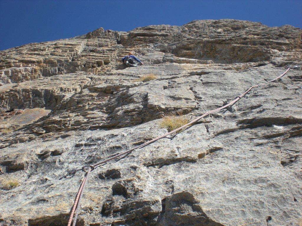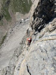 Da qui si risale la pietraia raggiungendo la base della parete. Totale avvicinamento dalla macchina circa 2 ore.