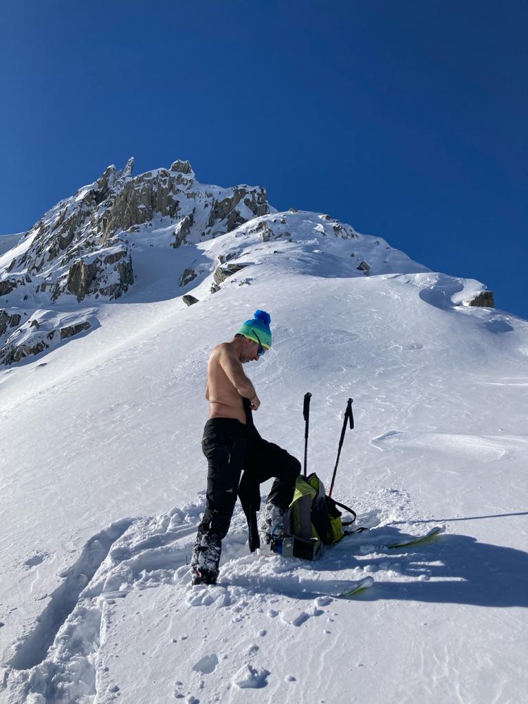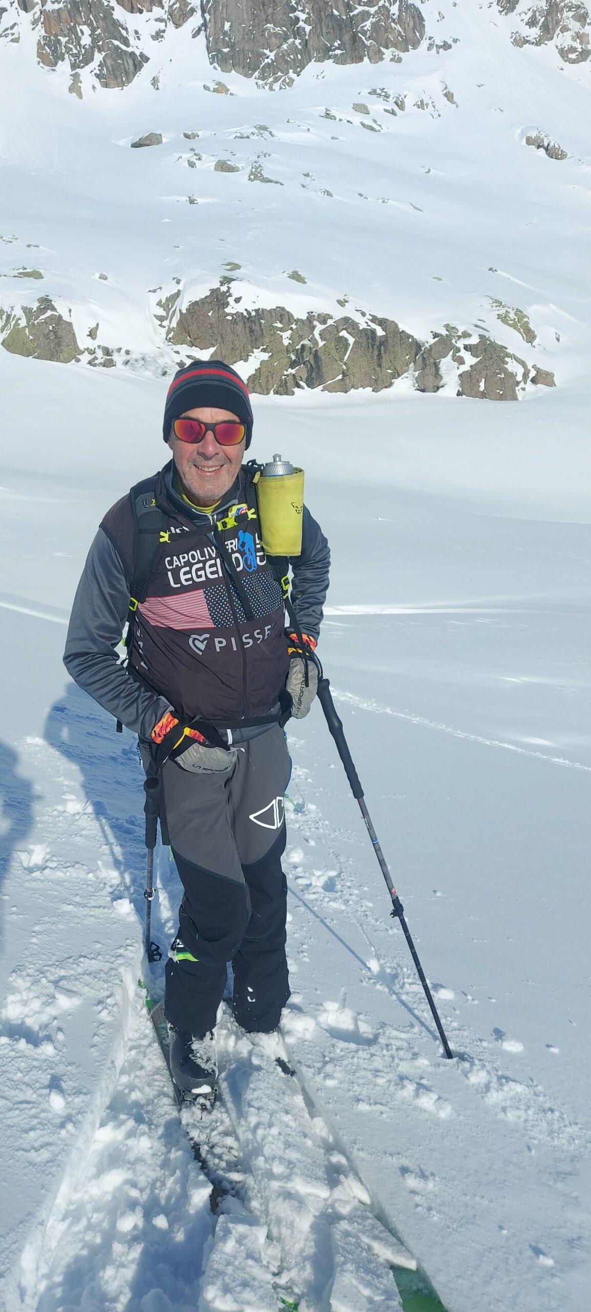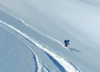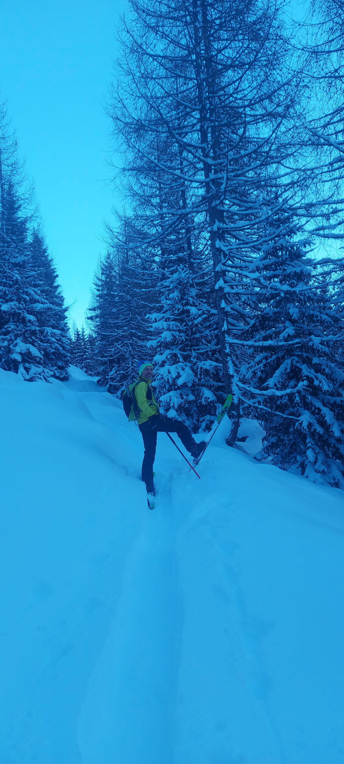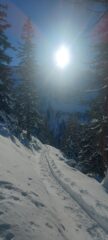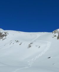 Da lì in Avanti tracciamo fino al colletto, prima su neve fresca ventata poi su bella polvere..