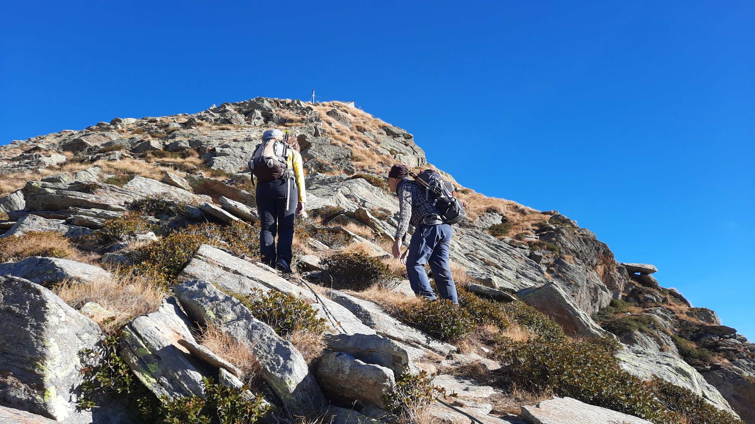 Senza particolari difficoltà, a parte la pendenza del percorso, si arriva in cima a Punta Rama 2437 m con il Bivacco Marco Beltrando.