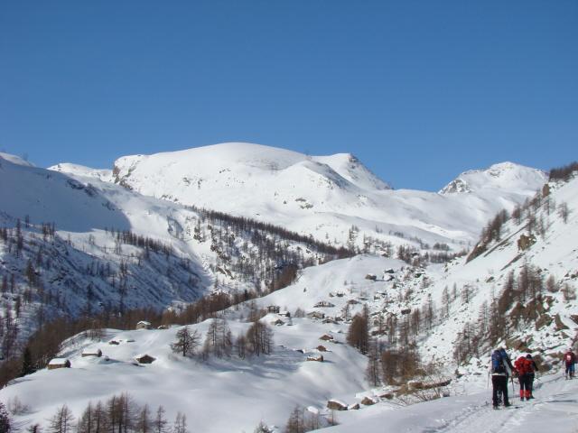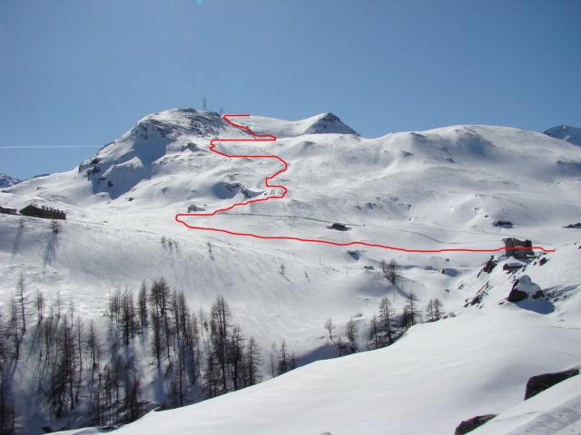 Circa 6km di avvicinamento su poderale, battuta dalla motoslitta del rif Dondena (aperto alla Domenica da inizio marzo). La parte interessante dell’escursione parte dai ruderi di Dondena e sale i 650m del dislivello finale.