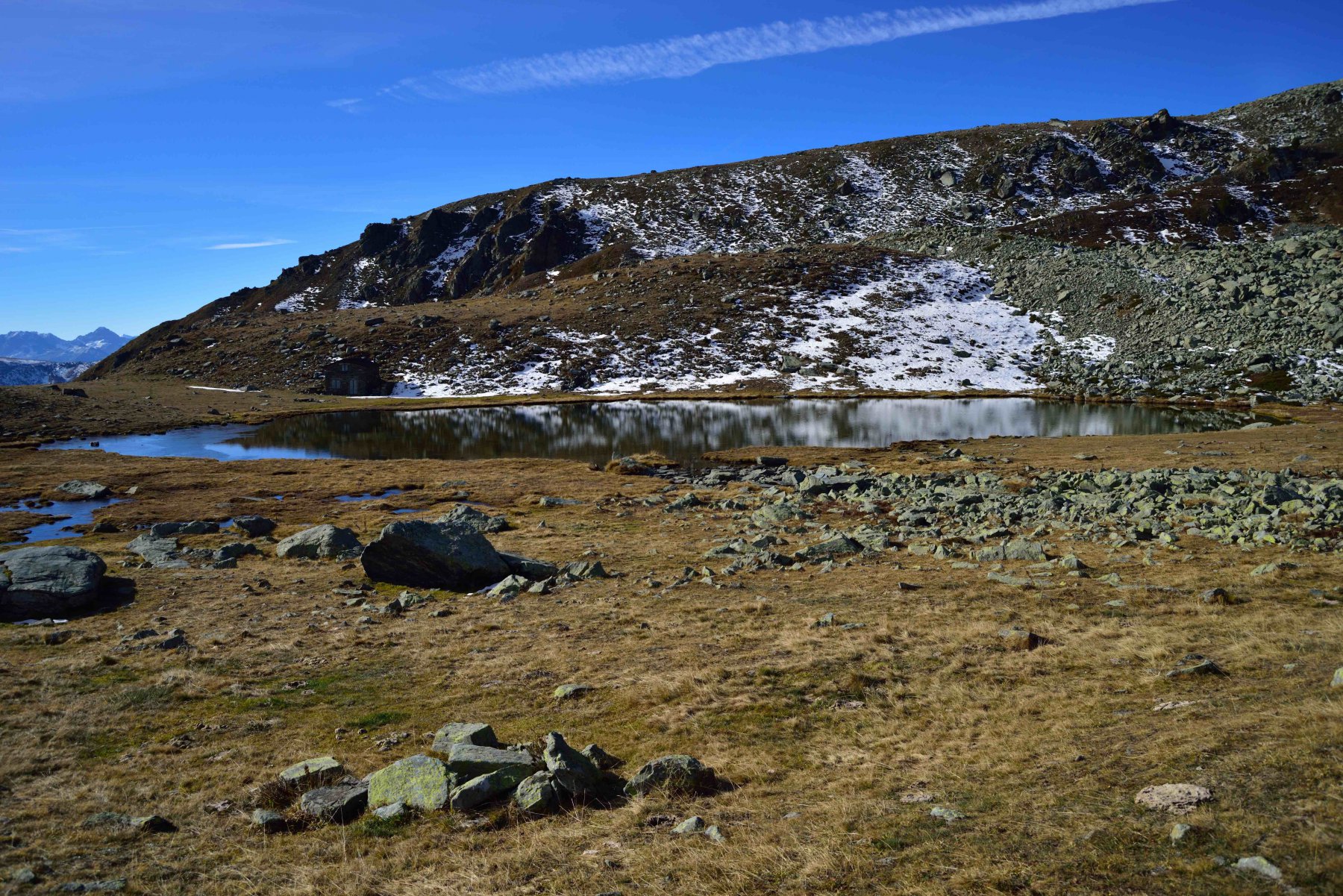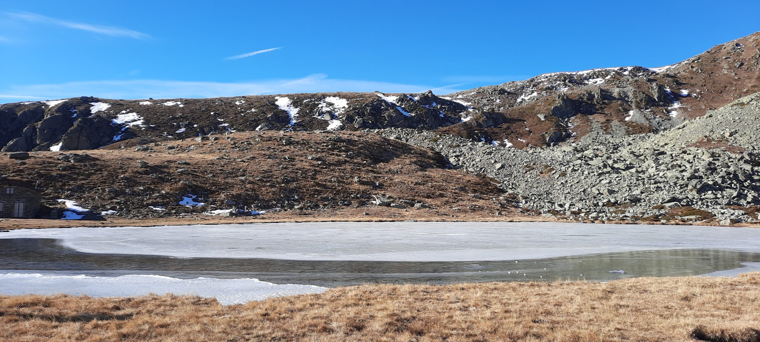 Da Colletto si raggiunge il Pilone Madonna della Neve, dopo il quale si procede sulla strada sterrata fino ad una croce in legno su un costone a q. 1811 m. A sx si stacca un sentiero ben marcato con indicazioni per il Lago di Luca. Si raggiunge in breve una baita presso la quale occorre svoltare a sinistra e risalire l’ampio valloncello laterale.