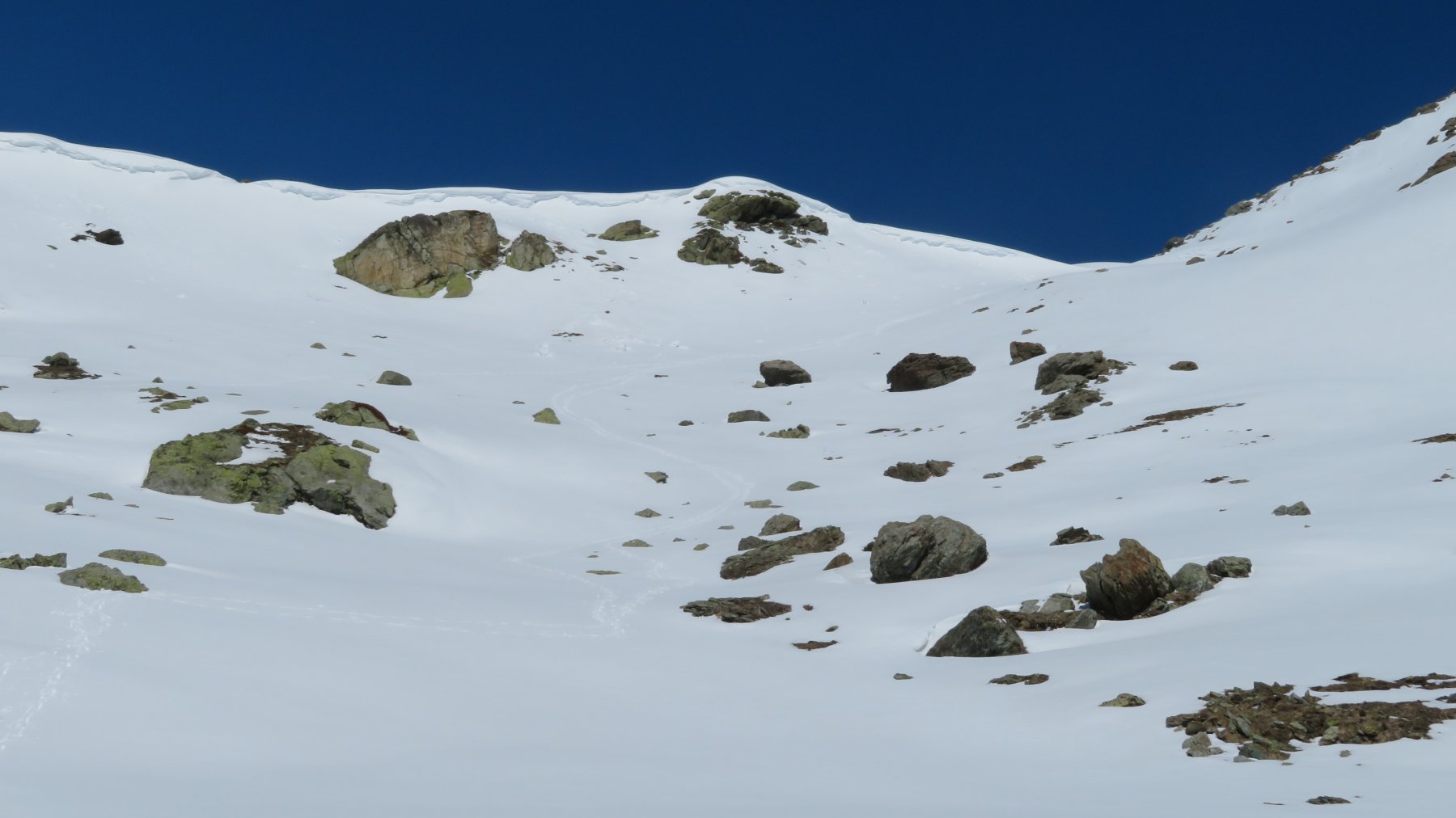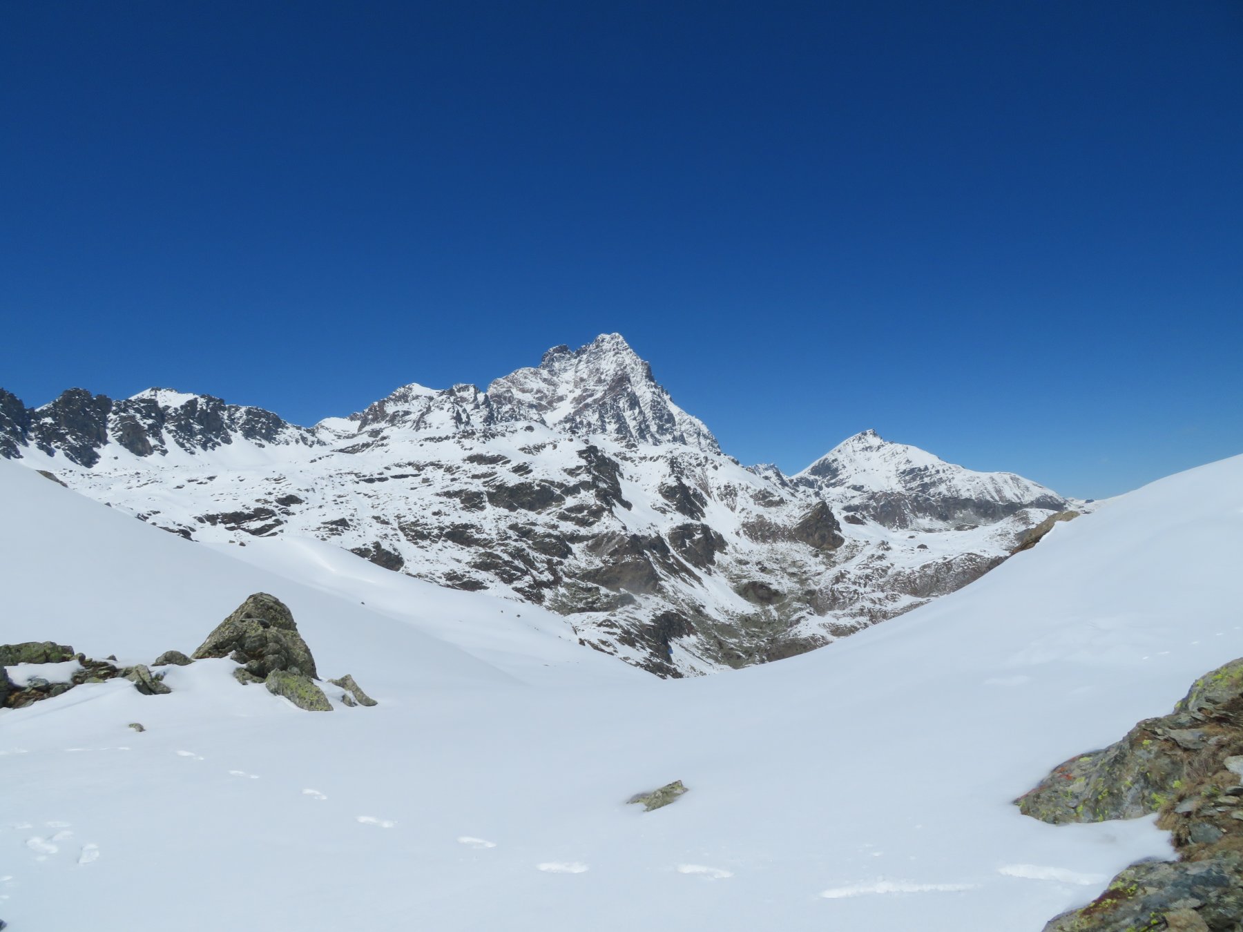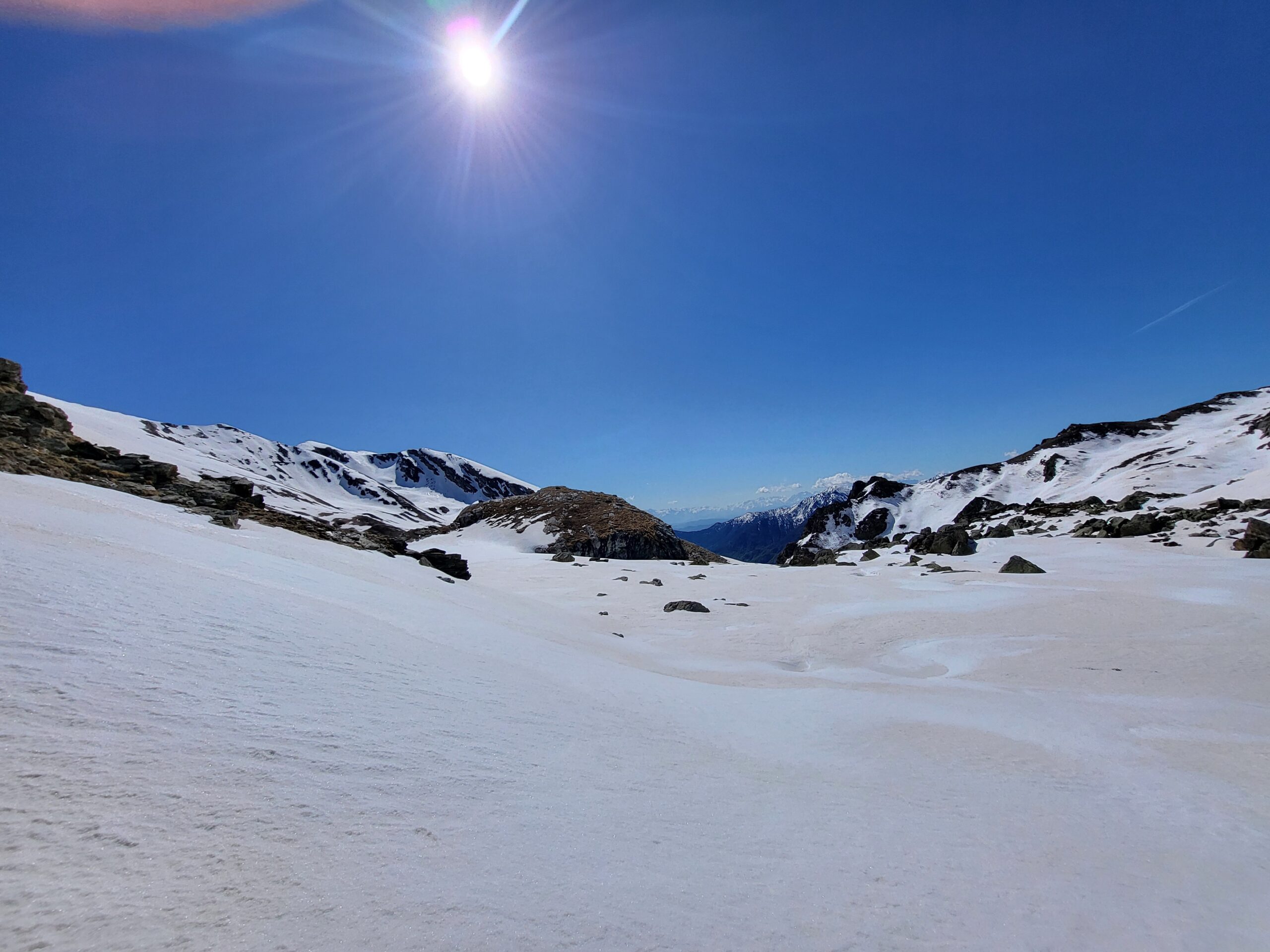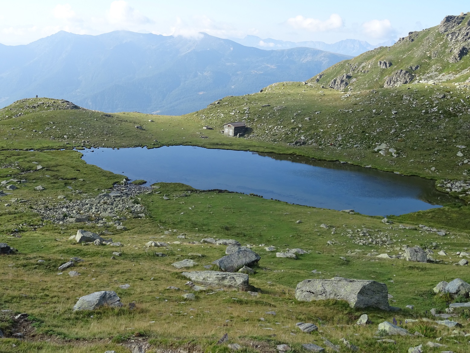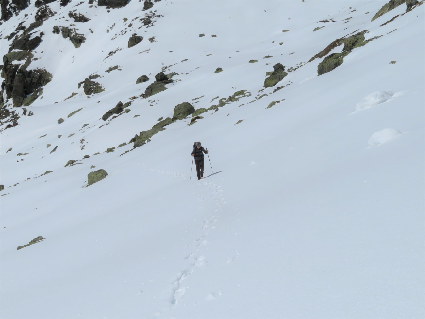 Si raggiunge il pianoro del Lago di Luca e superatolo si sale seguendo l’ottima traccia in direzione nord-est fino ad un colletto, da cui appare di fronte la Punta Rasciasssa.