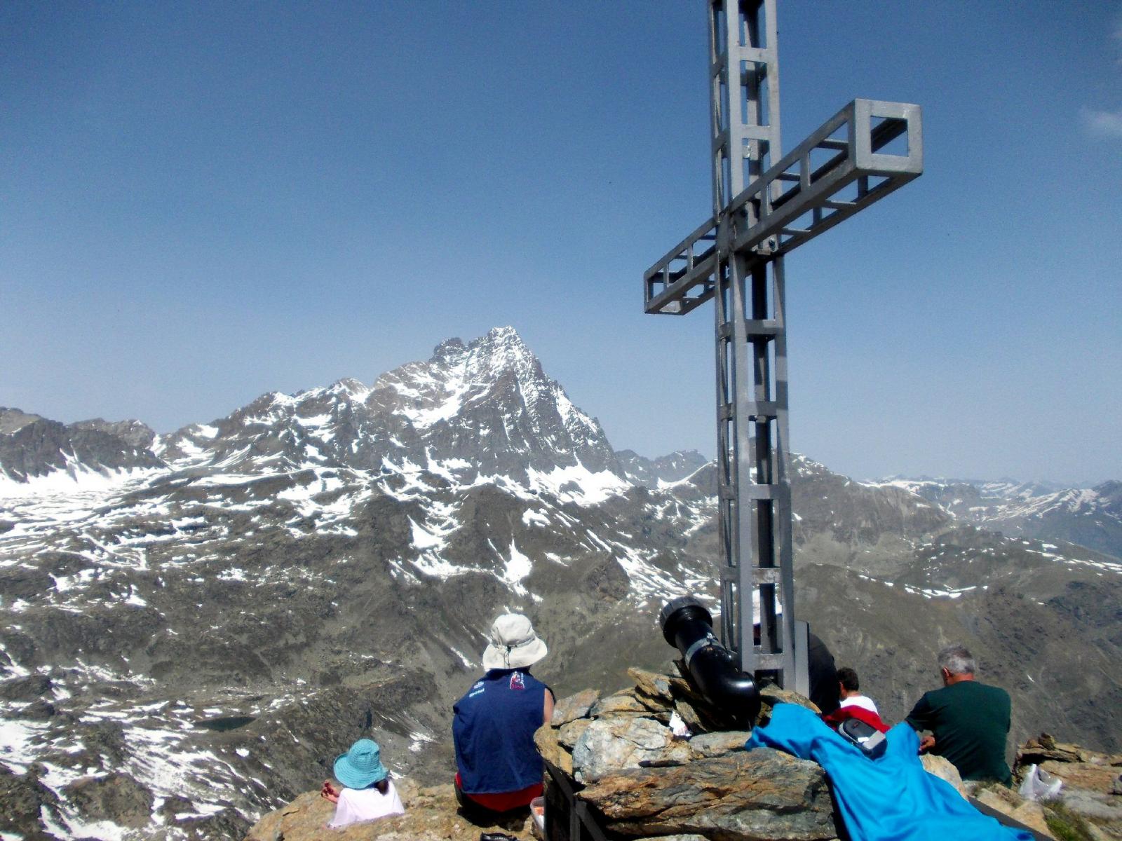 Siamo saliti dal colle ,senza problemi fino alla cima,tenendo piu’ o meno la cresta ed evitando gli ultimi nevai residui.Ritorno passando per il lago di Luca