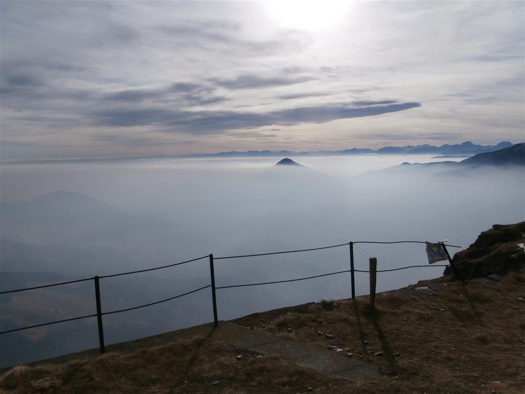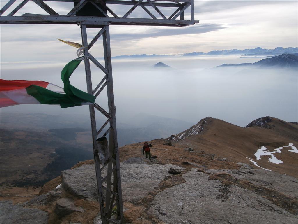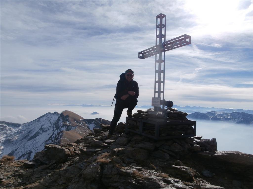 Lunga ma bella la cresta, mai difficile, dalla Crosa alla Rasciassa e …tutto senza neve. Da Foresto primo tratto nel bosco fino al colletto, niente vento ma cielo velato, oggi poco sole; arriviamo velocemente alla bella cappella Alpina poi per dorsale alla sempre bella cima di Crosa: qui troviamo una robusta ed insistente arietta fresca che ci accompagnerà per il resto della gita, con le nebbie in basso ed il Monviso sempre davanti a noi. Discesa al colle di Luca e rientro all’auto, oggi con il ritorno “operativo” di Teo !
