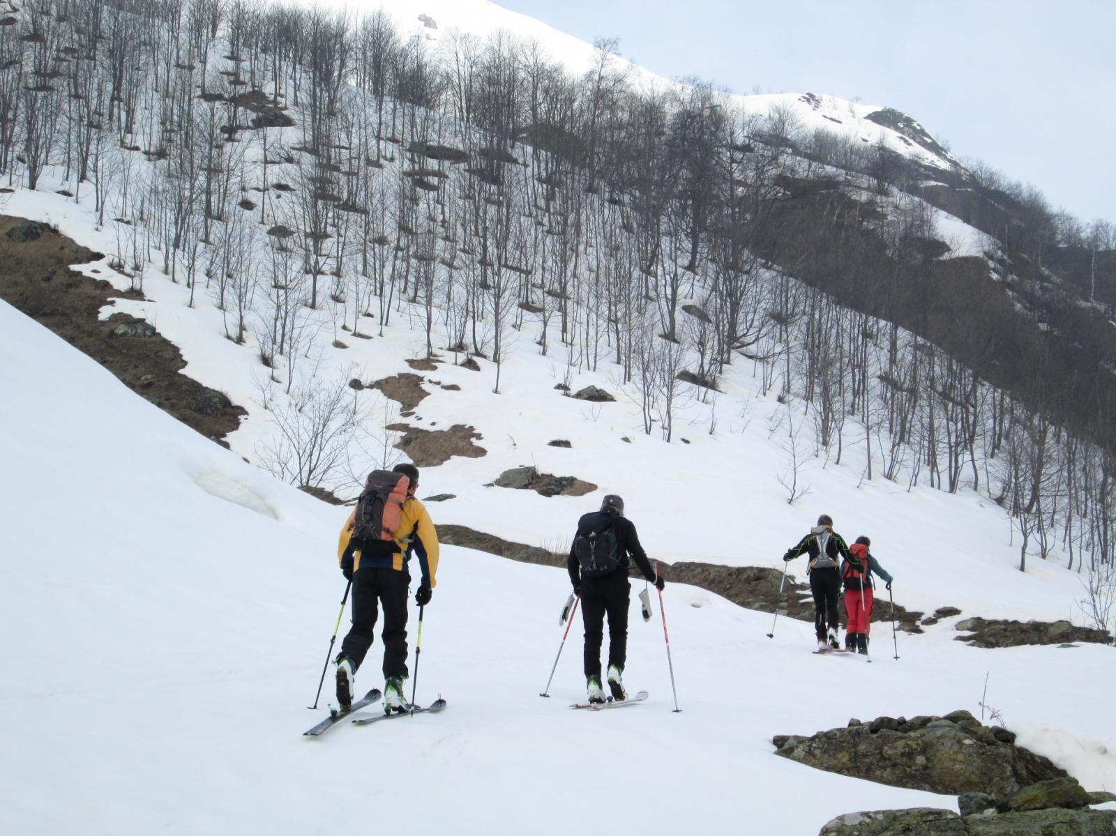ho indicato tre stelle a questa gita ma occorre dare spiegazioni più precise e cioè: nella parte alta c’era crosta non portante poco sciabile, nella parte centrale abbiamo trovato un tratto da 5 stelle (meglio che in pista) mentre in basso era molle e poco sciabile. Nonostante la nebbia incontrata in salita siamo potuti scendere con visibilità discreta. Oggi ero in compagnia di altri 10 evergreen.