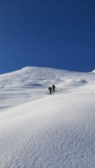 Da bravi scialpinisti misantropi, per rifuggire le carovane di gente che affollavano Cervetto e Crosa ci siamo indirizzati all’ultimo momento verso la Rasciassa. La scelta ha pagato: solitudine totale, traccia battuta ma ampi spazi vergini a disposizione!! Tolti i primi metro di discesa con rocce affioranti, il resto è super!! Scendendo poi si appesantisce ma senza mai diventare polenta, non so per quanto ancora, viste le temperature ..