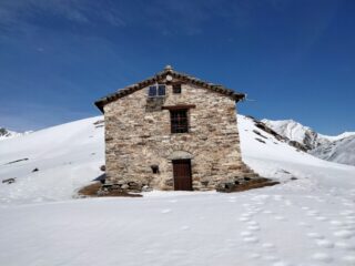 Giornata splendida con sole e temperatura gradevole, visto con il binocolo un camoscio vicino al colle verso.