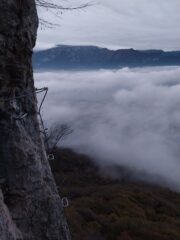 Mattinata uggiosa, tra nuvole basse e nuvole alte. Fatto tutte le scorciatoie possibili e immaginabili all’andata, ritorno passando da San Tomaso e ricollegandomi alla strada da sotto alla chiesa. In ferrata tutto in ordine come sempre. Fatto fino al Corno Rat.