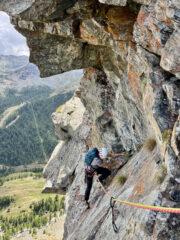 Bella via in ottimo ambiente. Chiodatura ravvicinata nei passaggi più delicati.
