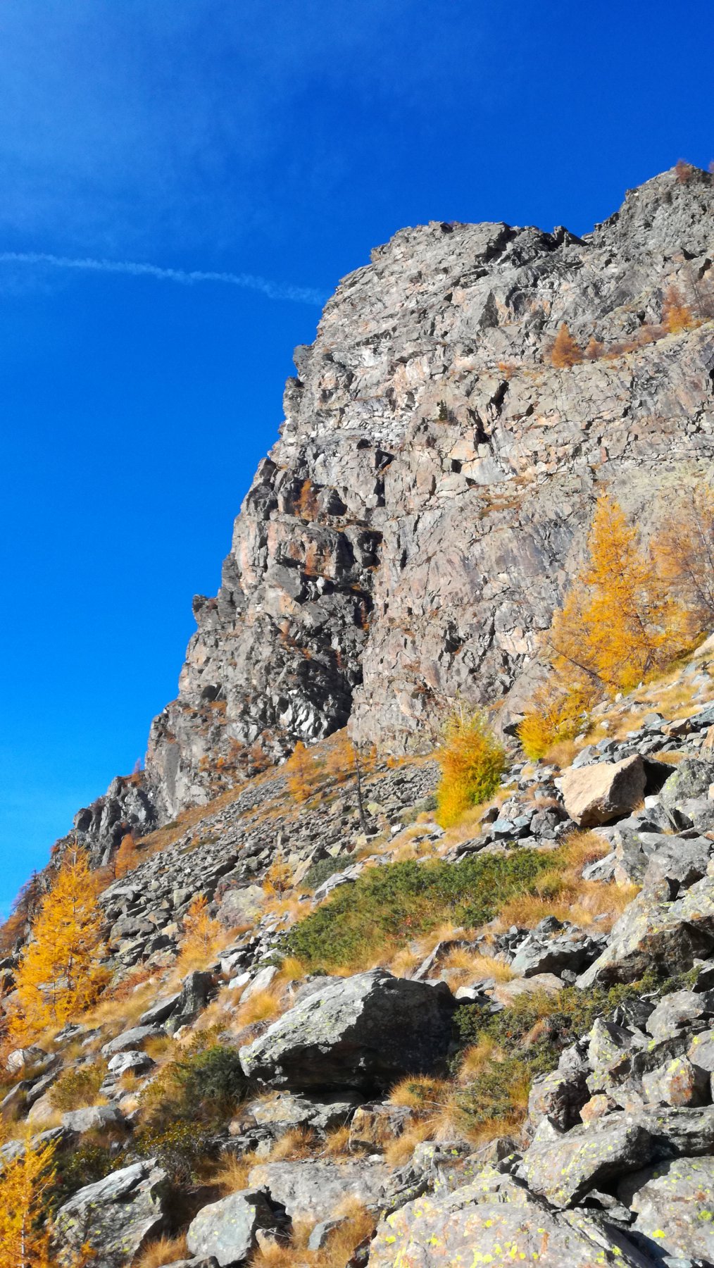 Discesa a piedi per pietraie fino al sentiero che riporta sulla strada per Dondena (1h circa).